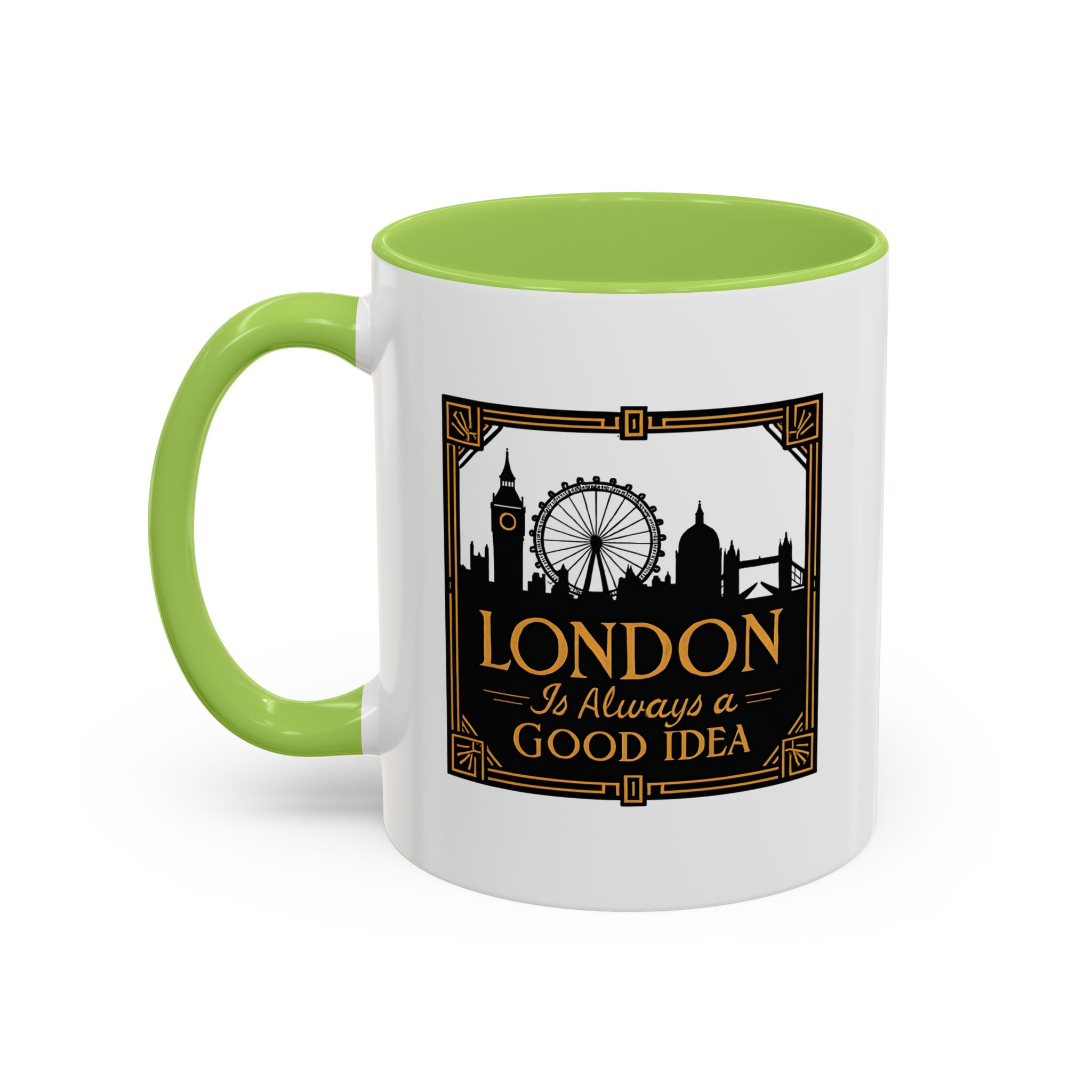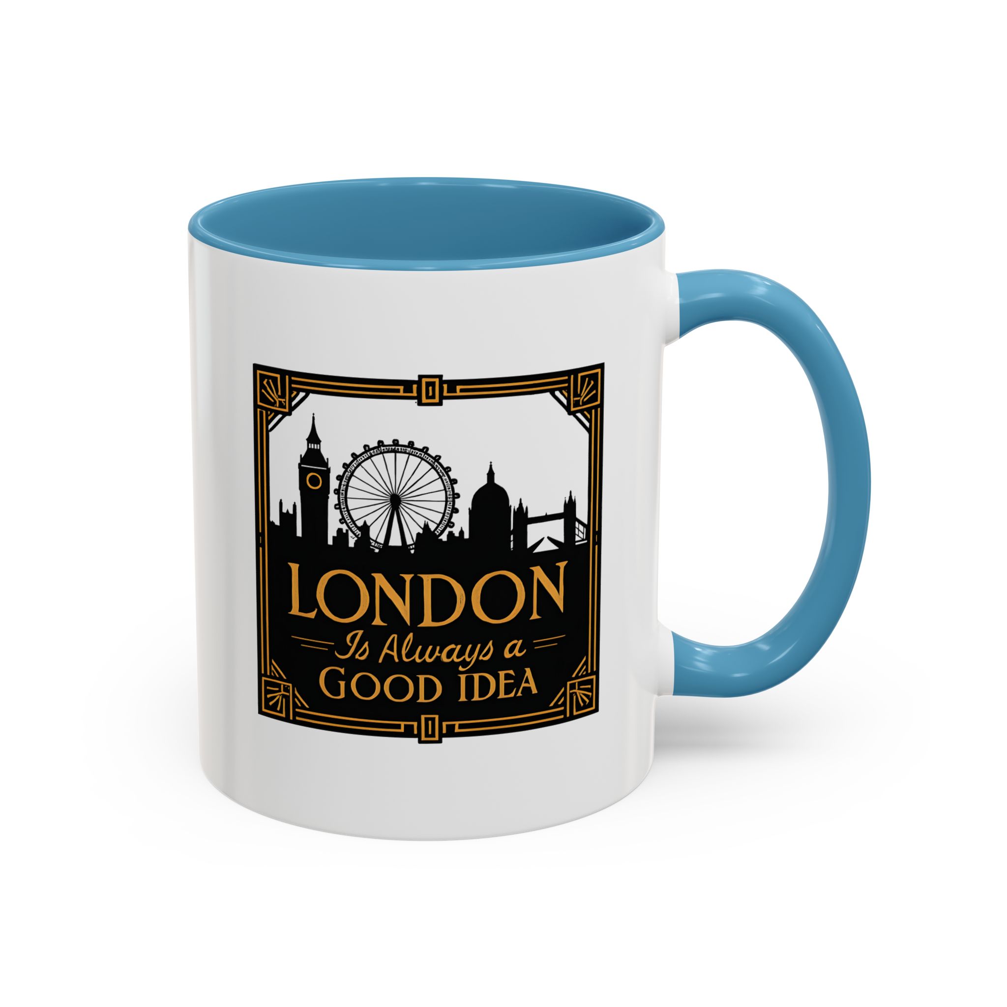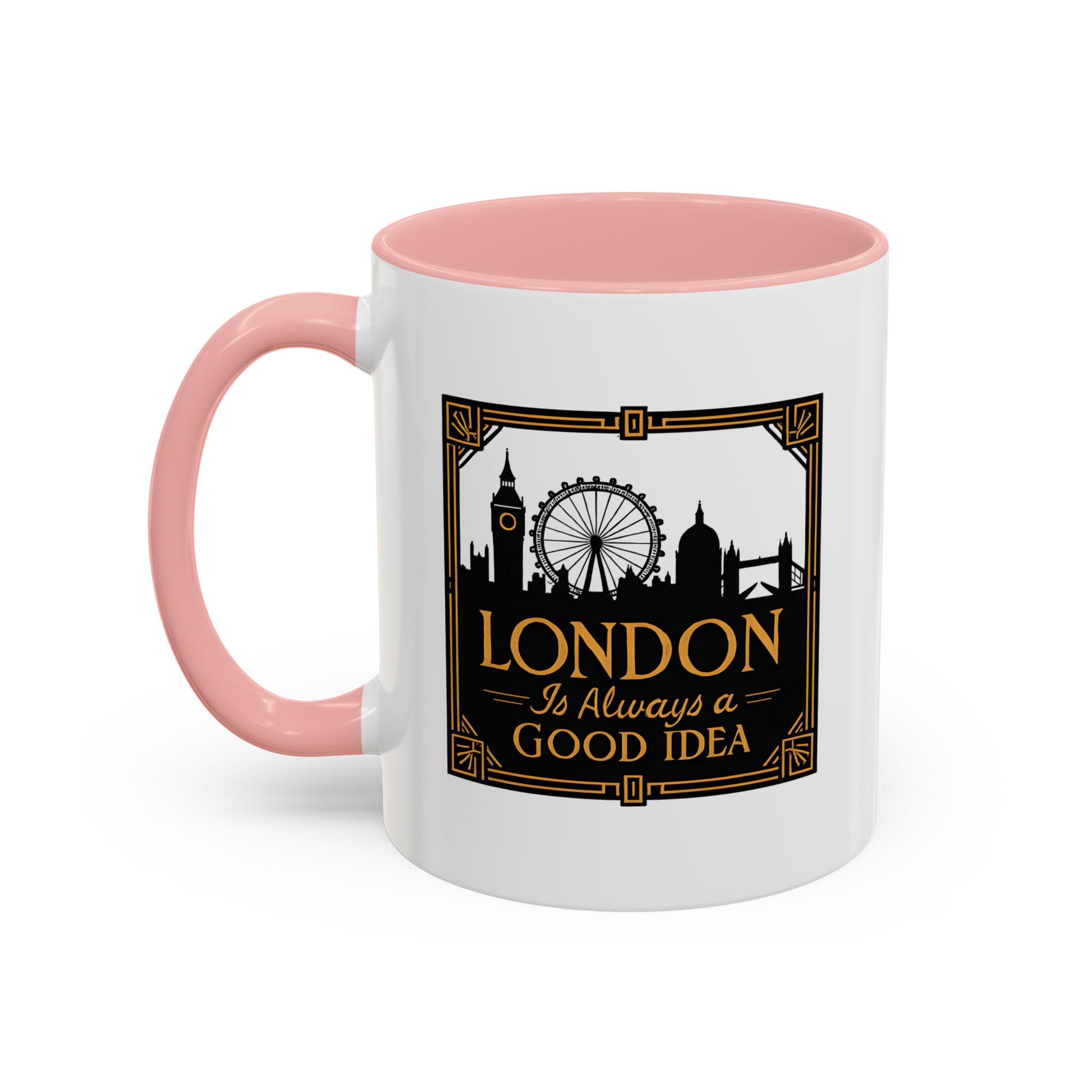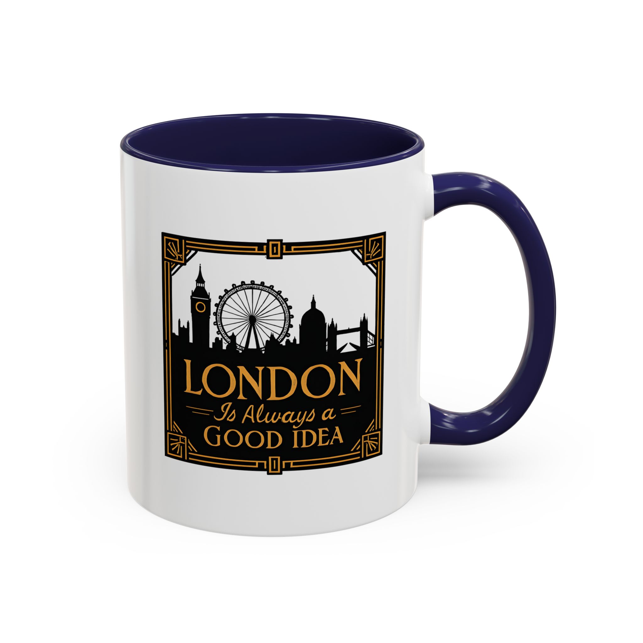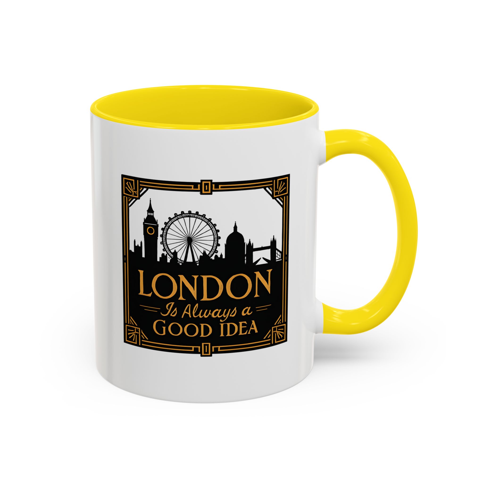 This art deco London skyline mug features the quote “London Is Always a Good Idea” with elegant landmark silhouettes. A refined gift for city lovers and travellers.