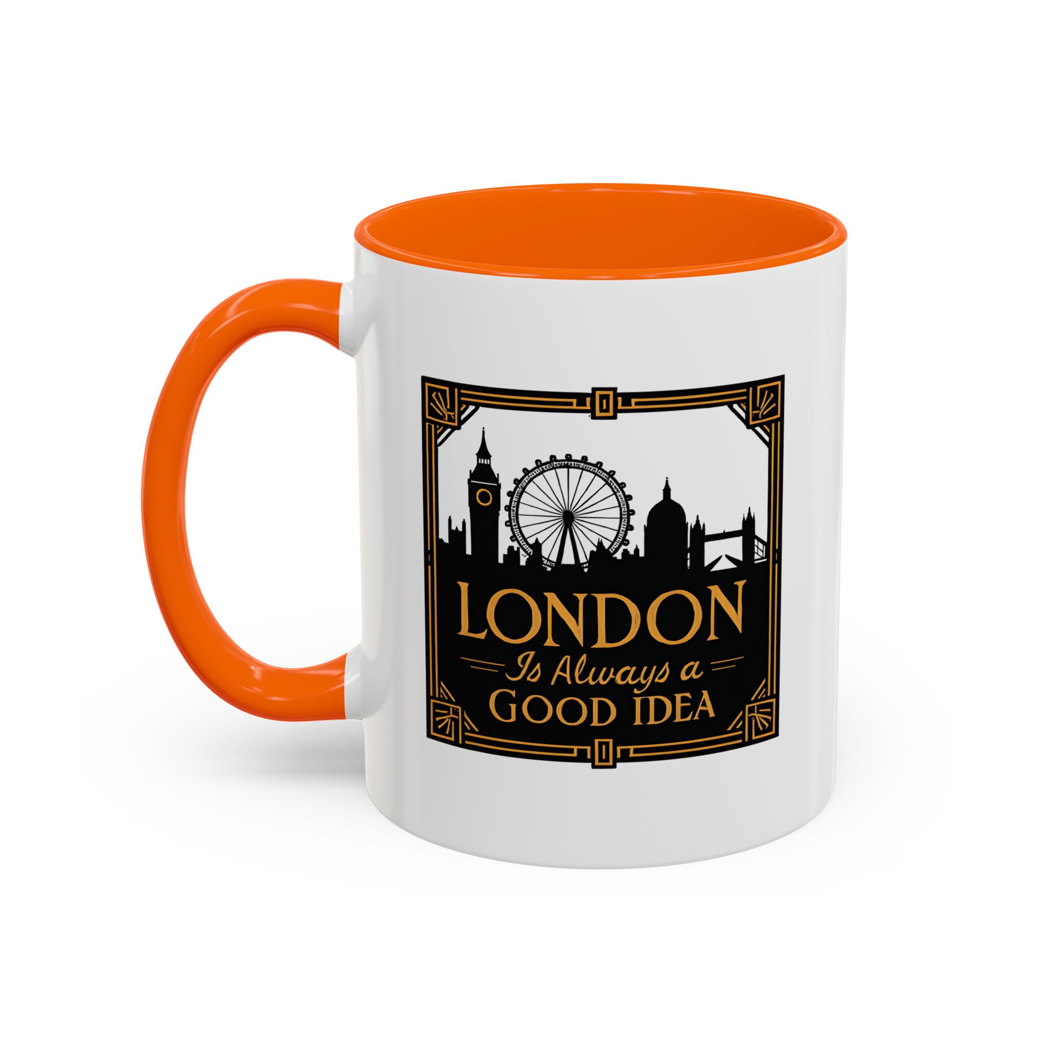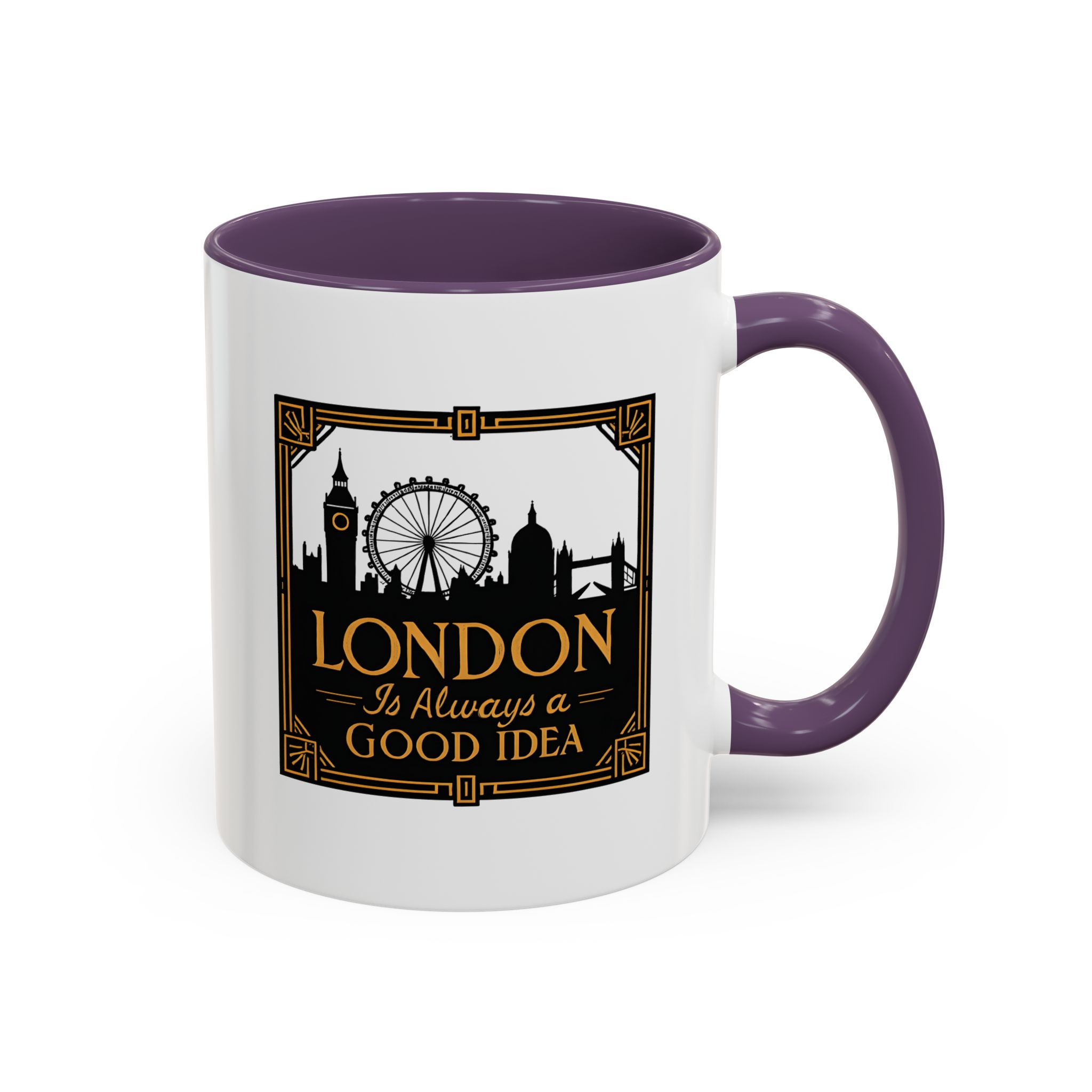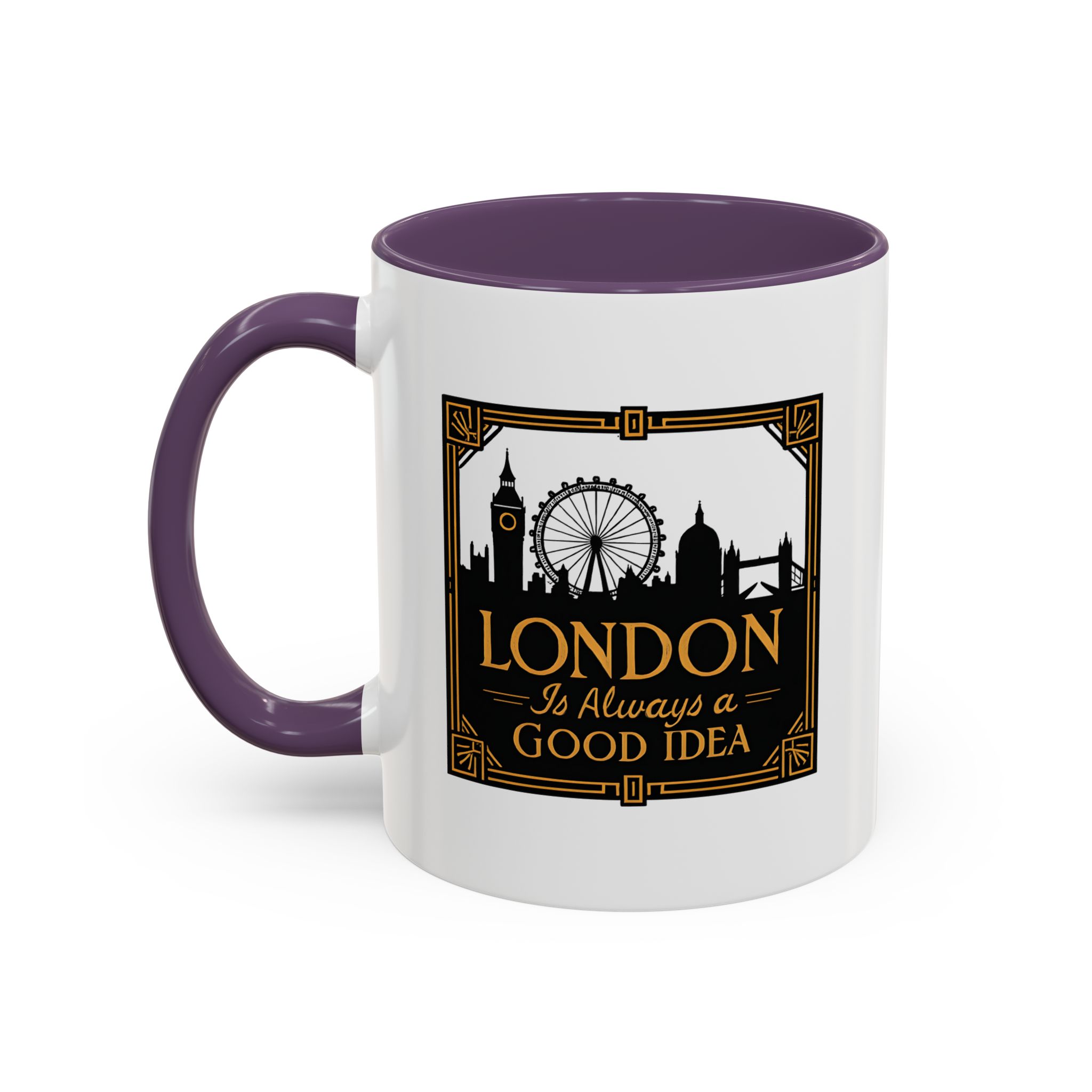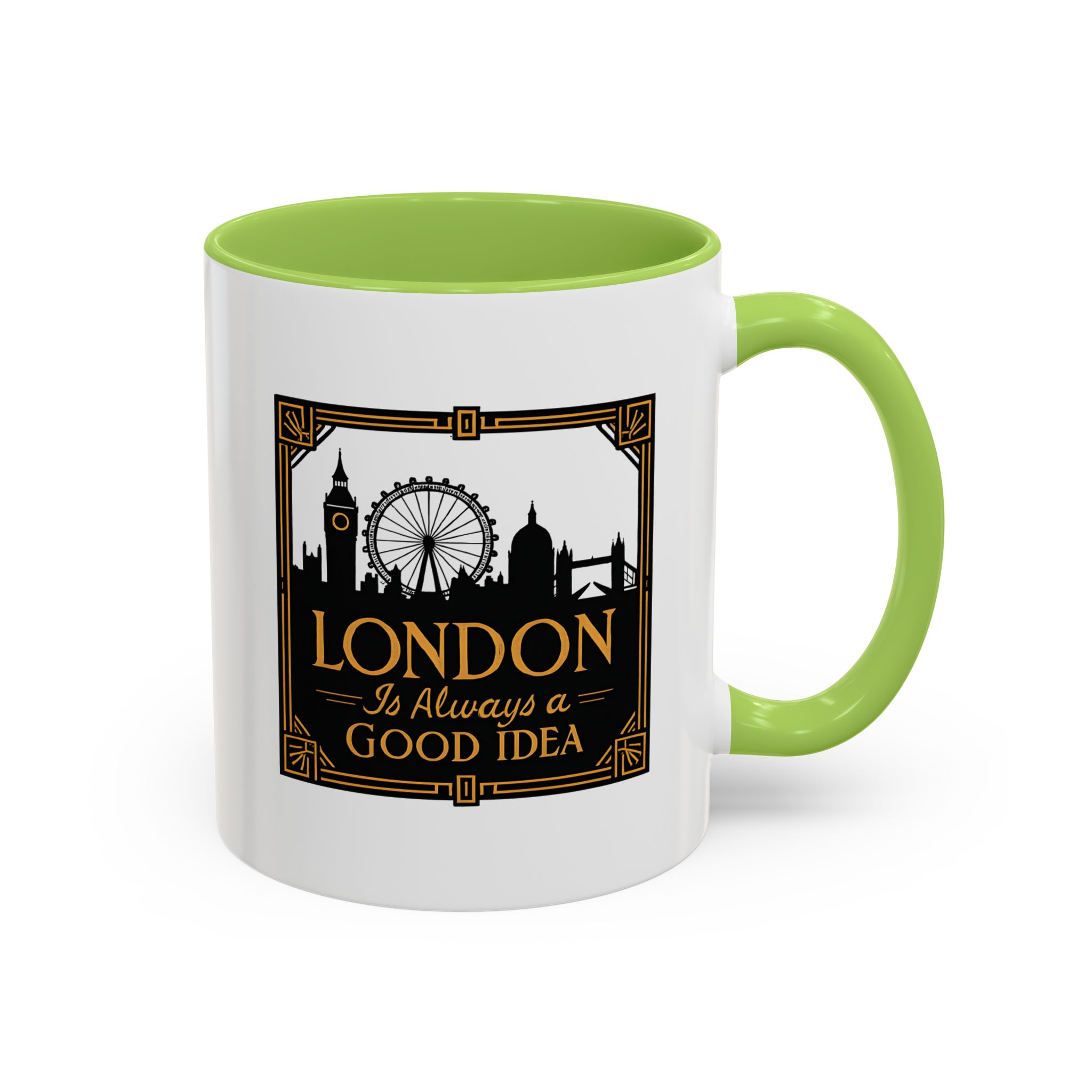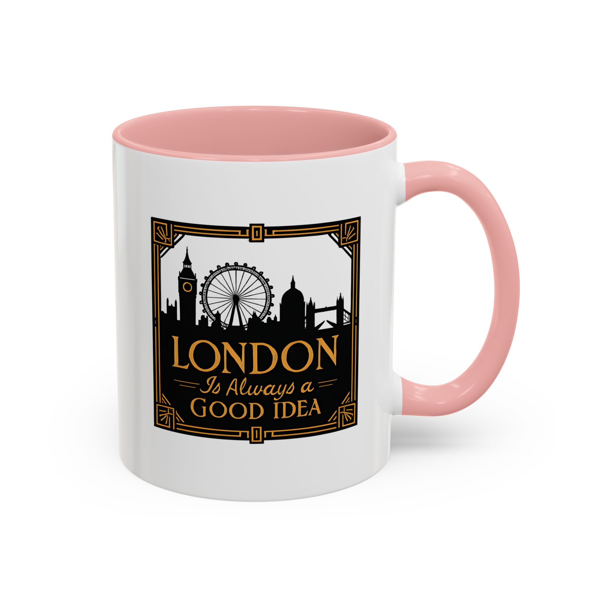 This art deco London skyline mug features the quote “London Is Always a Good Idea” with elegant landmark silhouettes. A refined gift for city lovers and travellers.