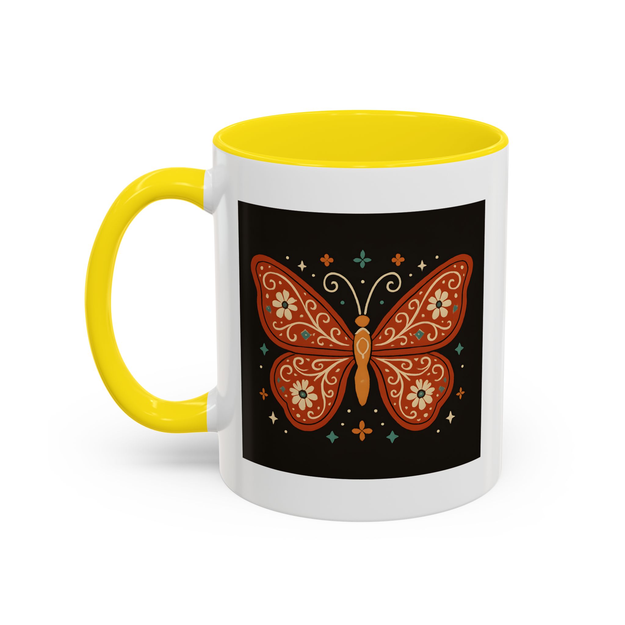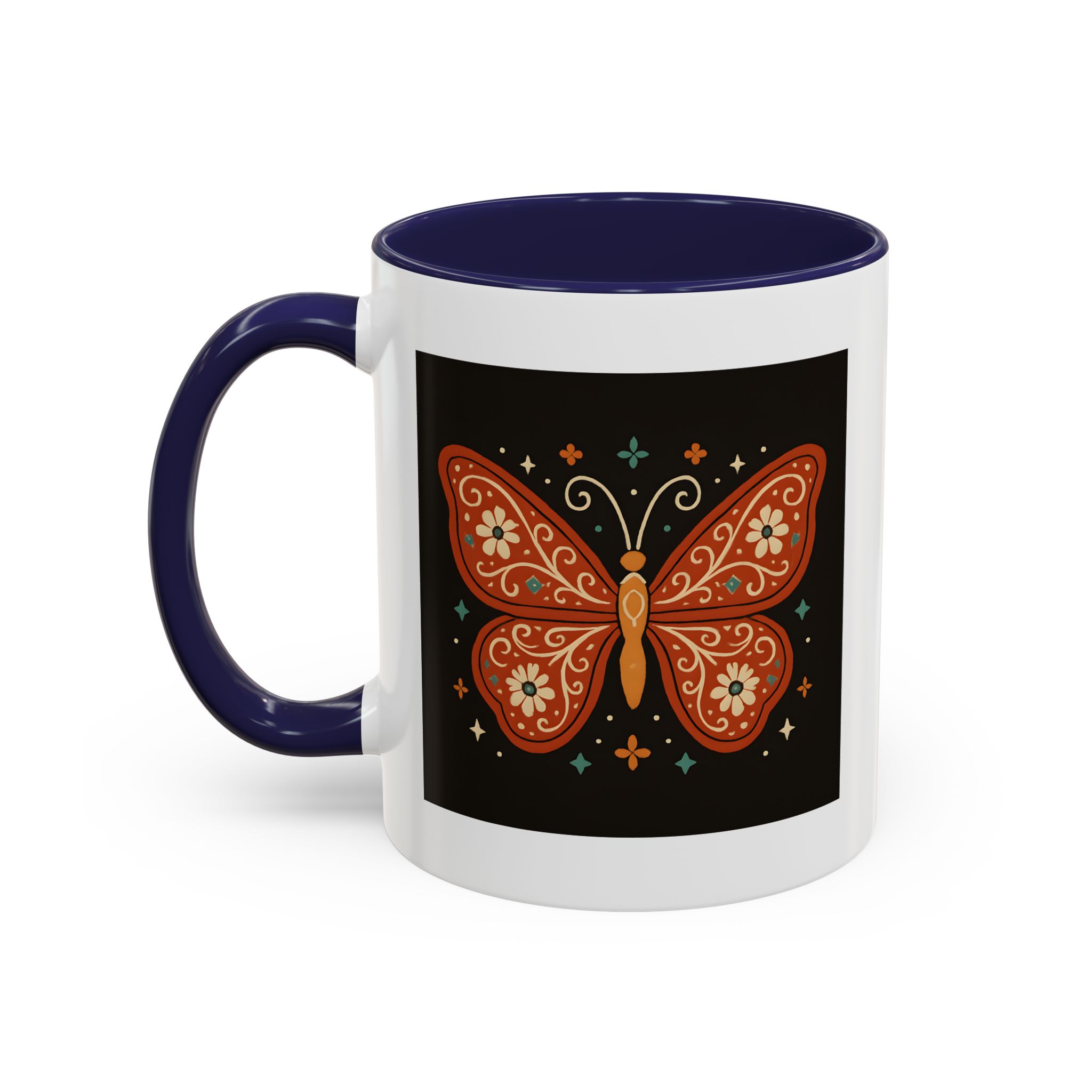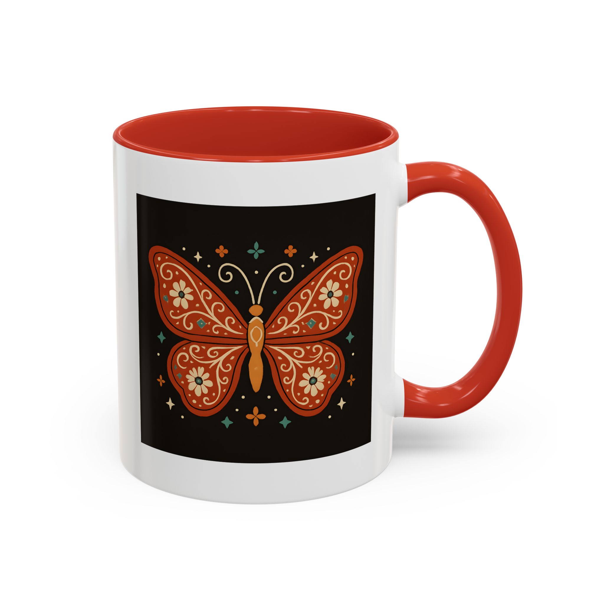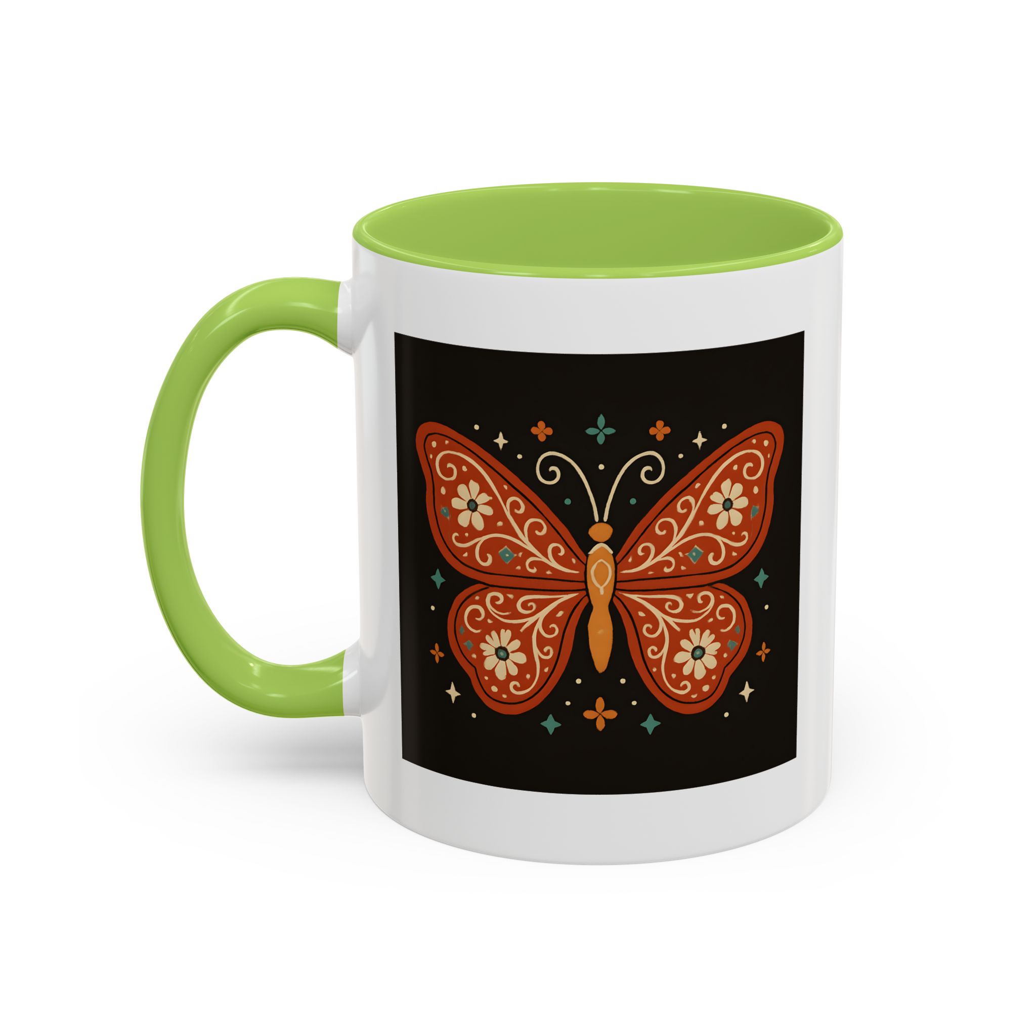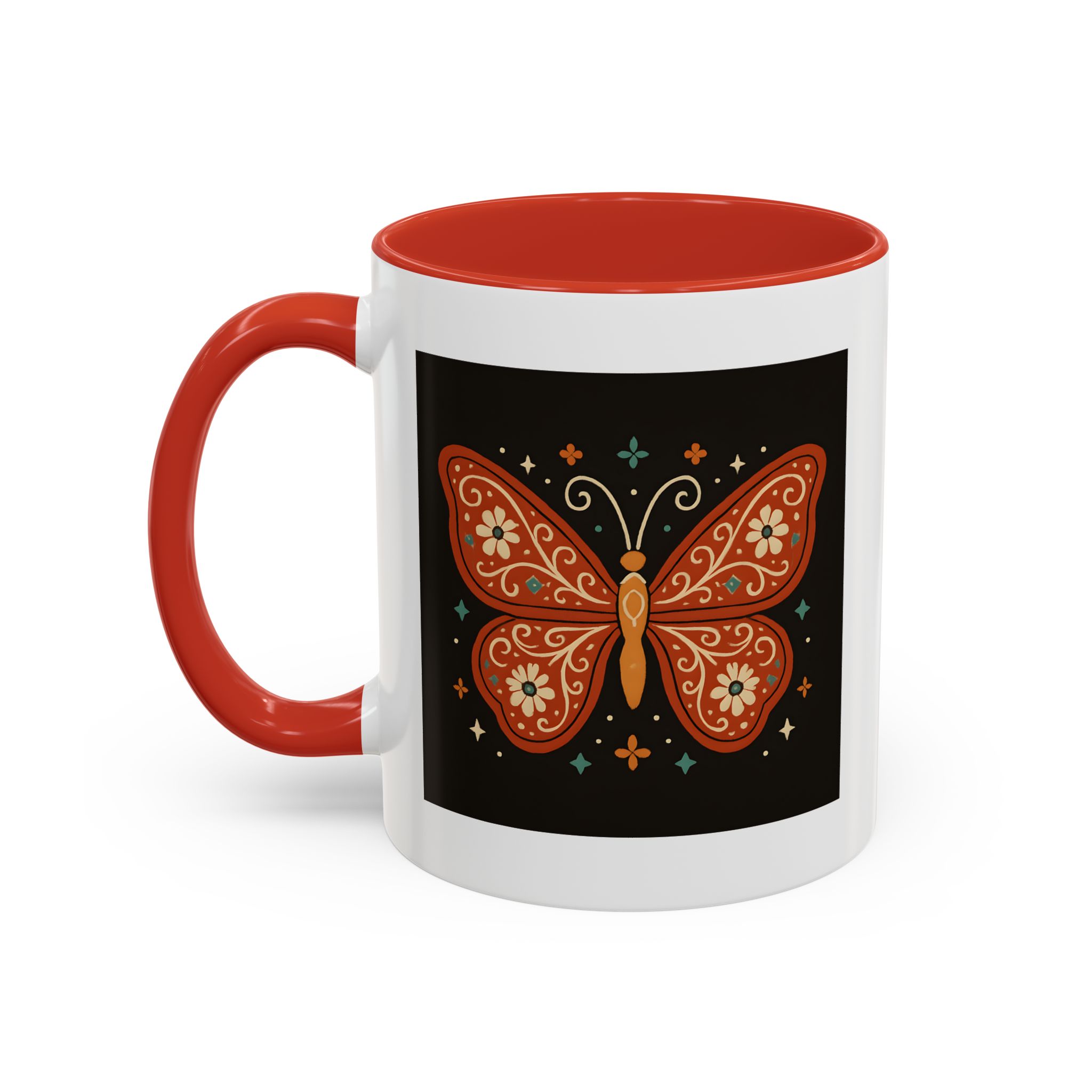 Bring a little magic to your morning with this stunning Boho Butterfly Mug UK. Featuring a vibrant butterfly design in rich earthy tones, accented with folk art-style florals and whimsical stars, it’s the perfect mug for those who love colour, nature, and artistic expression.