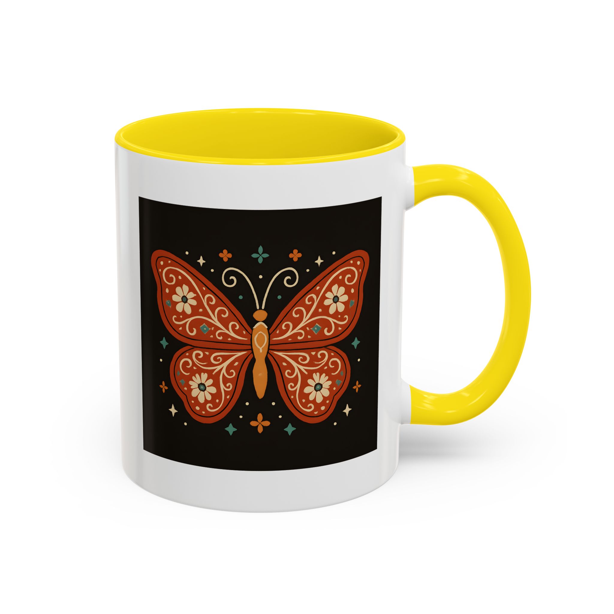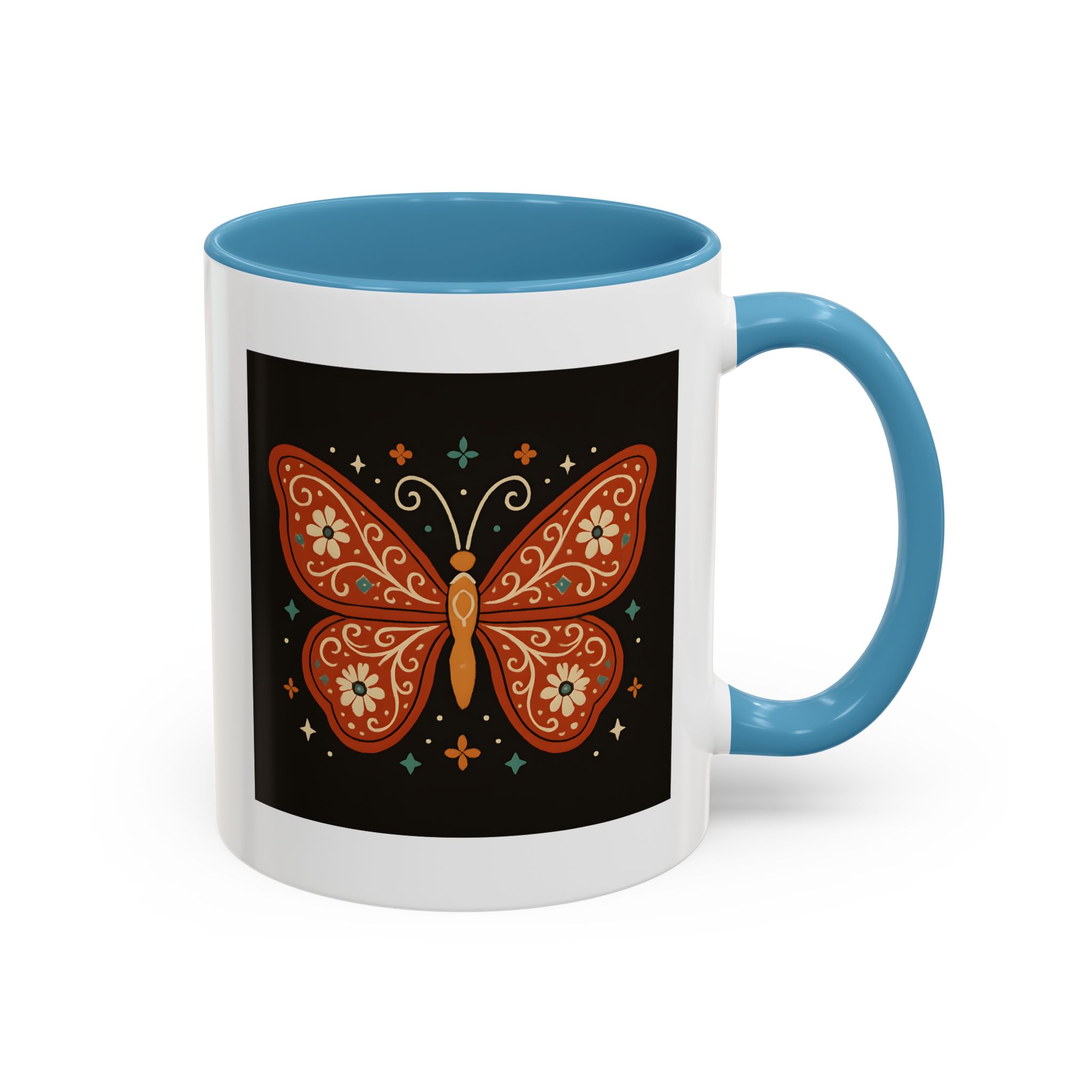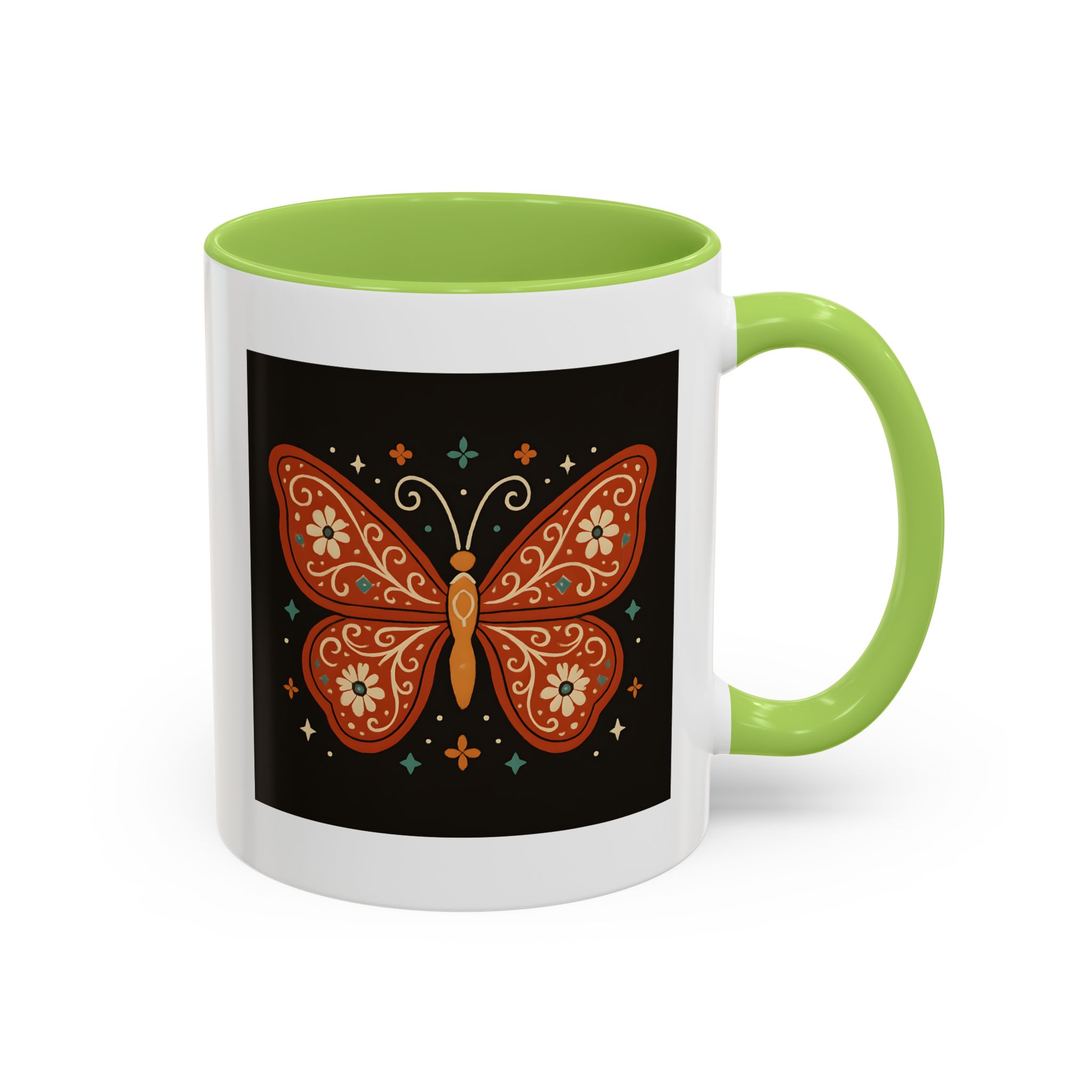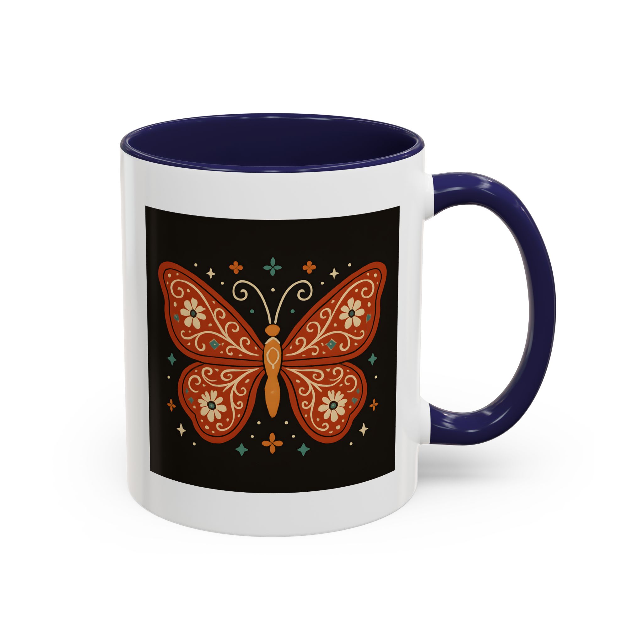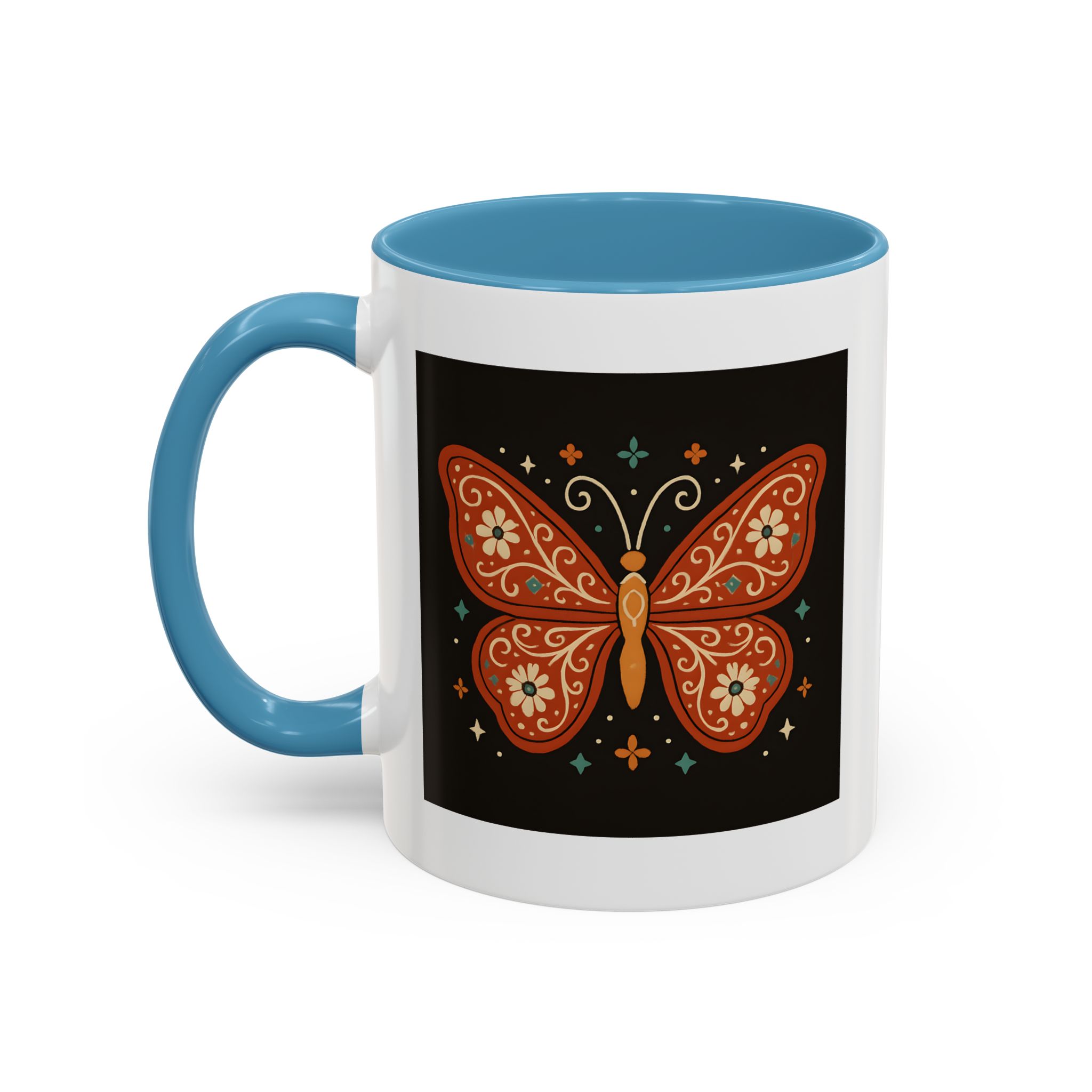 Bring a little magic to your morning with this stunning Boho Butterfly Mug UK. Featuring a vibrant butterfly design in rich earthy tones, accented with folk art-style florals and whimsical stars, it’s the perfect mug for those who love colour, nature, and artistic expression.