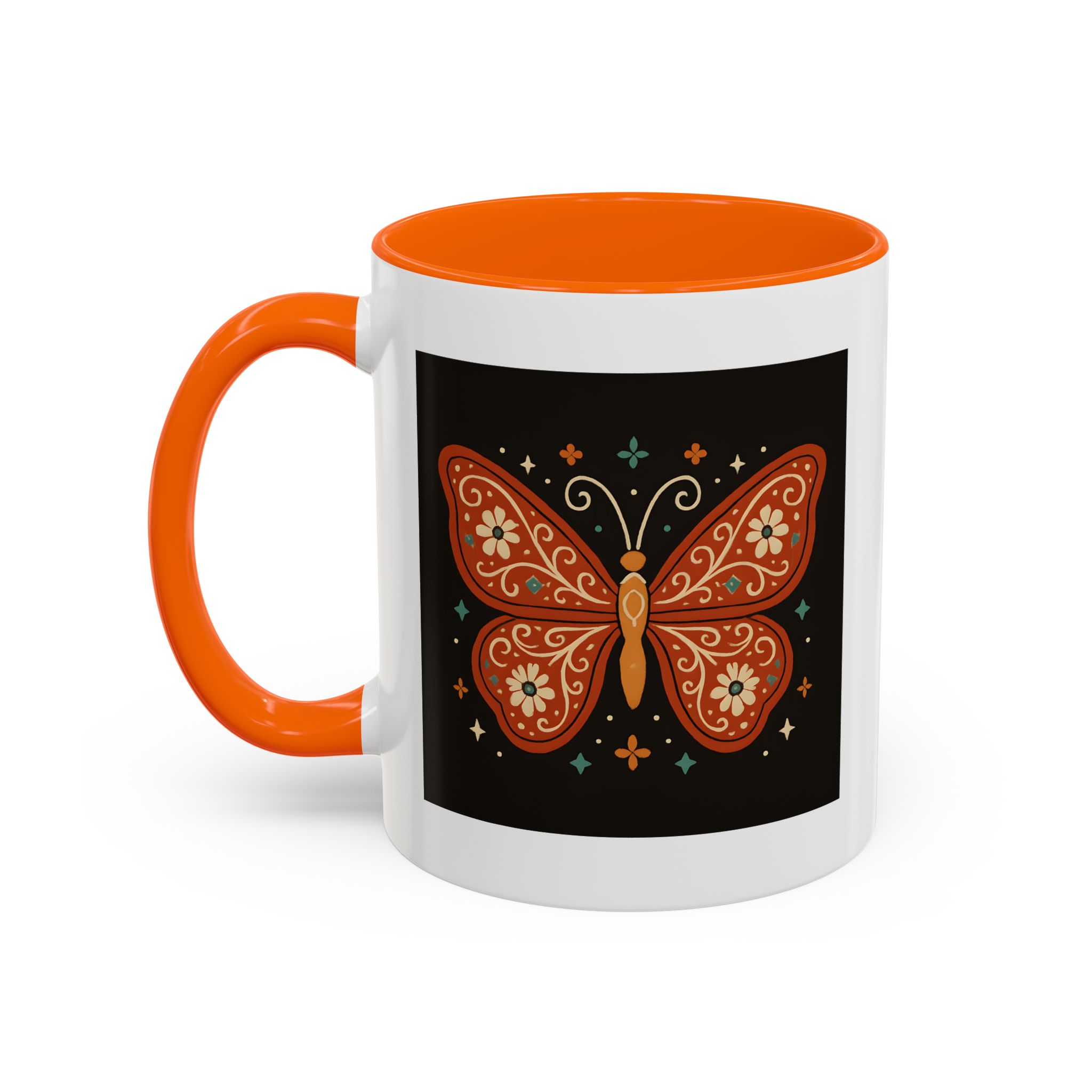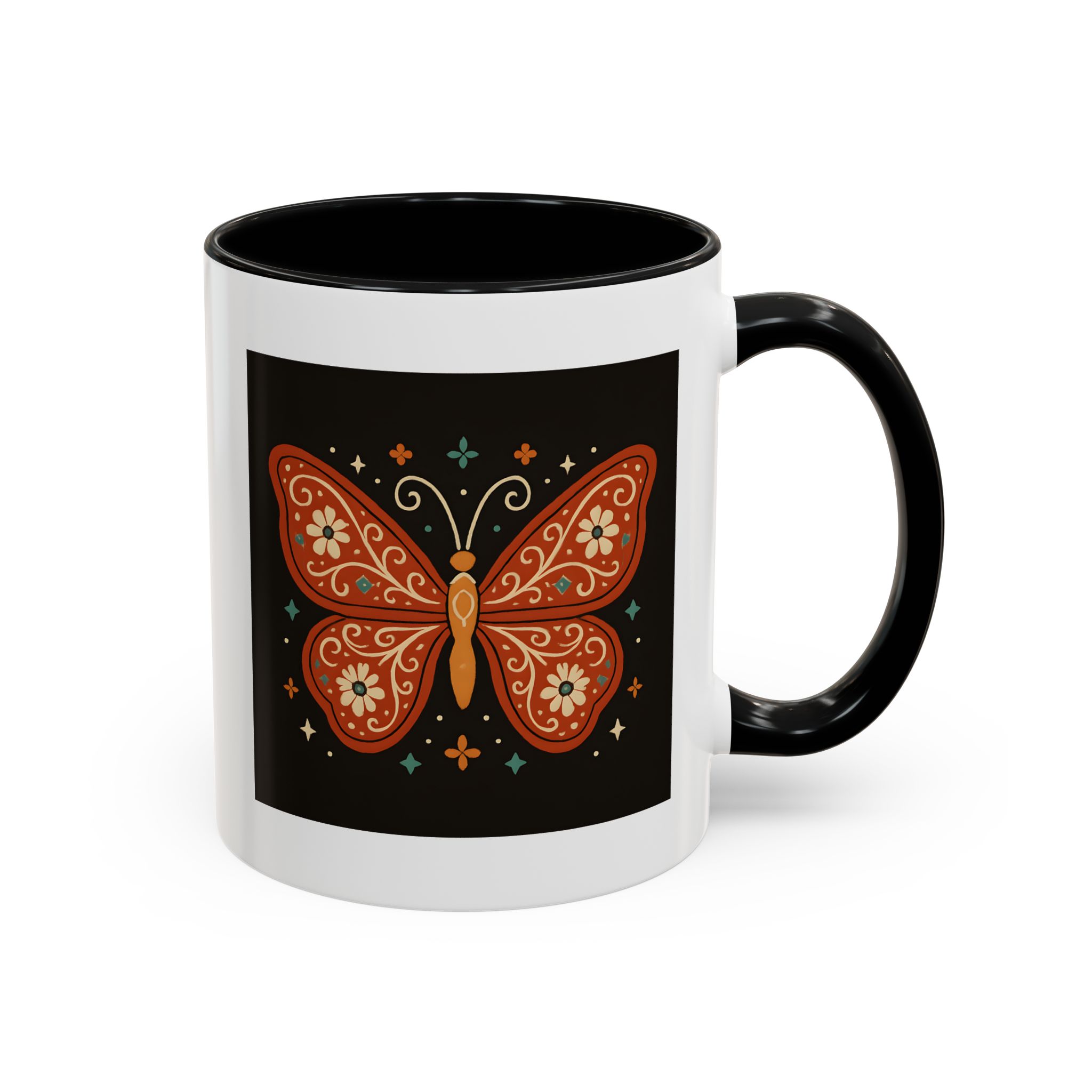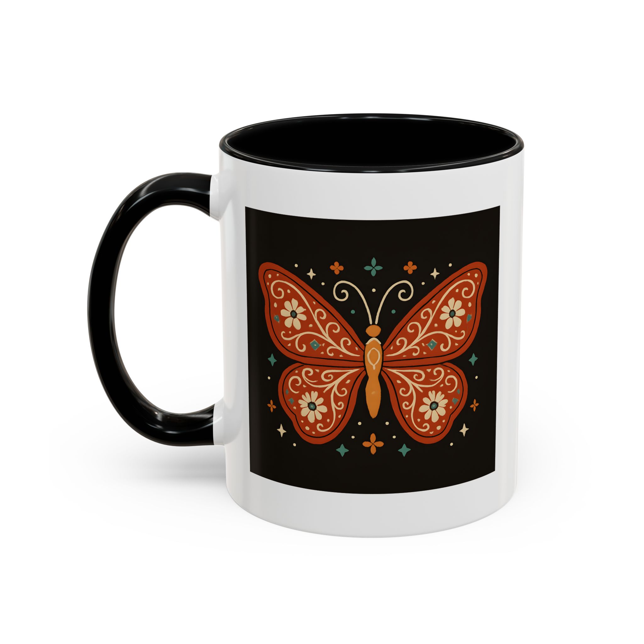 The bold contrast of the black background with burnt orange and floral details makes this butterfly mug a striking piece for your kitchen. It’s a small reminder to stay vibrant, free-spirited, and beautifully unique – just like a butterfly.