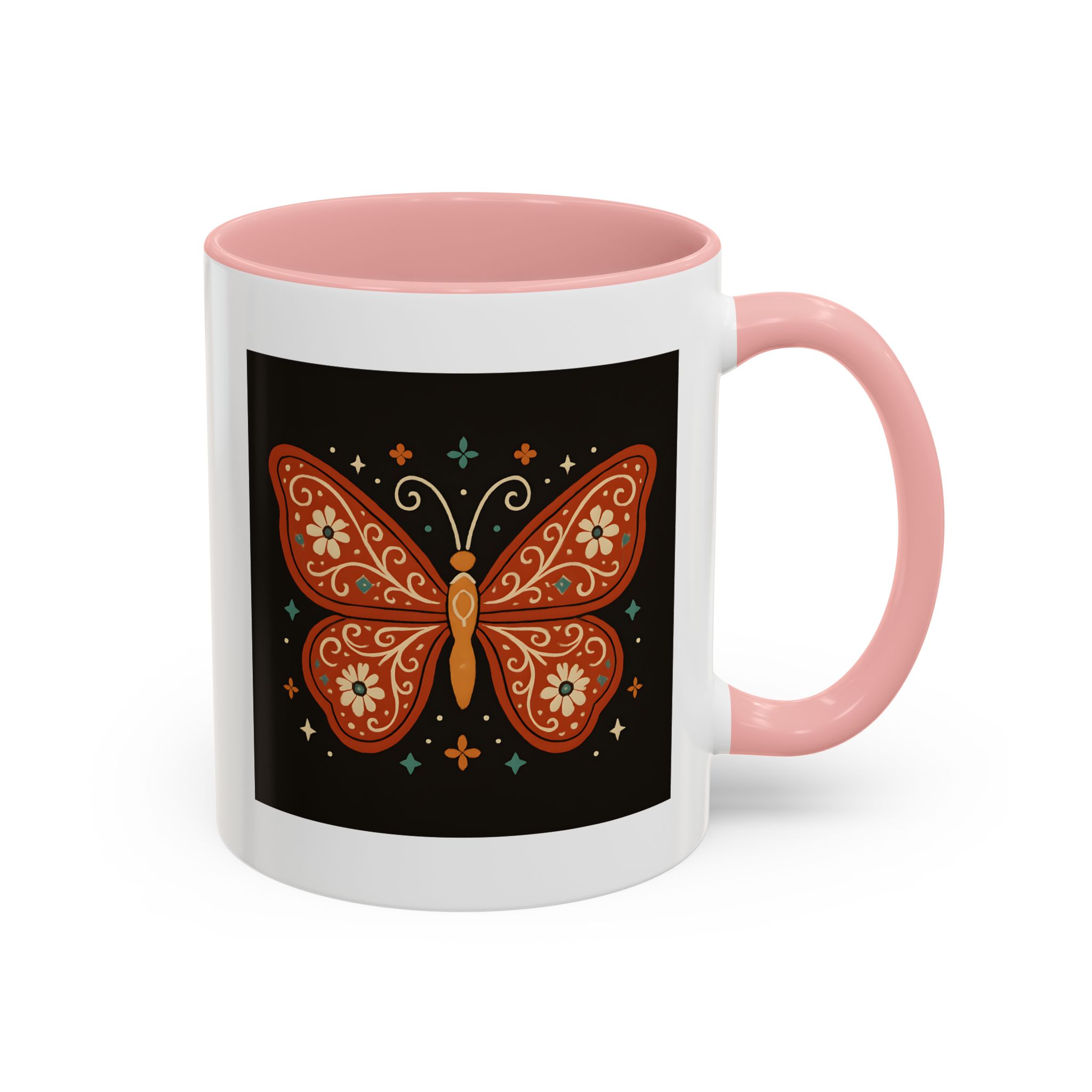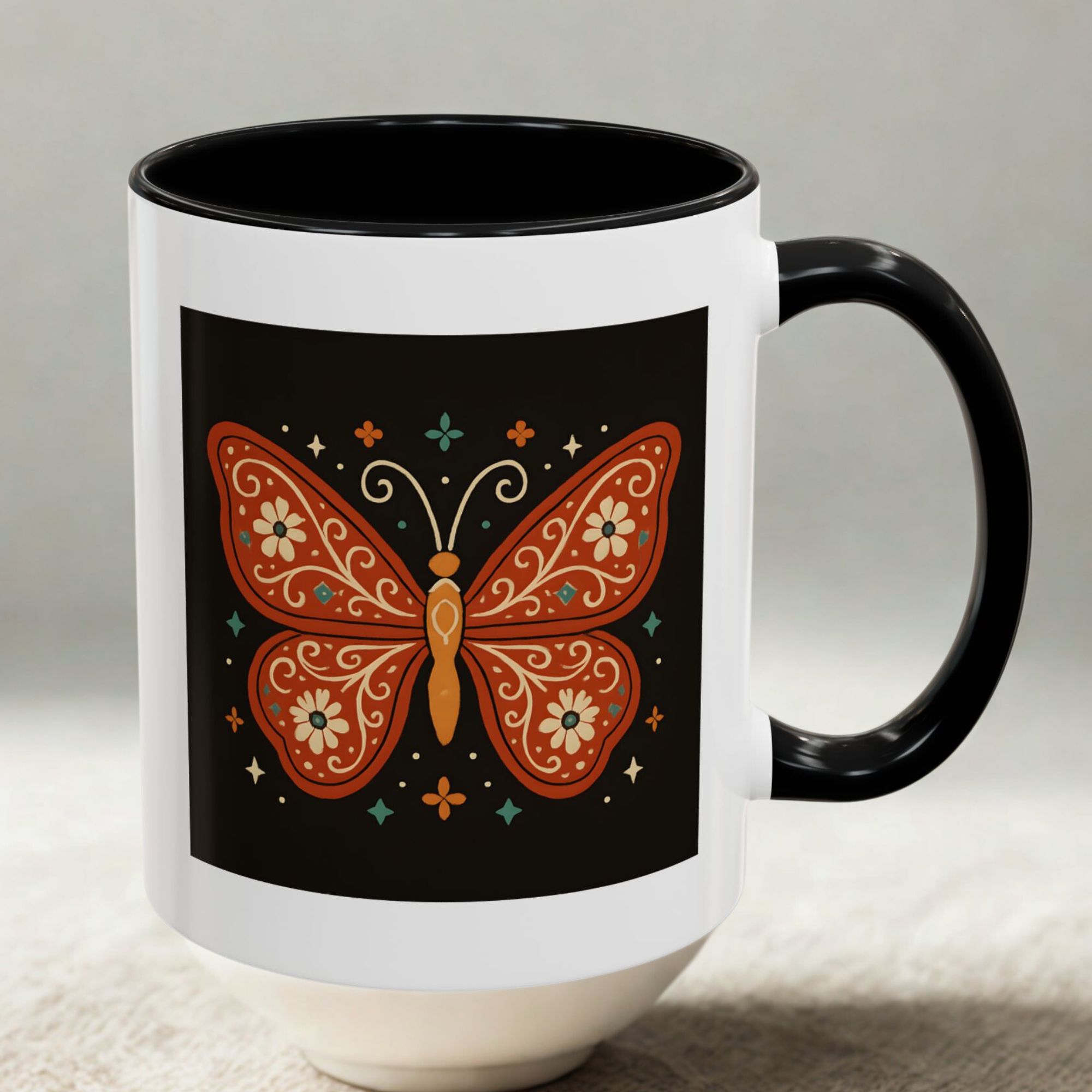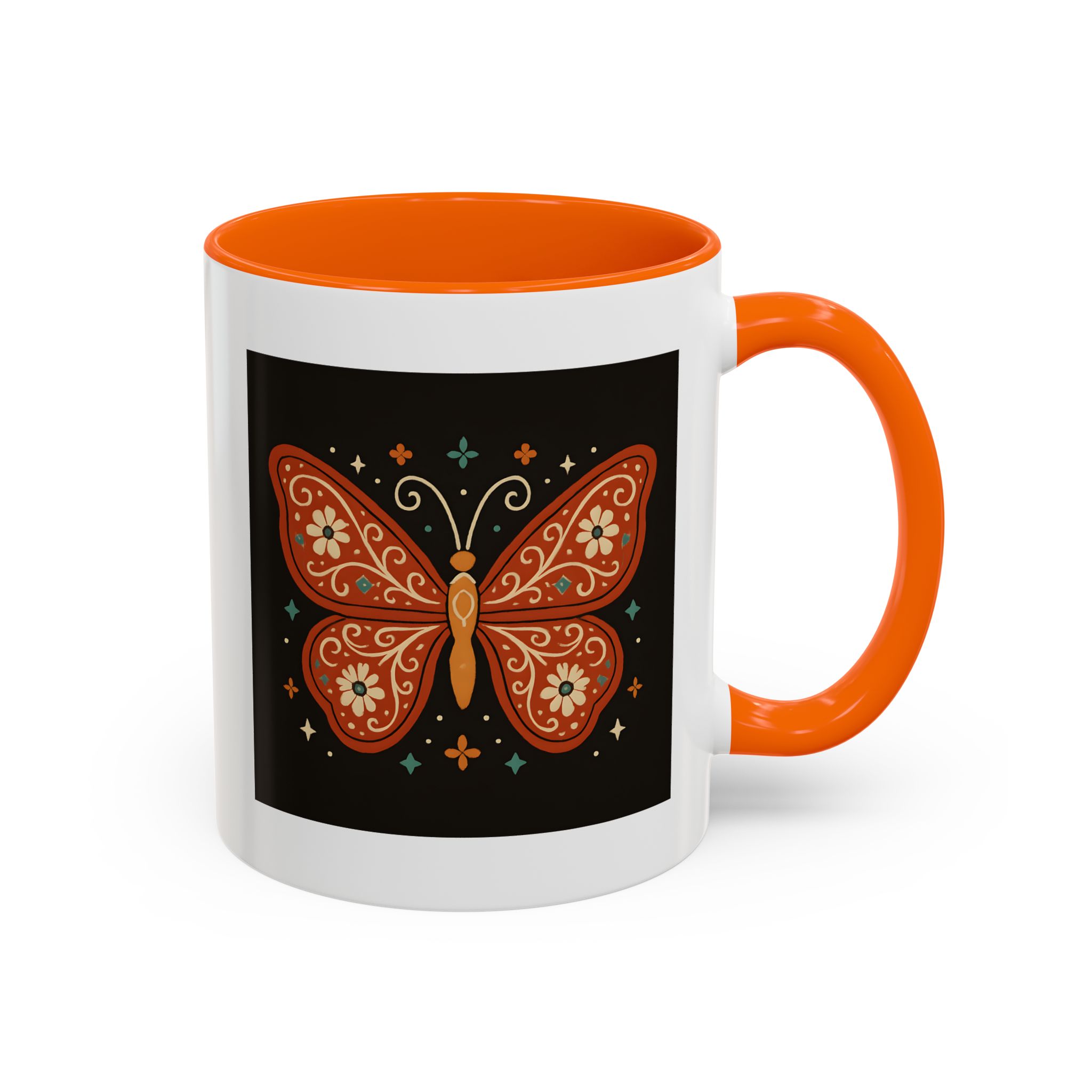 The bold contrast of the black background with burnt orange and floral details makes this butterfly mug a striking piece for your kitchen. It’s a small reminder to stay vibrant, free-spirited, and beautifully unique – just like a butterfly.
