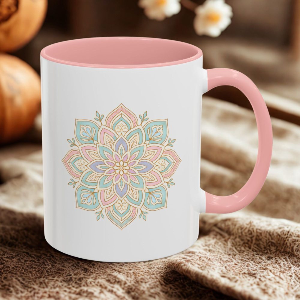 This boho spiritual mug features a pastel mandala design — a mindful, calming gift for yoga and meditation lovers.
