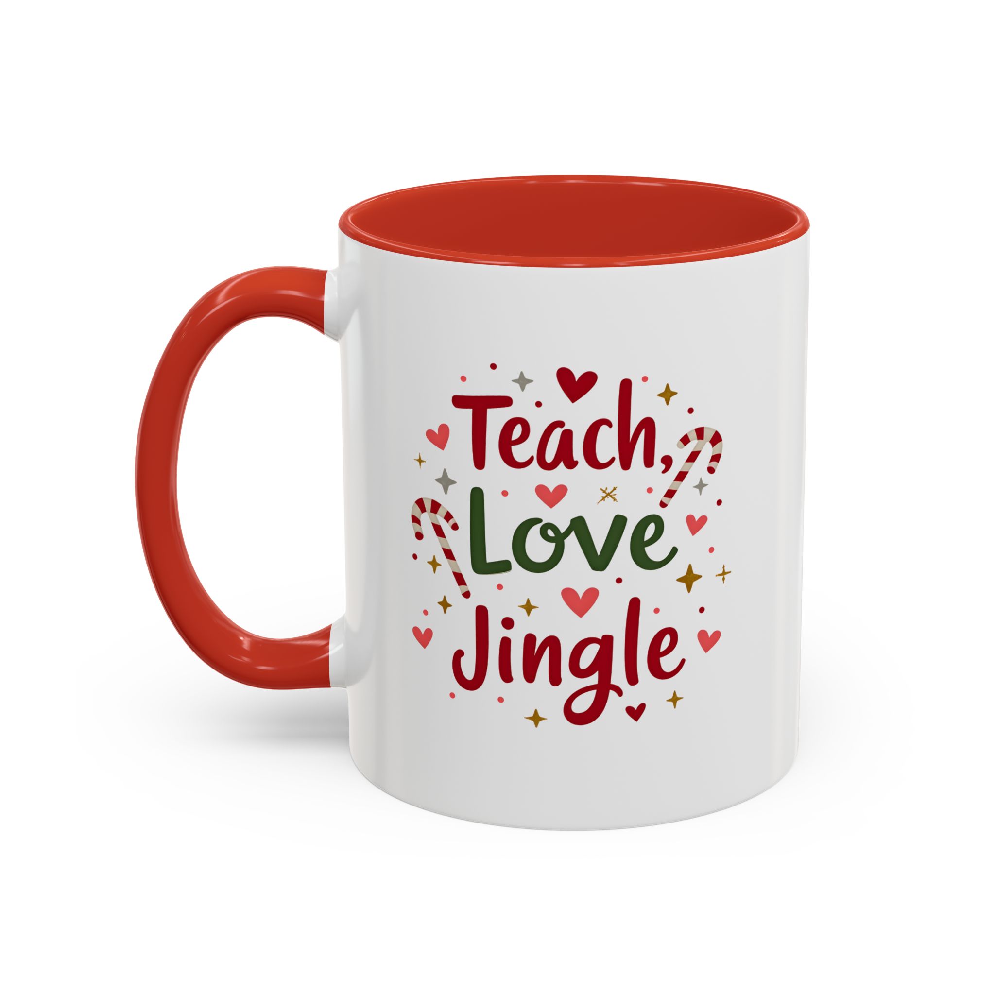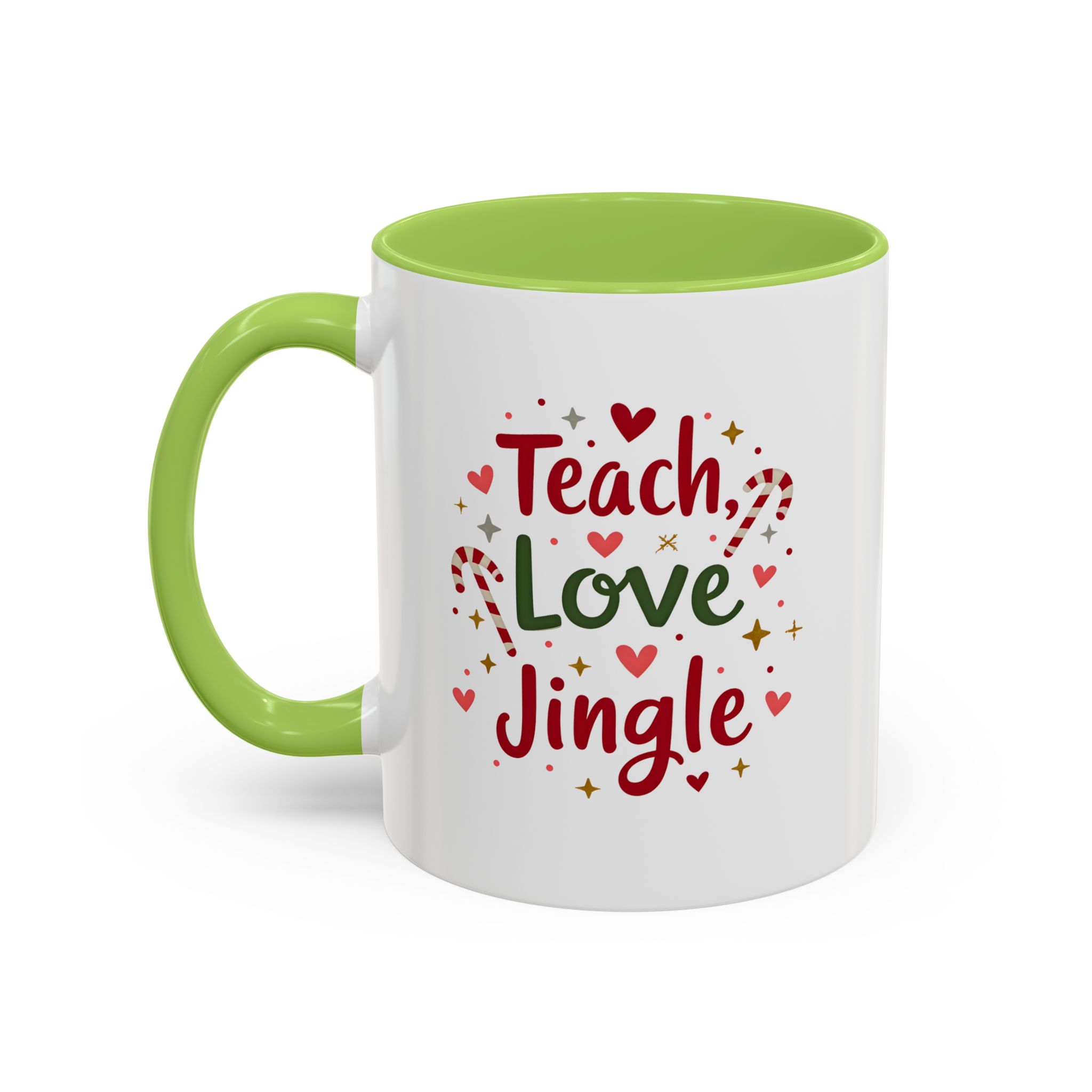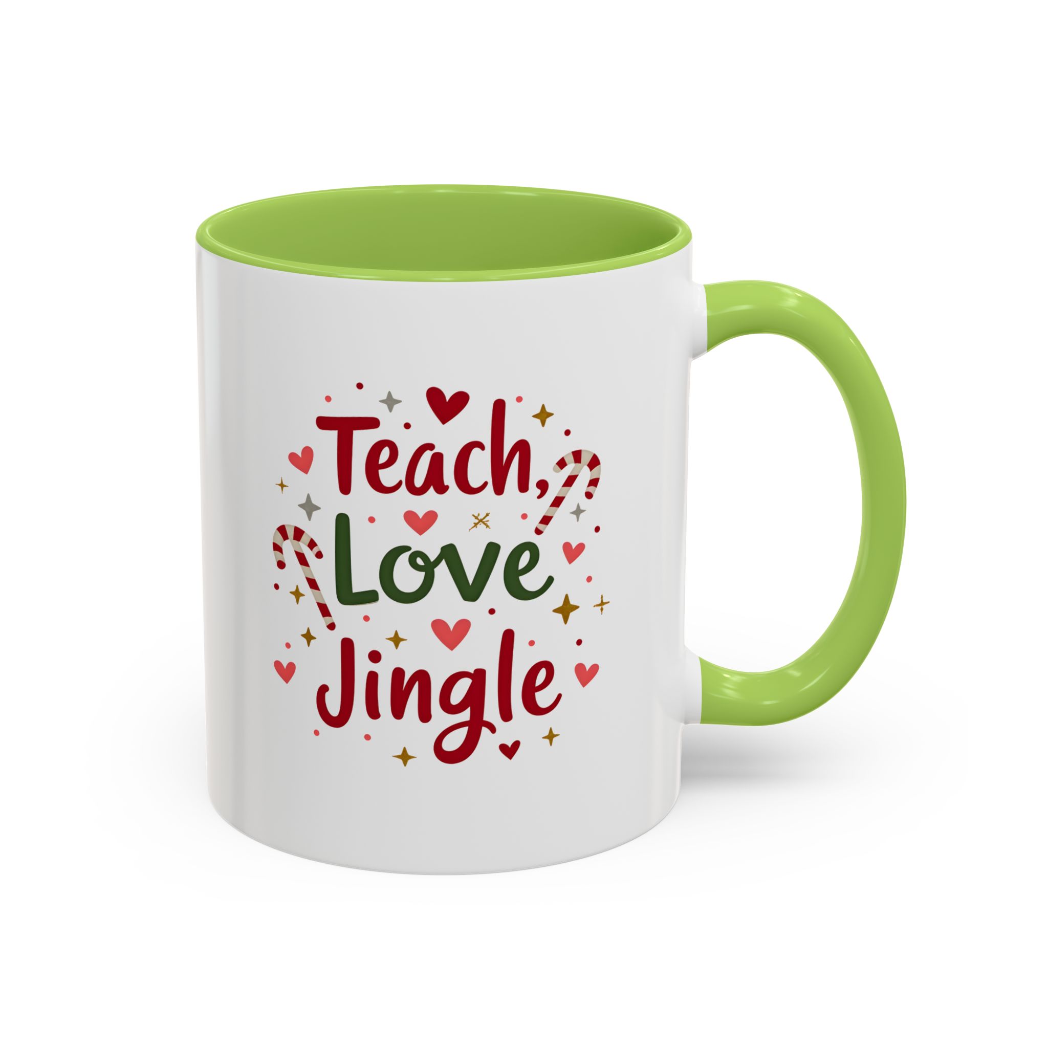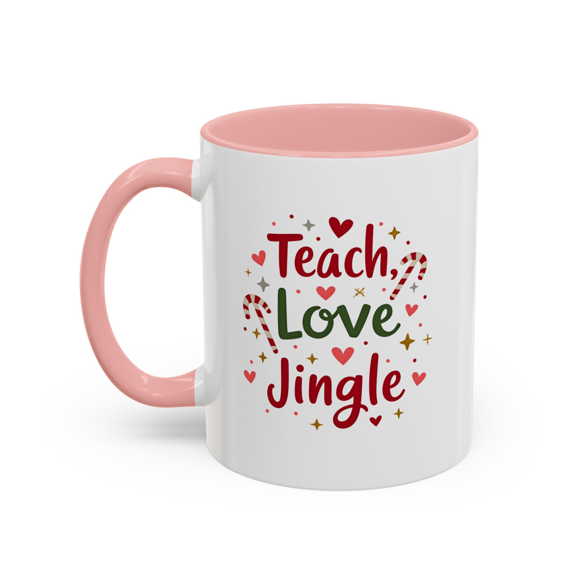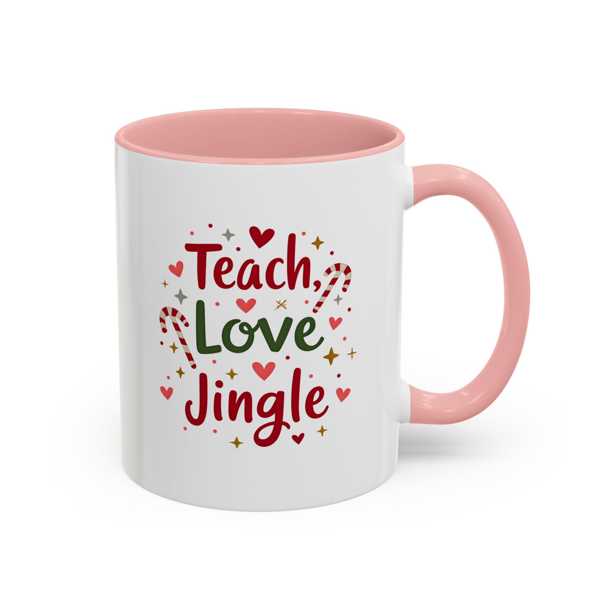 • 🎄 “Teach, Love, Jingle” with festive candy canes, hearts, and stars