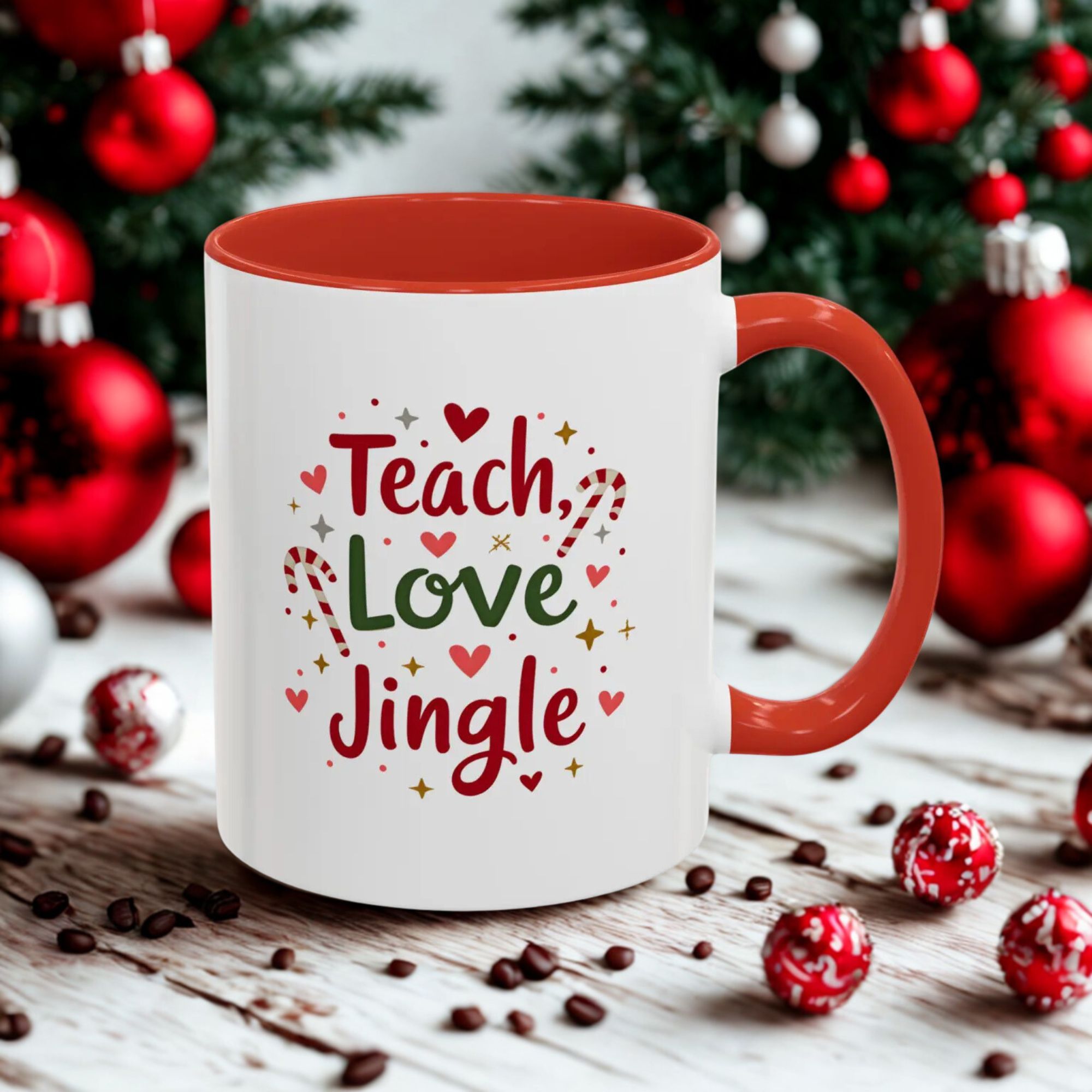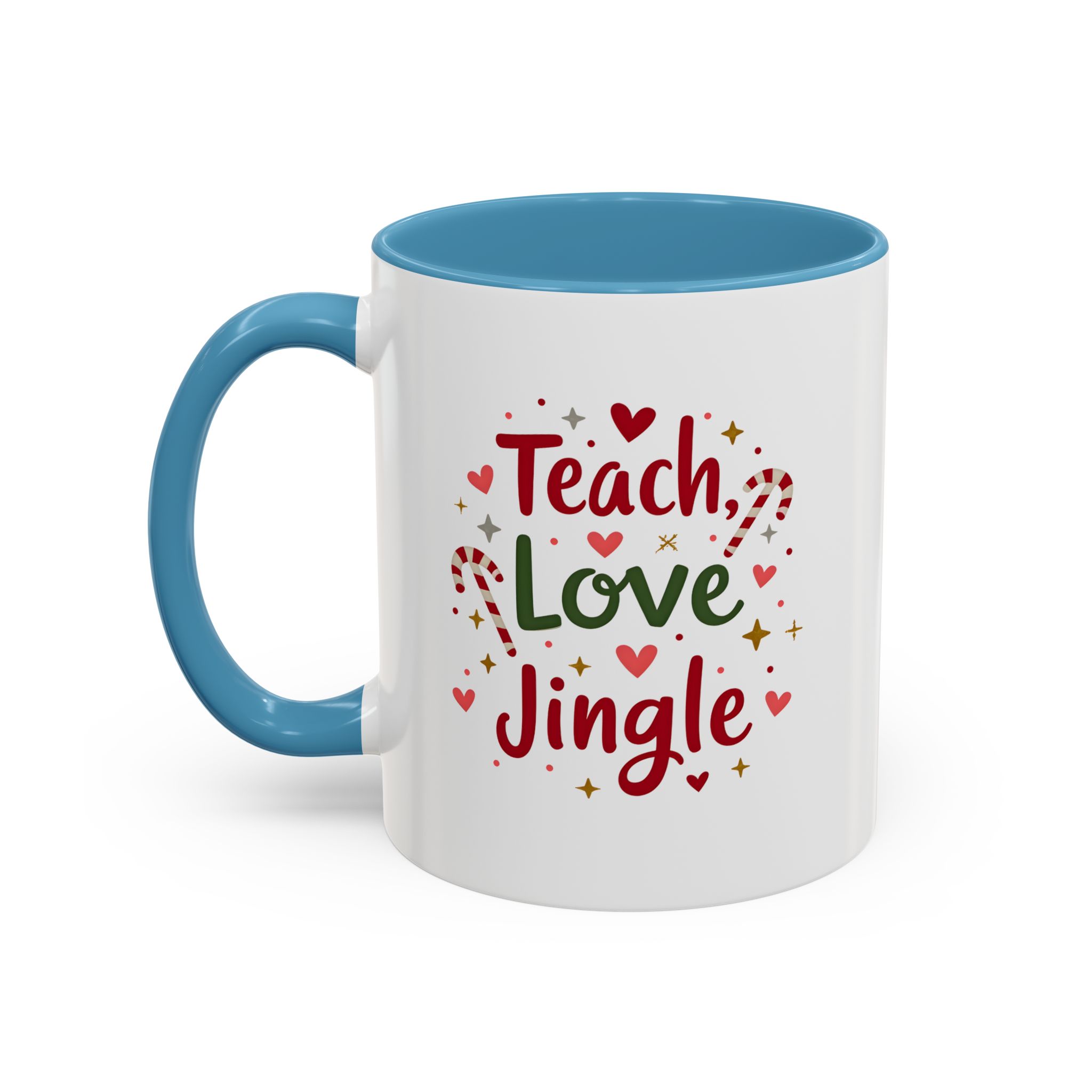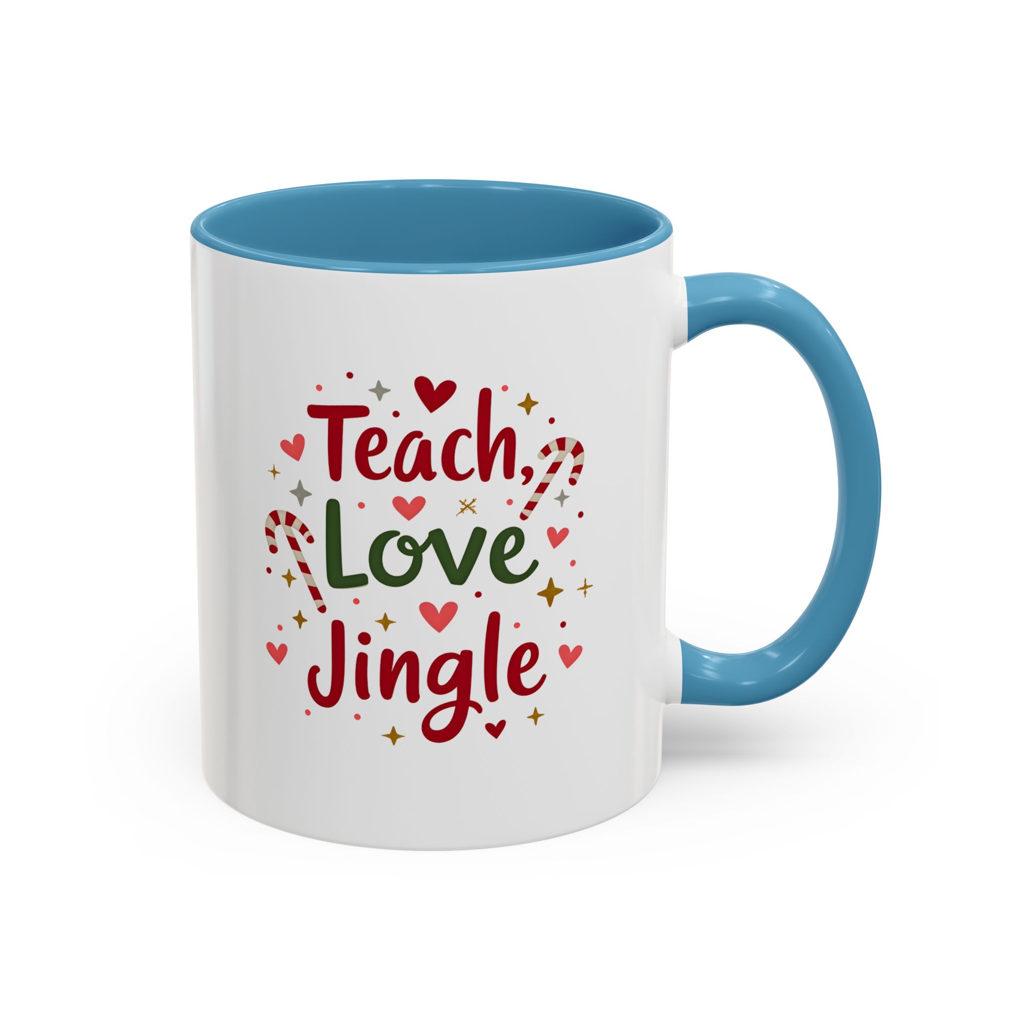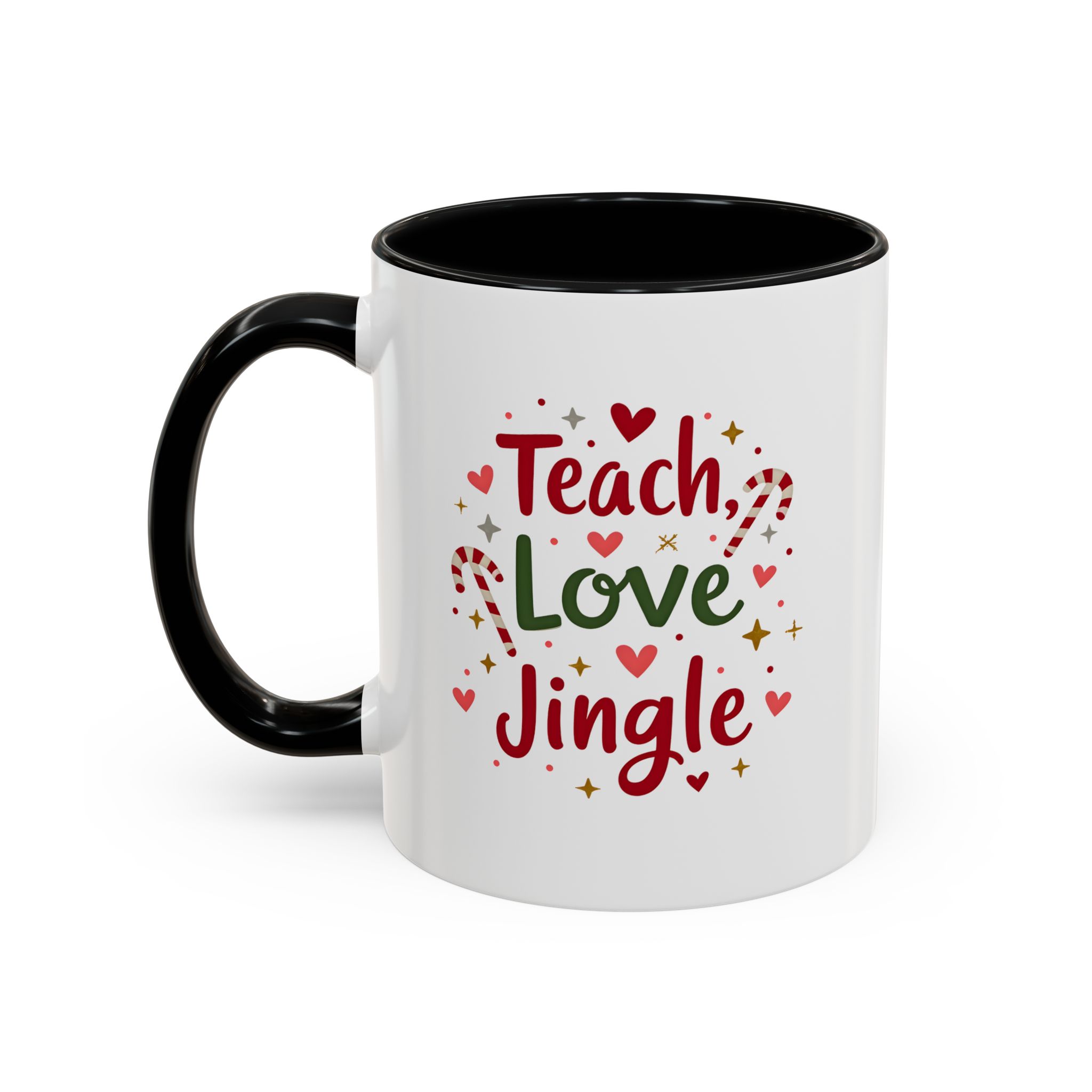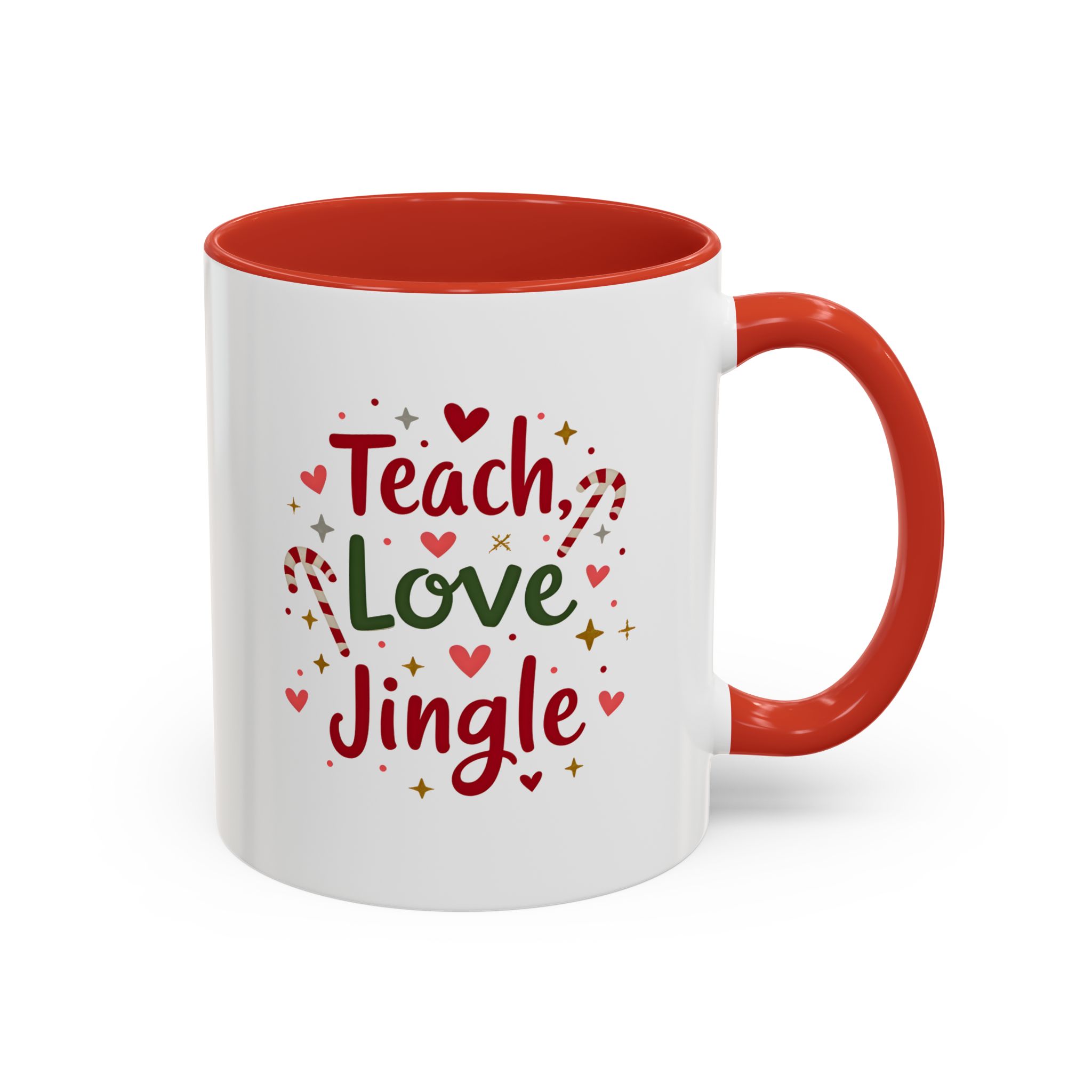 • 🎄 “Teach, Love, Jingle” with festive candy canes, hearts, and stars