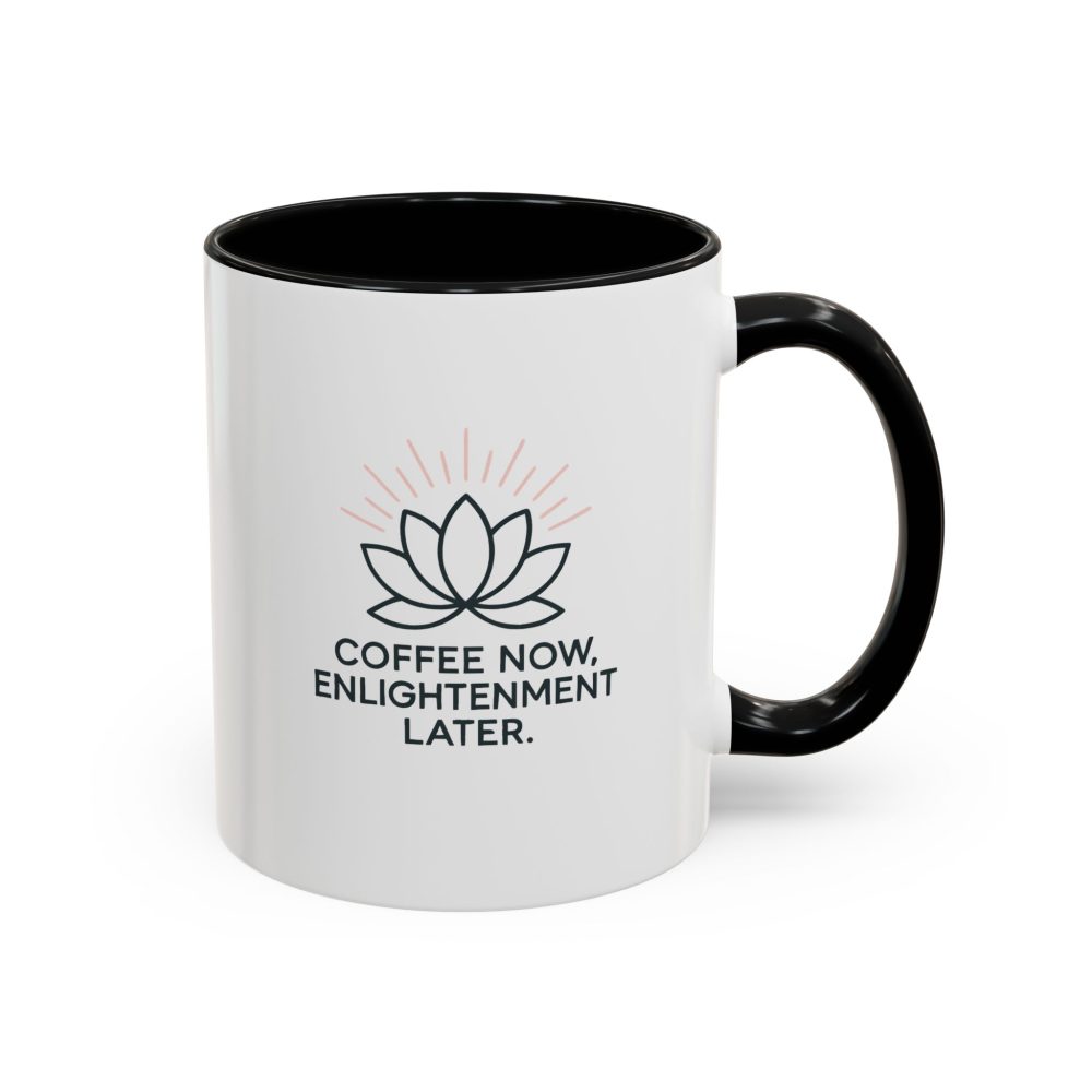 Simplify your mornings with this Coffee Now Enlightenment Later mug. A calm, clean 11oz ceramic mug with a mindful lotus design — made for UK coffee lovers.