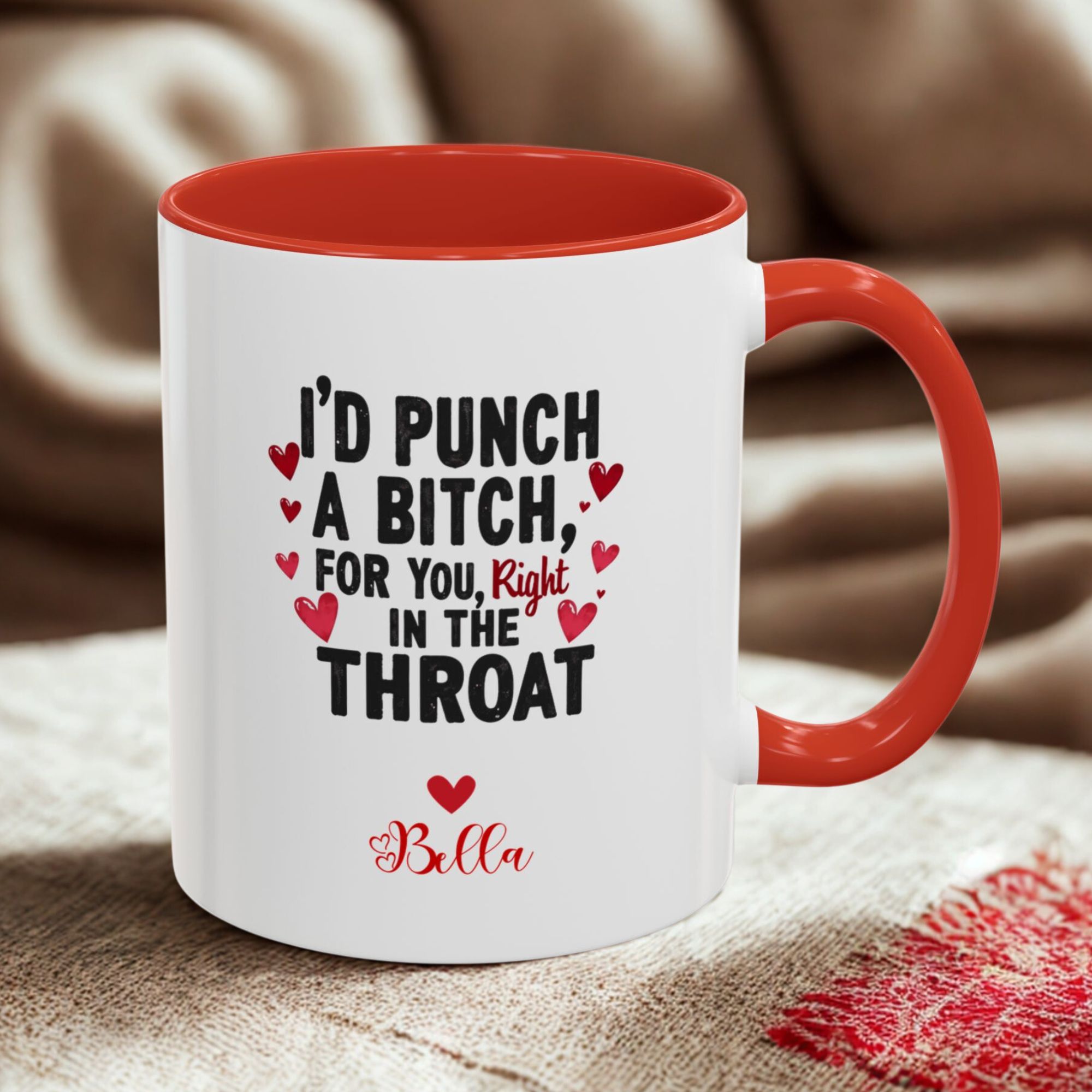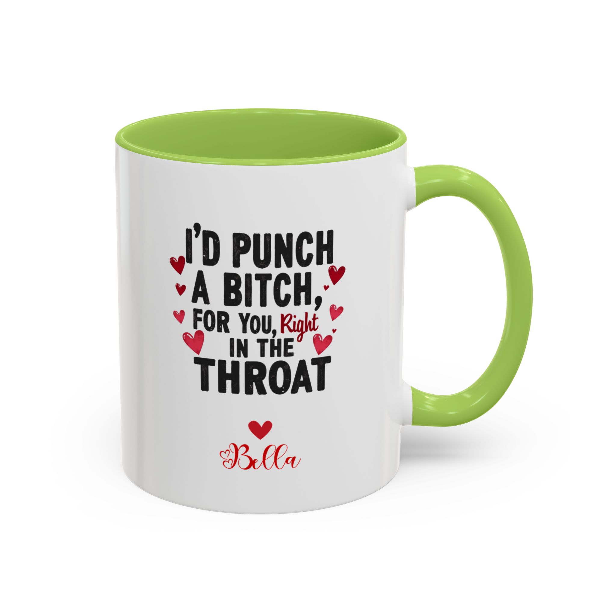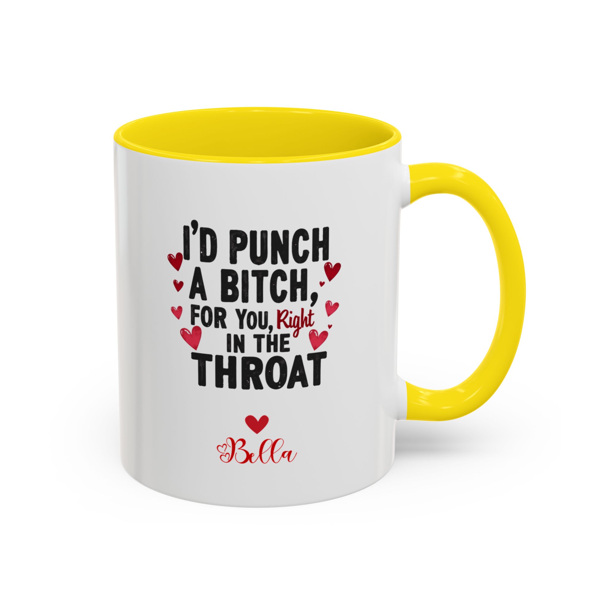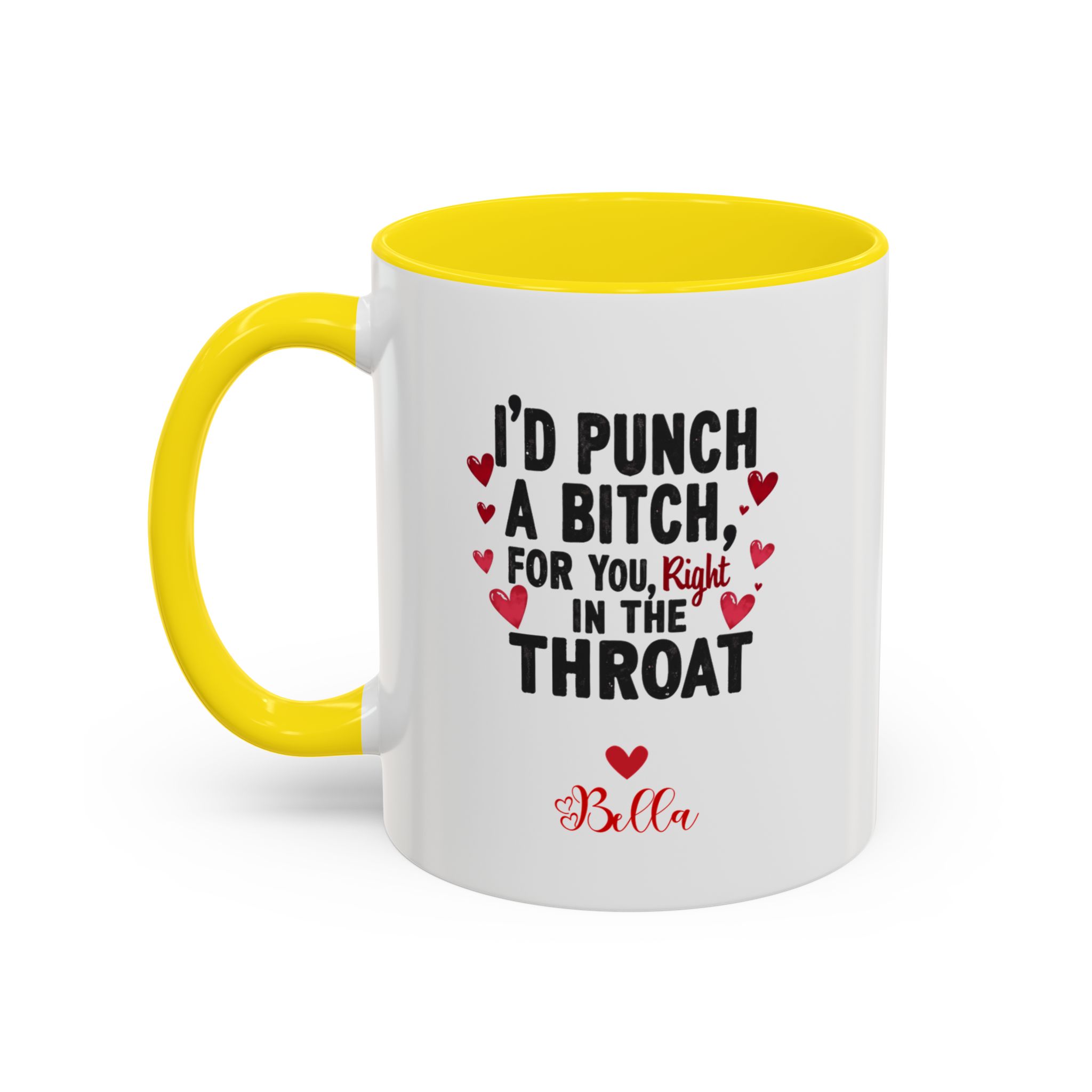 Make a bold and unapologetic statement with this I’d Punch a Bitch for You mug — a funny, edgy design featuring the iconic quote