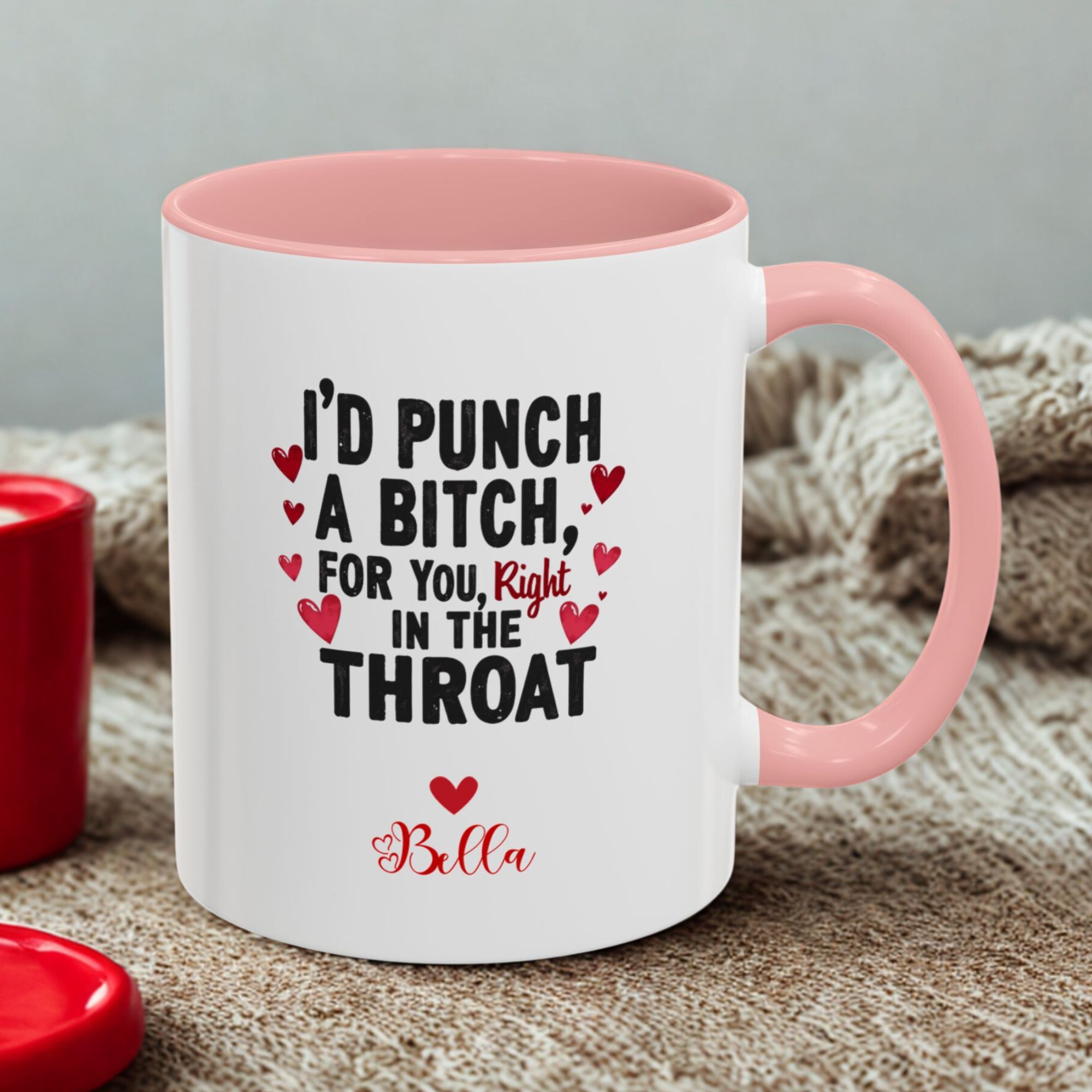 Create your own I’d Punch a Bitch for You mug with a personalised name. This funny punch a bitch mug is 11oz ceramic, microwave- and dishwasher-safe — perfect for bold UK gifting.
