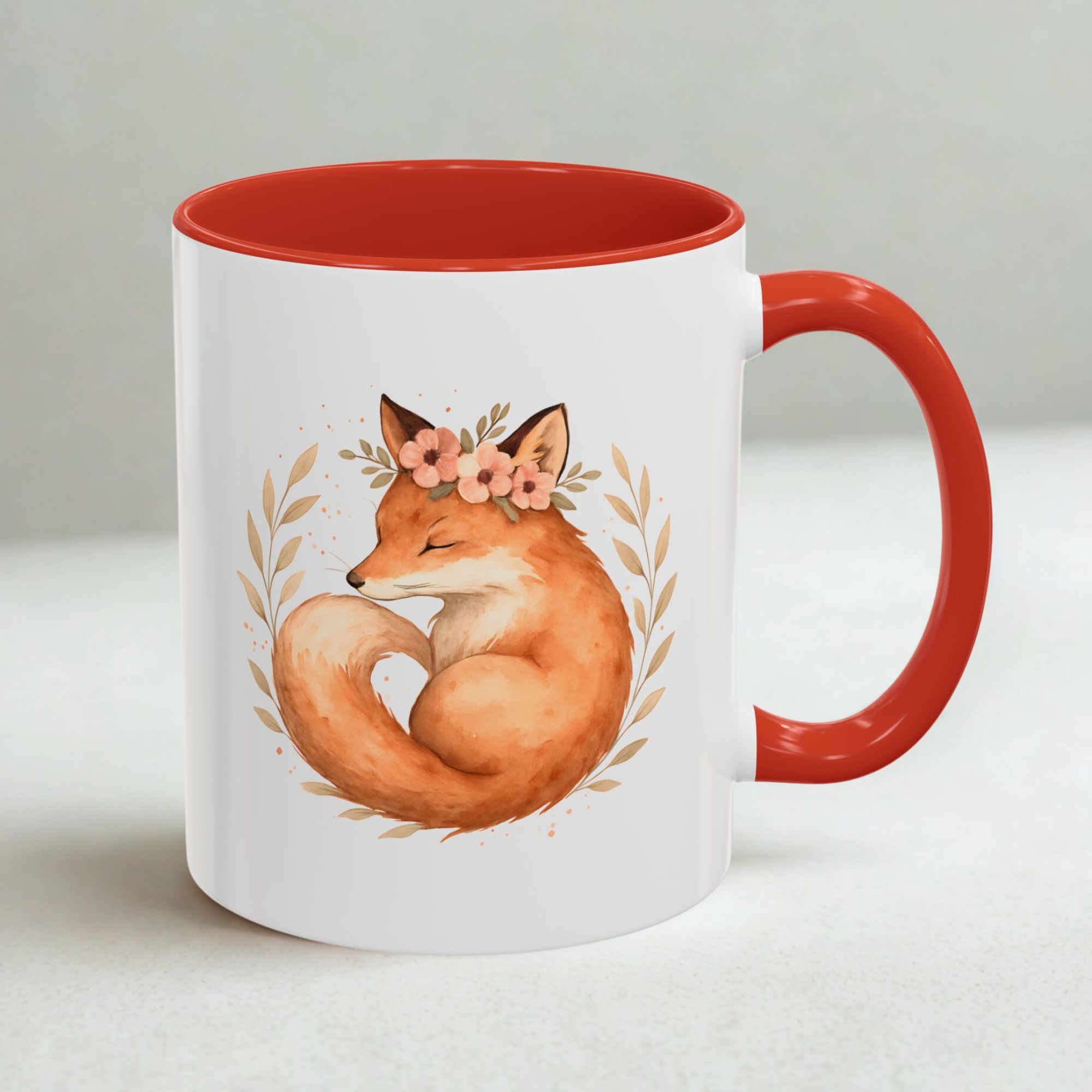 Bring a touch of woodland whimsy to your mornings with this Cute Boho Fox Mug Gift. Featuring a curled-up sleeping fox with a peachy floral crown and surrounded by soft autumn leaves, this mug exudes warmth, comfort, and charm. The gentle watercolour style adds a dreamy aesthetic, perfect for slow sips and sweet moments.