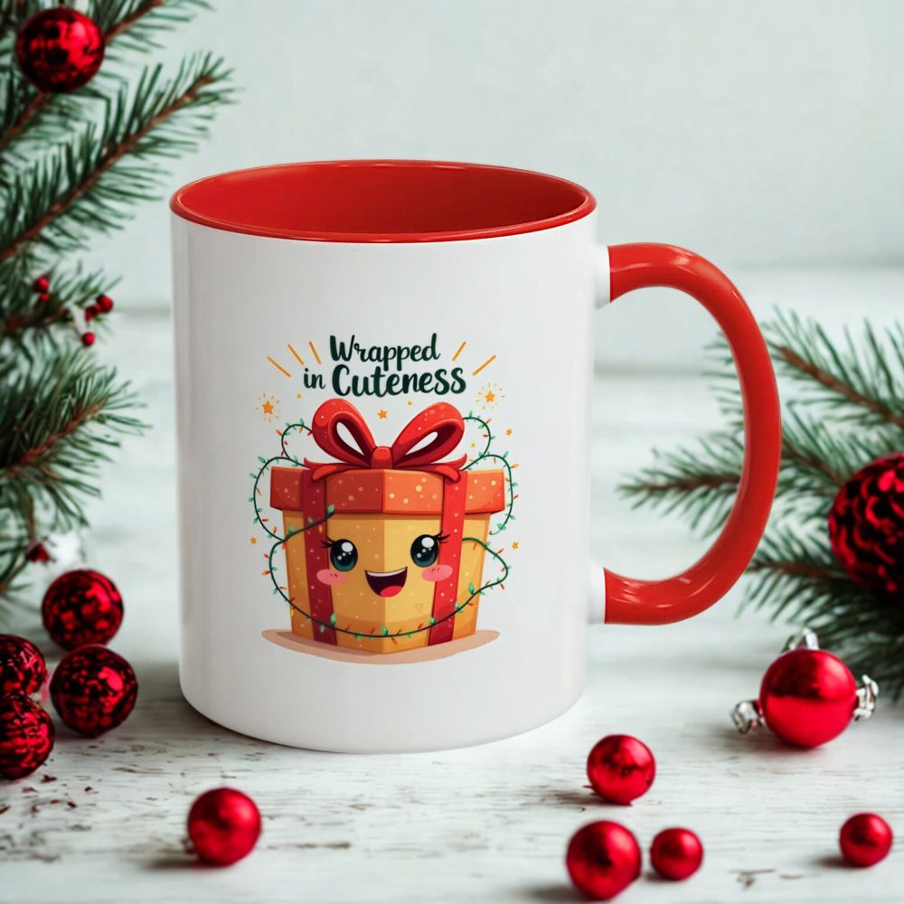 Enjoy festive charm with this “Wrapped in Cuteness” cute Christmas gift mug. This 11oz ceramic mug is microwave- and dishwasher-safe — perfect for UK holiday gifting.