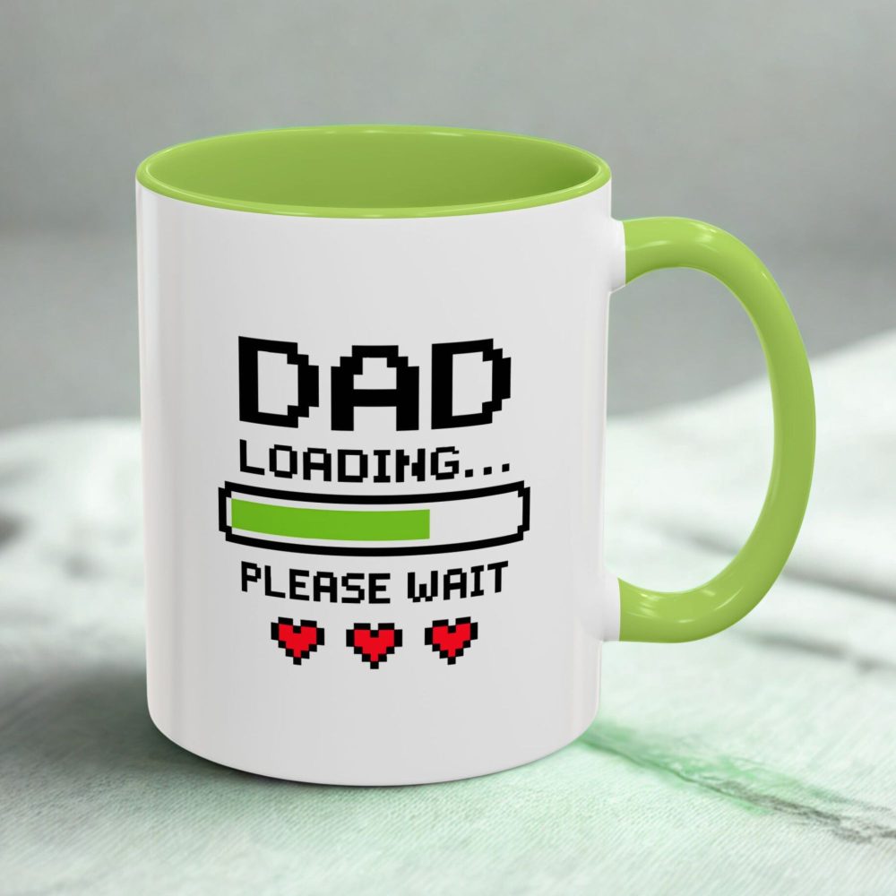 Dad to Be Loading Mug – 11oz ceramic, dishwasher & microwave safe, available in 9 accent colours. A fun and geeky gift for expecting dads.