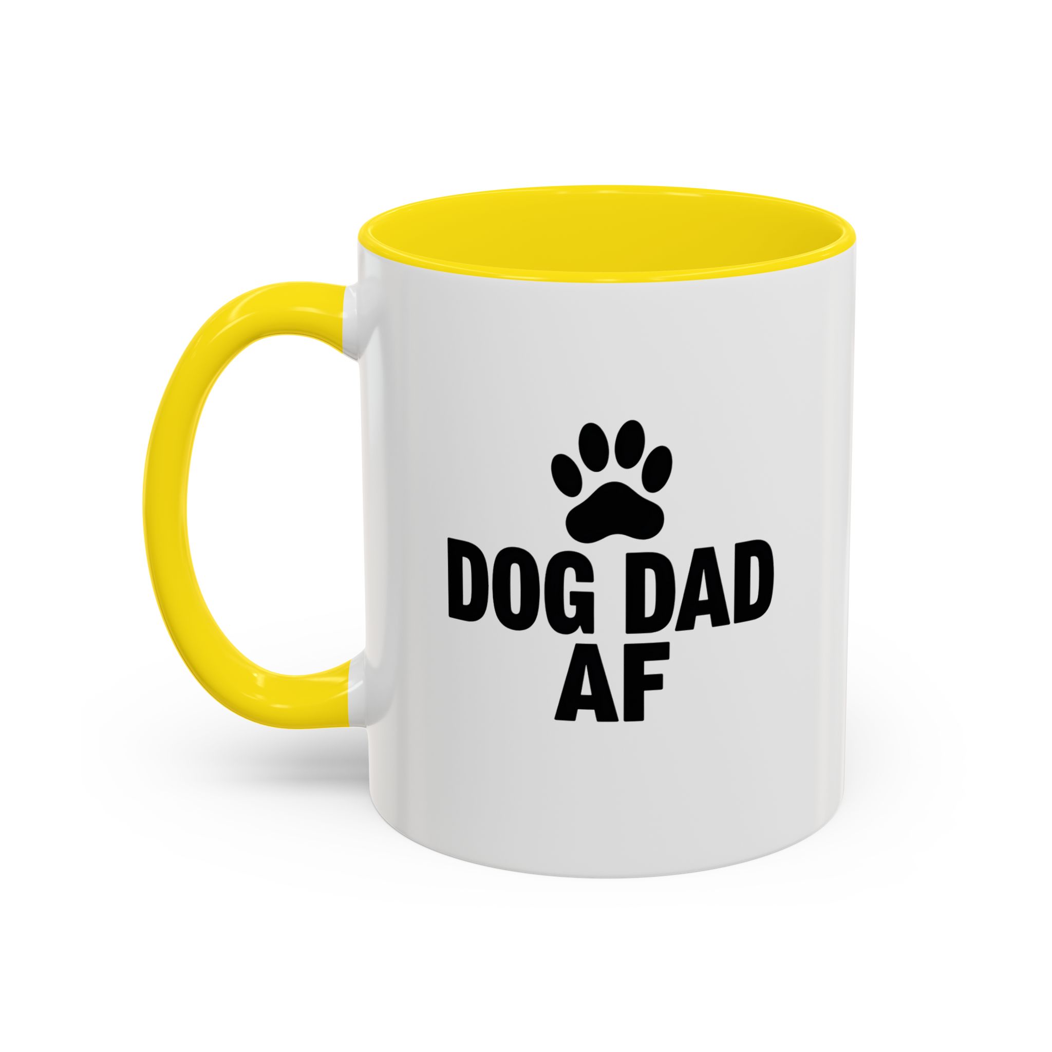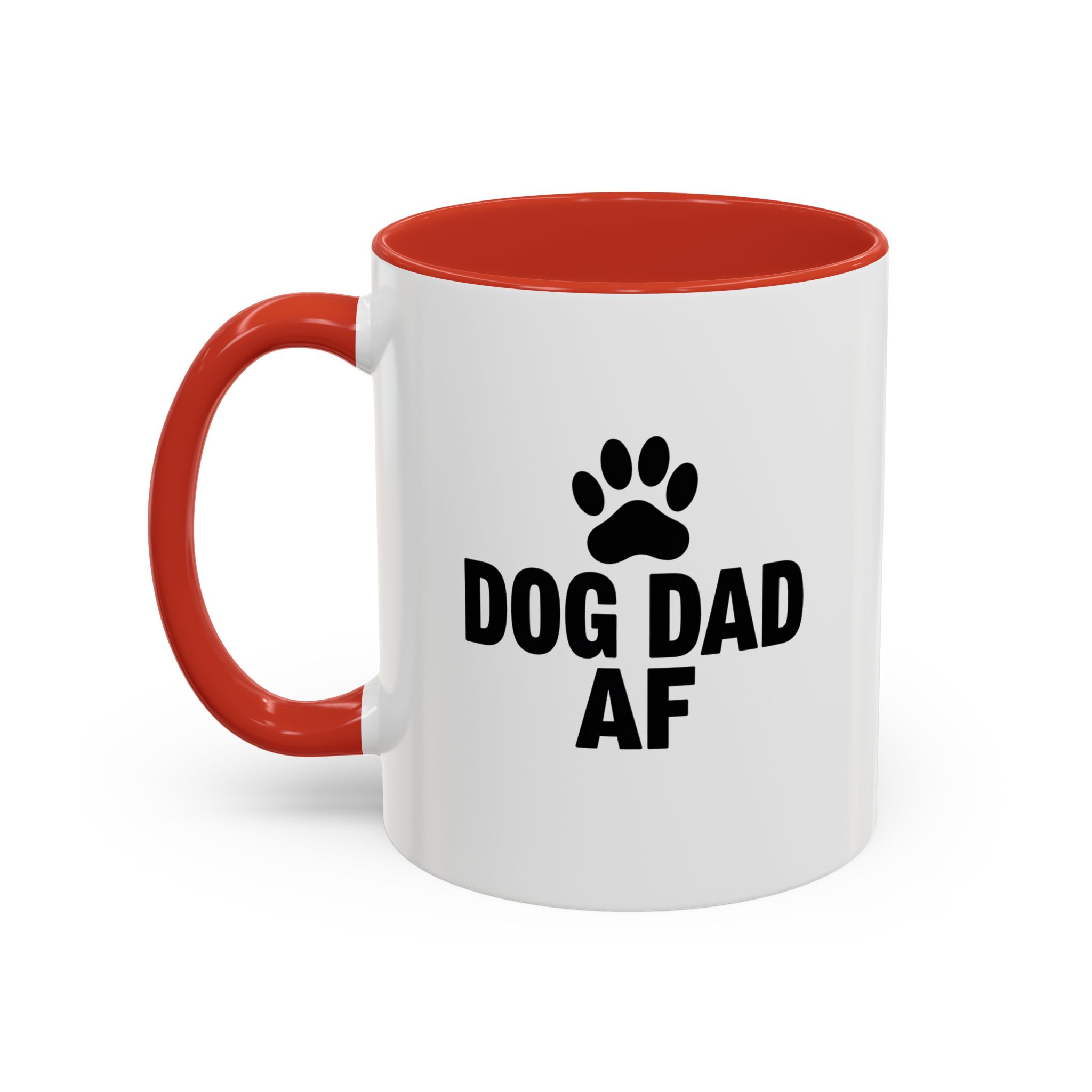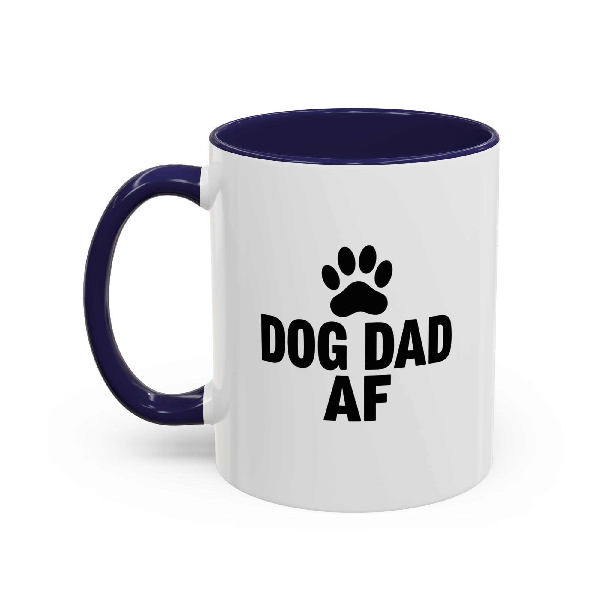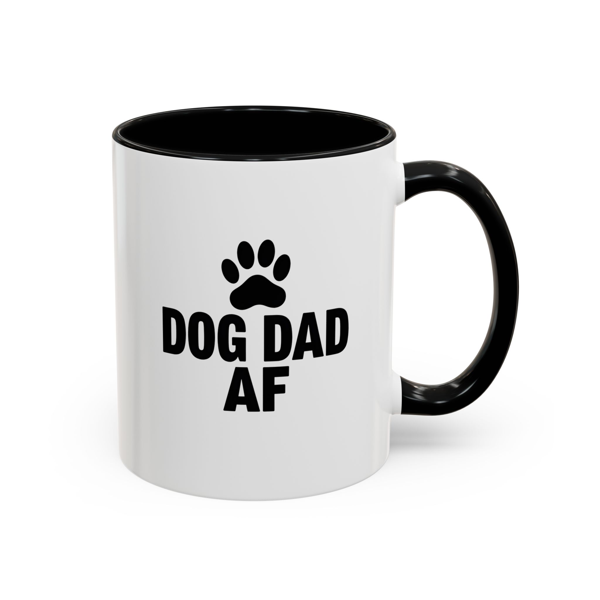 Show your pride as the ultimate dog dad with this bold and funny “Dog Dad AF” mug. Featuring a black paw print and clear statement text on a sleek white ceramic base with black handle and interior, this 11oz mug is perfect for dog lovers who want to keep their coffee stylish and straightforward. It’s microwave- and dishwasher-safe, making it a practical and humorous gift for any dog dad.