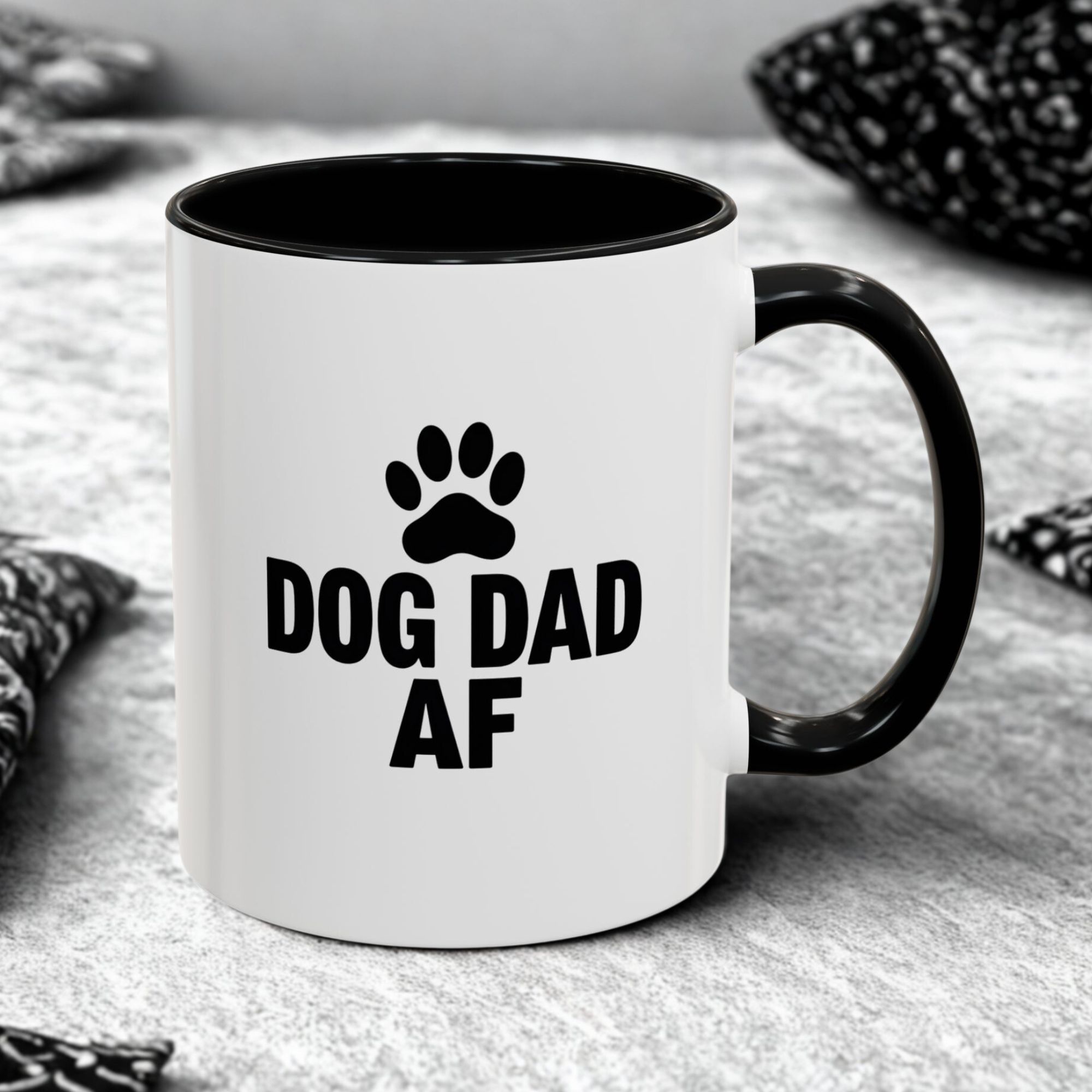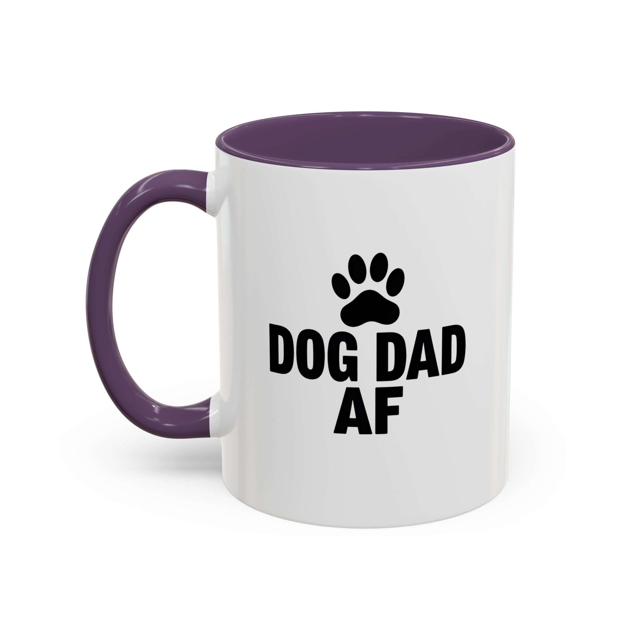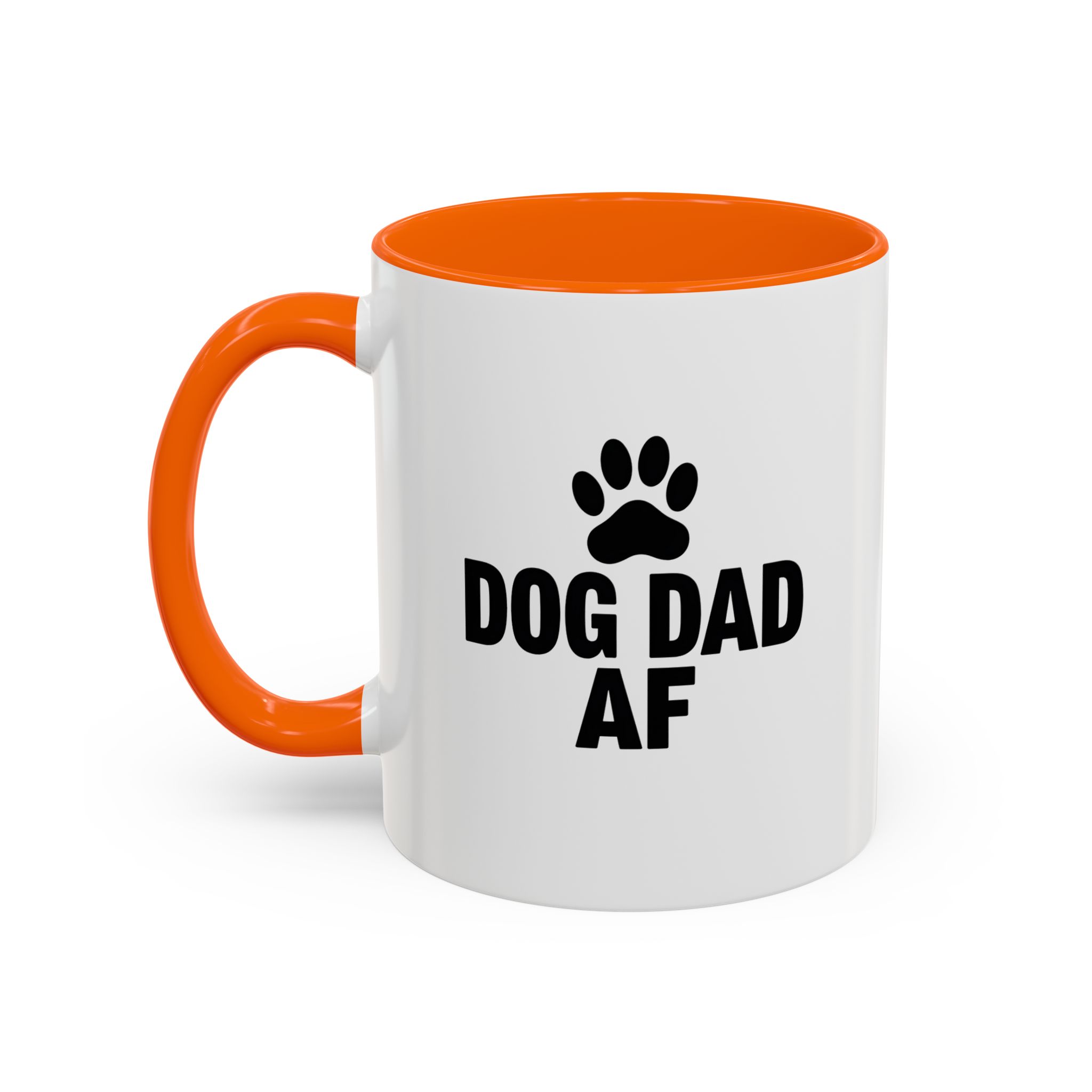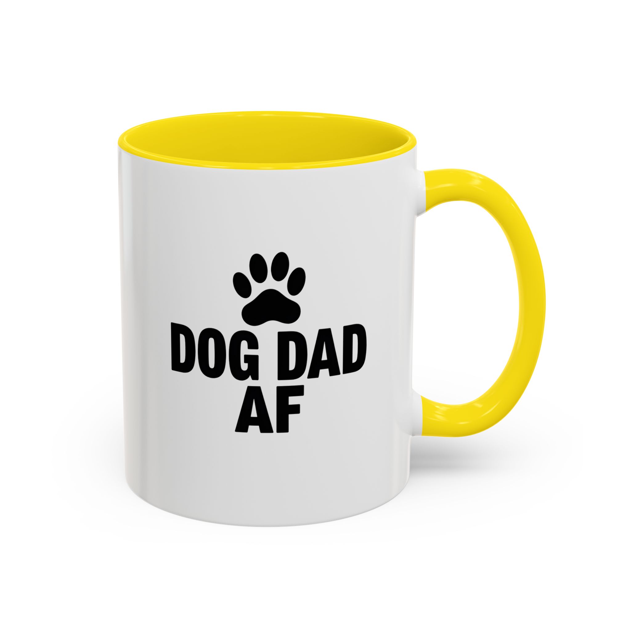 Show your pride as the ultimate dog dad with this bold and funny “Dog Dad AF” mug. Featuring a black paw print and clear statement text on a sleek white ceramic base with black handle and interior, this 11oz mug is perfect for dog lovers who want to keep their coffee stylish and straightforward. It’s microwave- and dishwasher-safe, making it a practical and humorous gift for any dog dad.