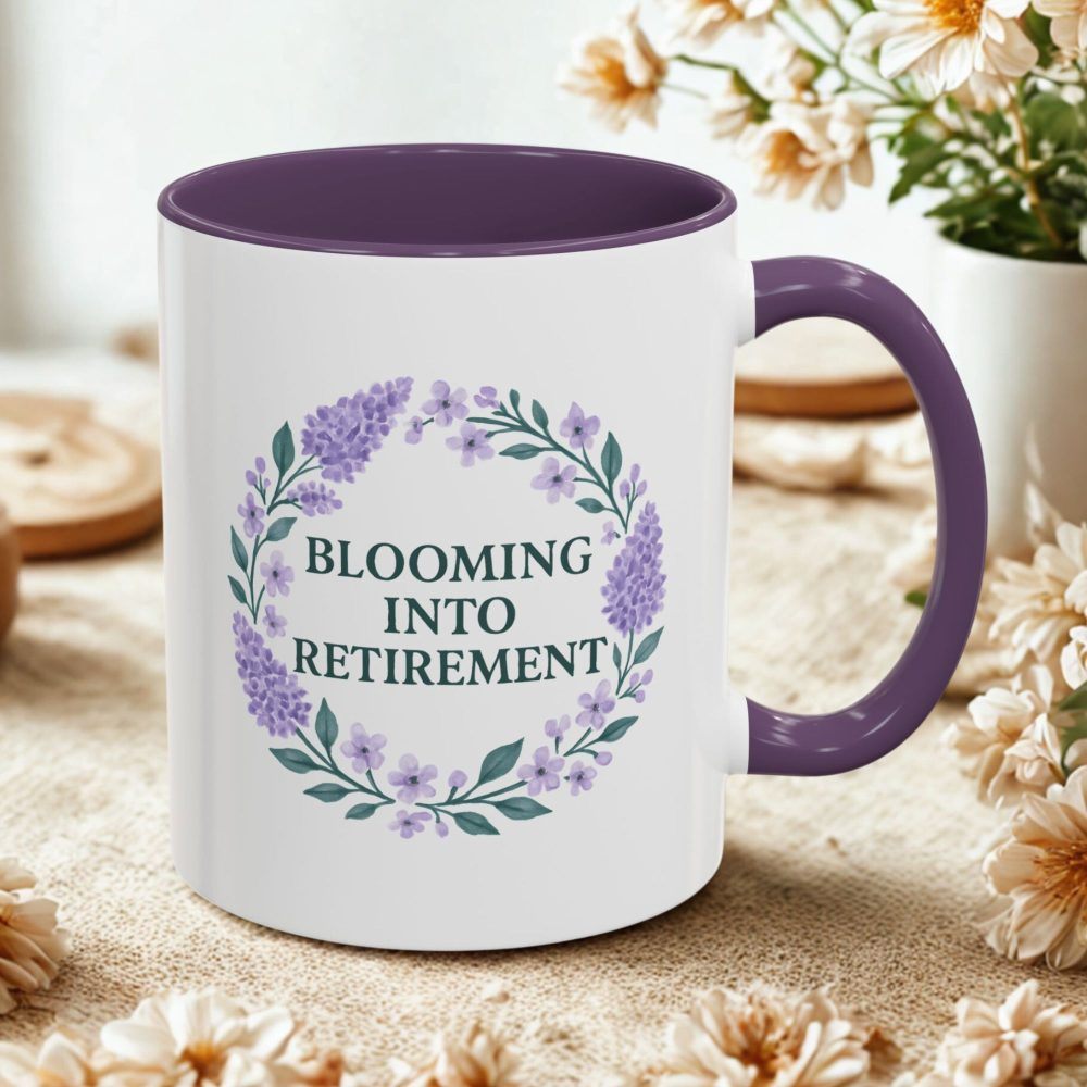 Celebrate the next beautiful chapter with this Floral Retirement Mug UK! Featuring a graceful lavender wreath and elegant typography that reads “Blooming Into Retirement,” this mug is the perfect symbol of growth, renewal, and joy.