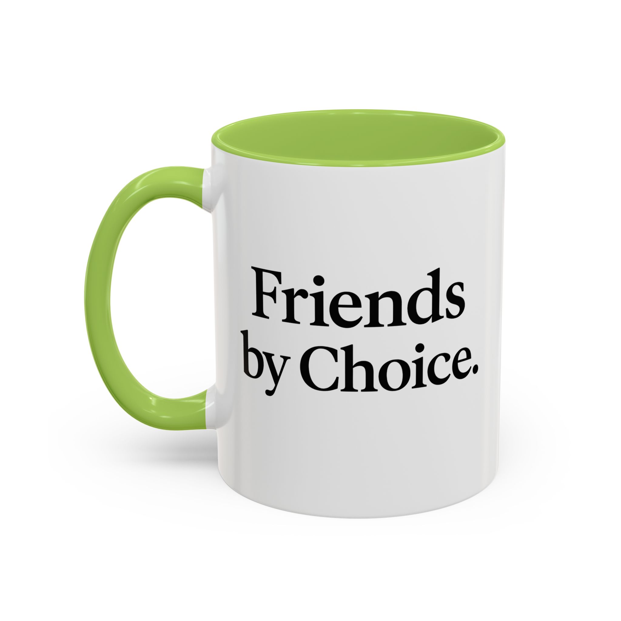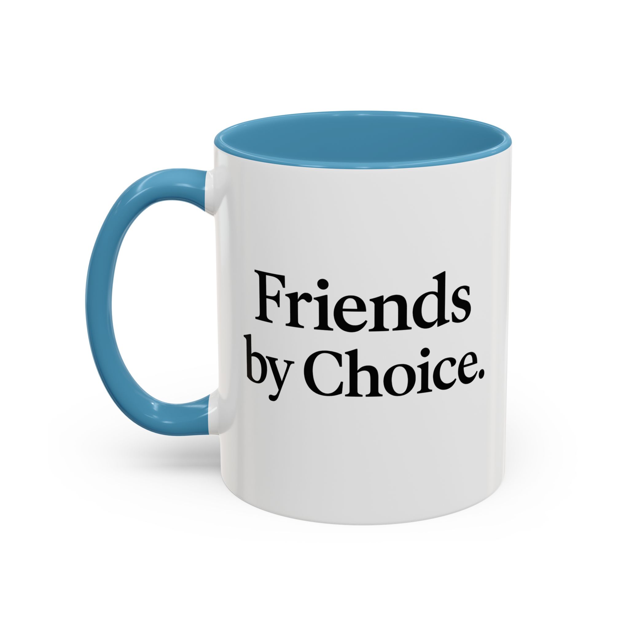 Celebrate chosen family with this friends by choice mug. A minimalist, meaningful friendship gift designed for everyday coffee moments.