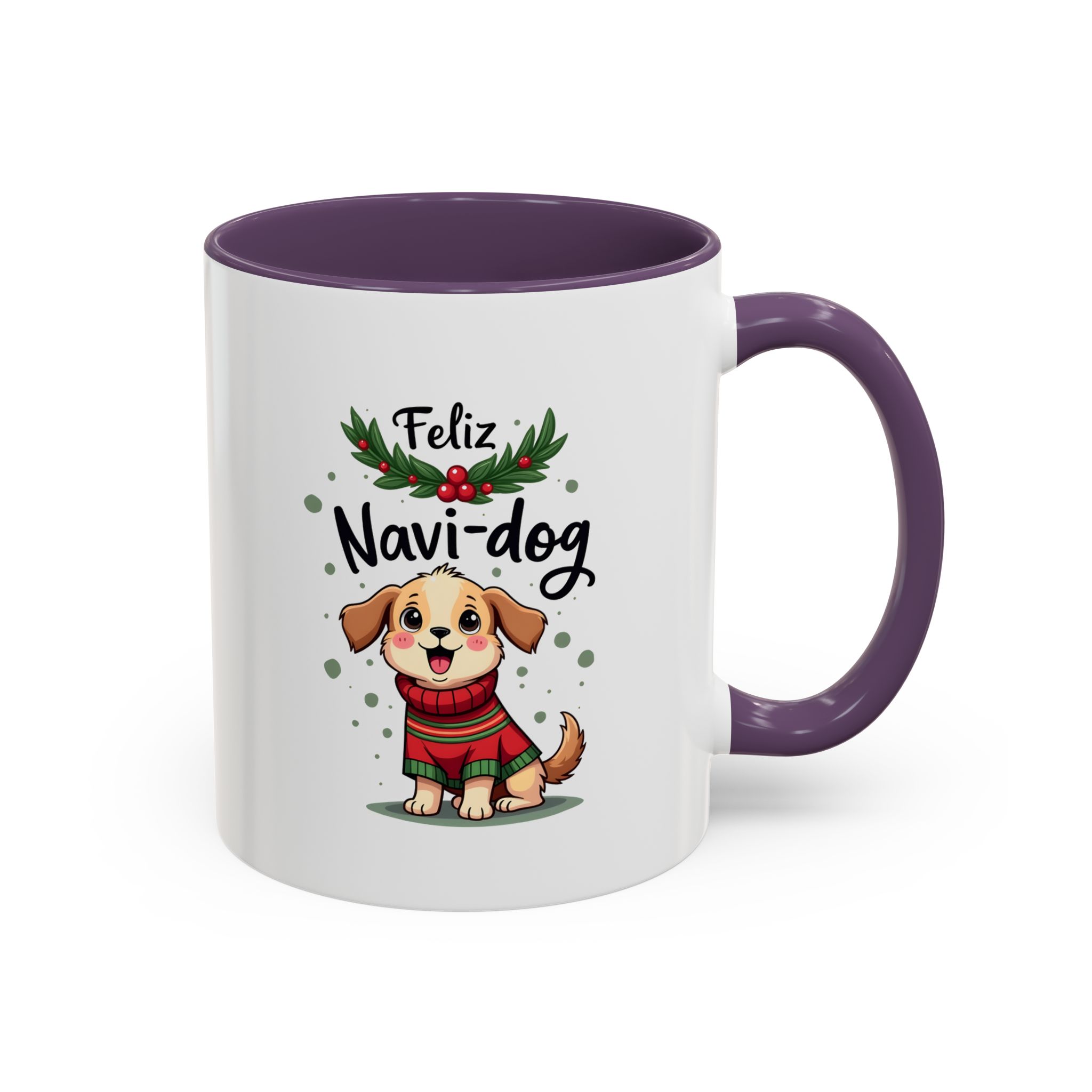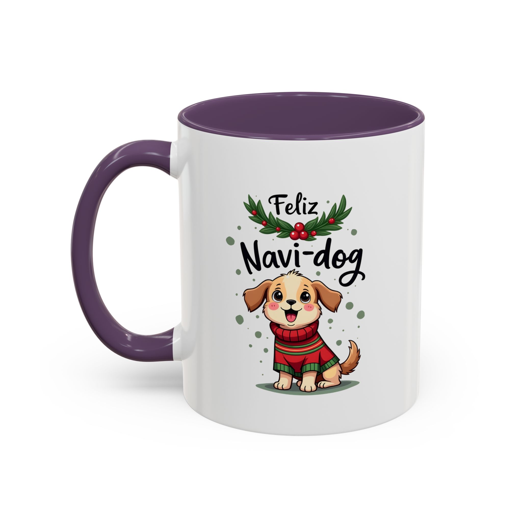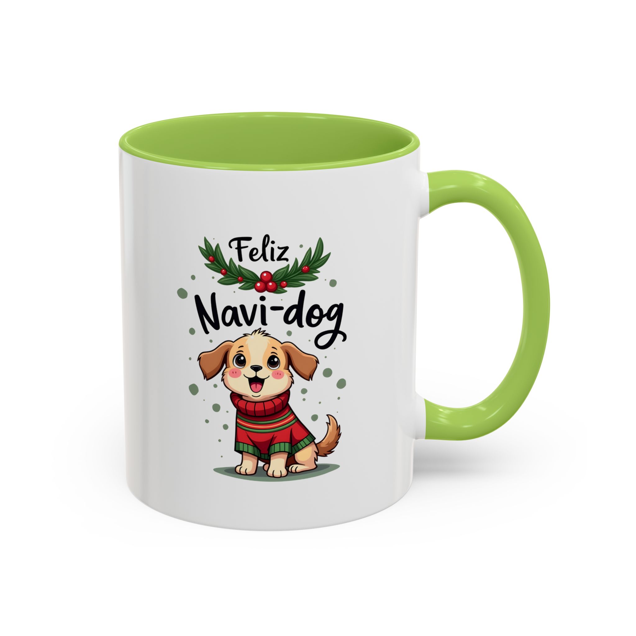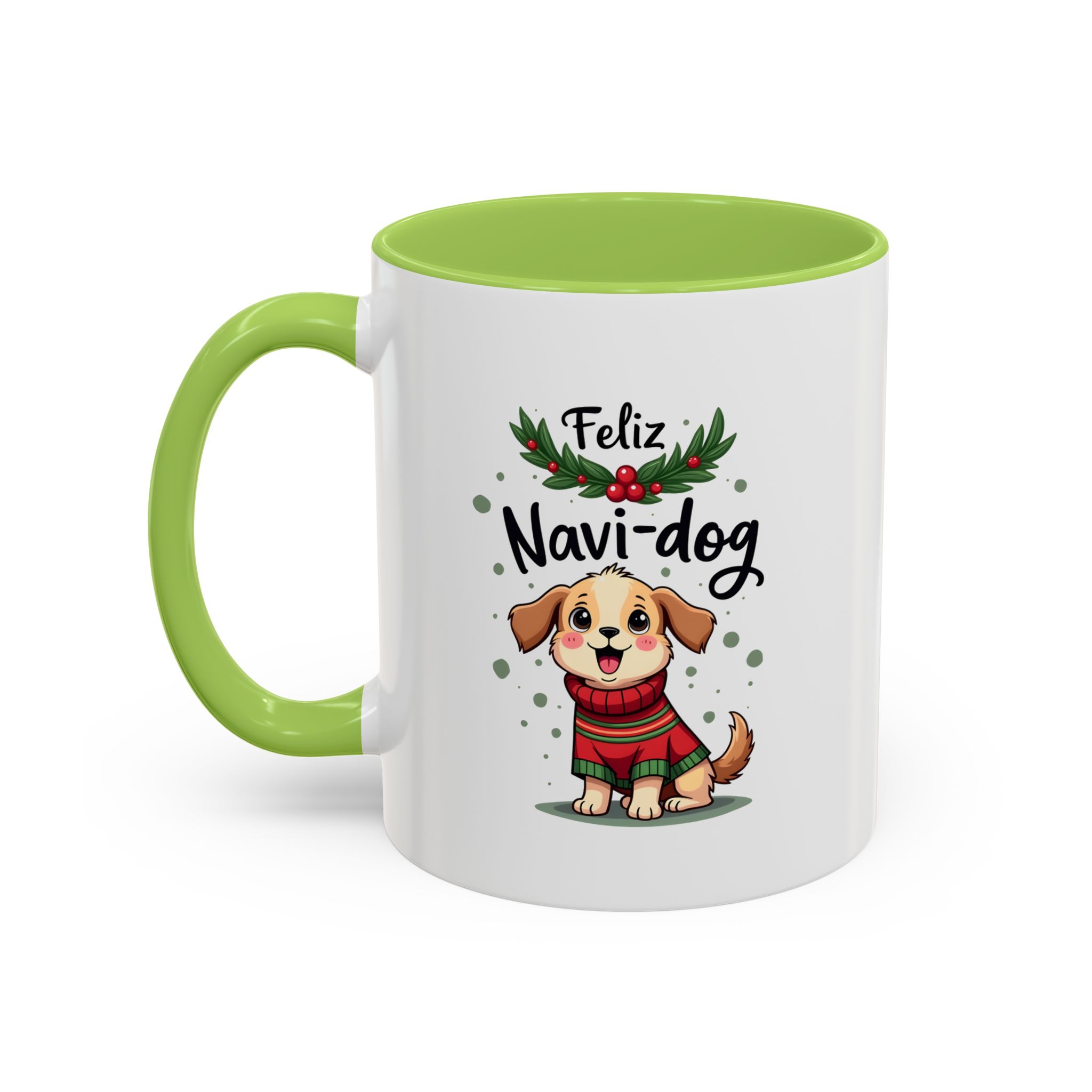 • 🐶 “Feliz Navi-dog” with cute puppy and holly design