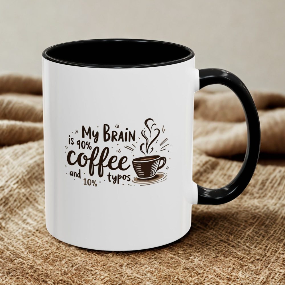 Funny Coffee Mug – “My Brain is 90% Coffee and 10% Typos” – 11oz Ceramic Mug