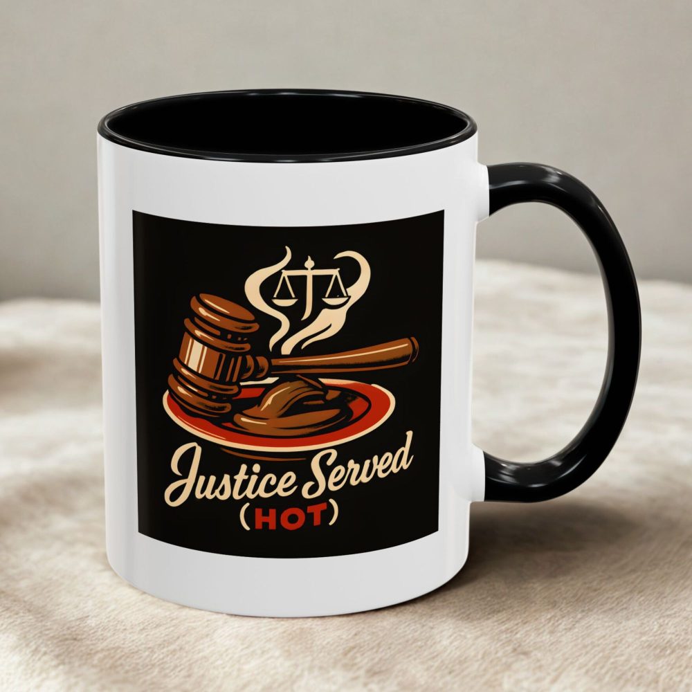 Justice Served Hot Mug – Funny Lawyer Gift Coffee Cup