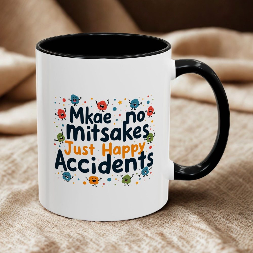 Celebrate happy little accidents with this funny ceramic coffee mug. A perfect quirky gift for creatives, teachers, or typo fans.