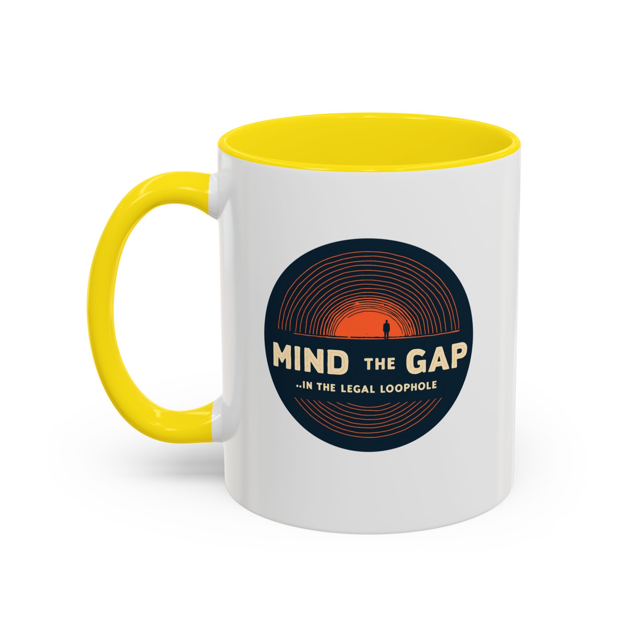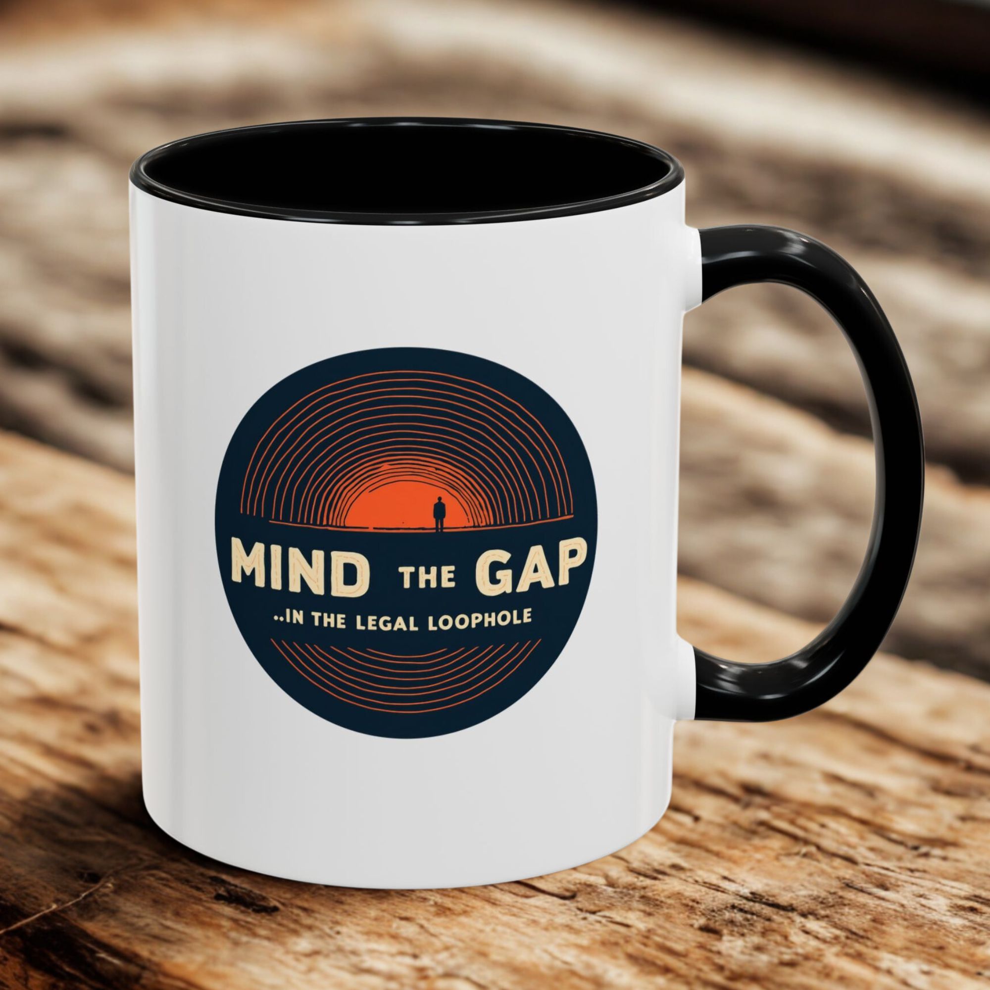 Celebrate legal wit with this “Mind the Gap… in the Legal Loophole” mug. Featuring a bold circular design, this 11oz ceramic mug is microwave- and dishwasher-safe — a smart, funny gift for UK lawyers.