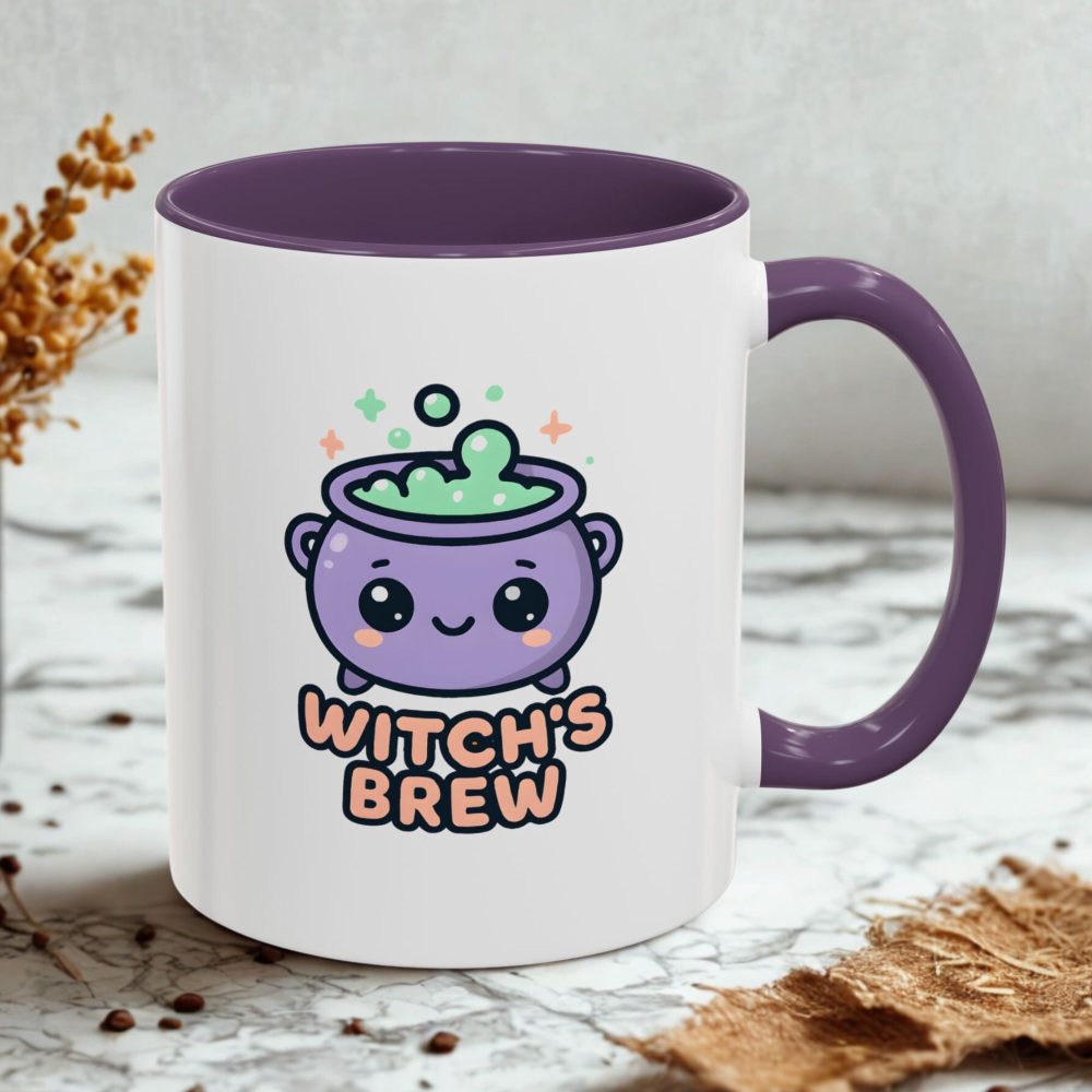 Magical Cauldron Mug with cute “Witch’s Brew” design. Perfect witchy Halloween coffee cup for spooky season or magical everyday use.