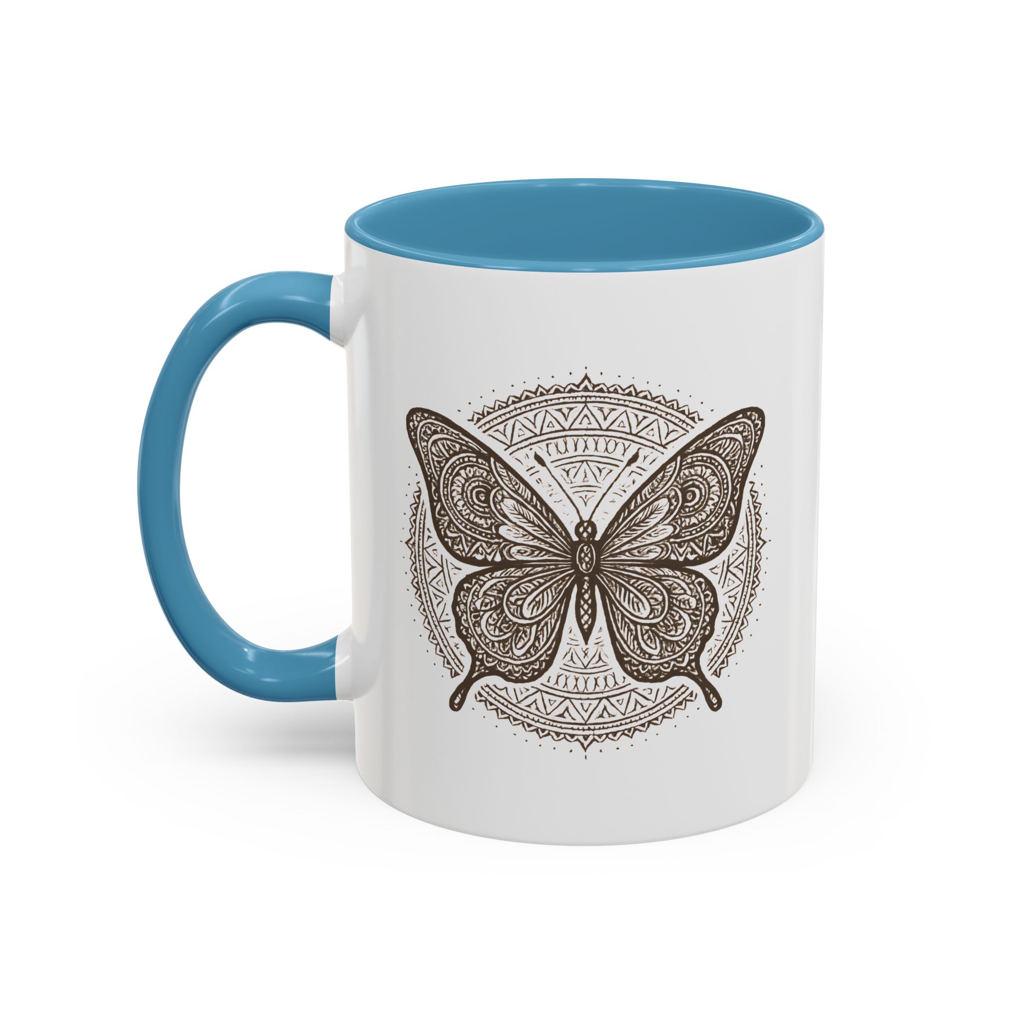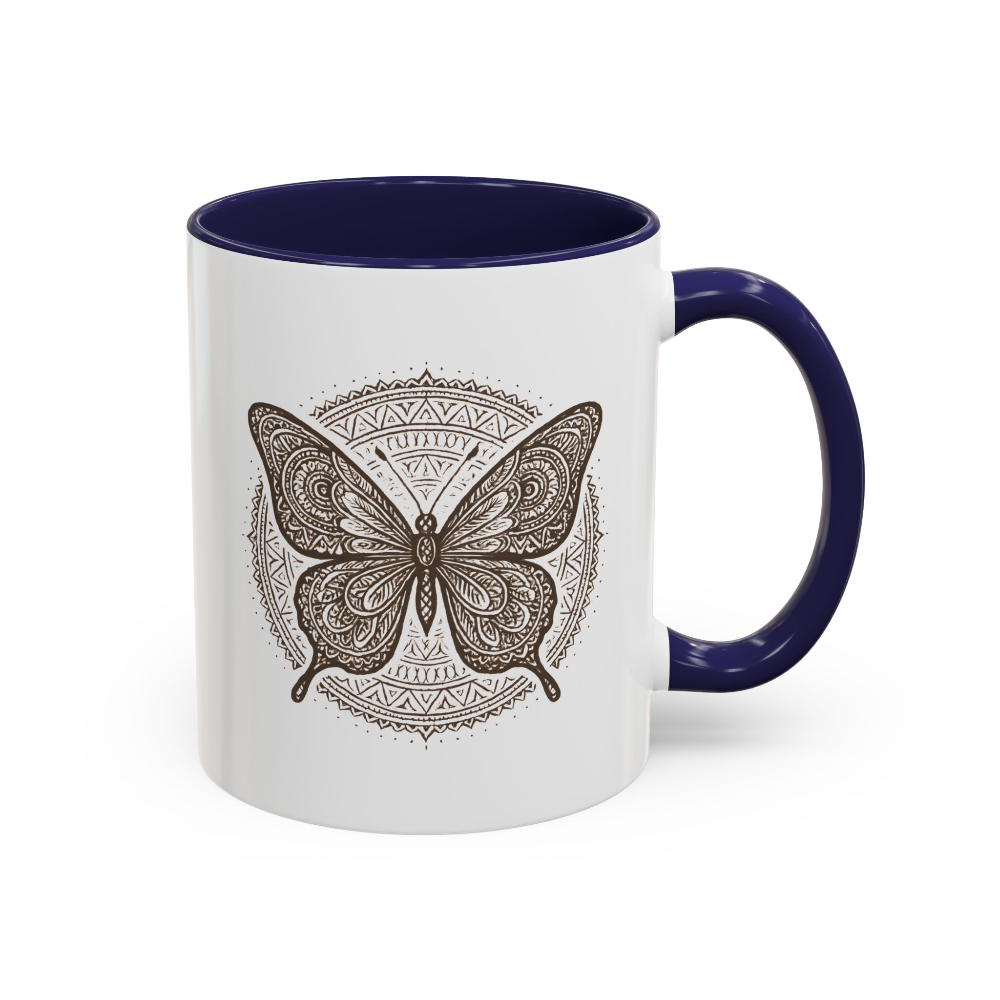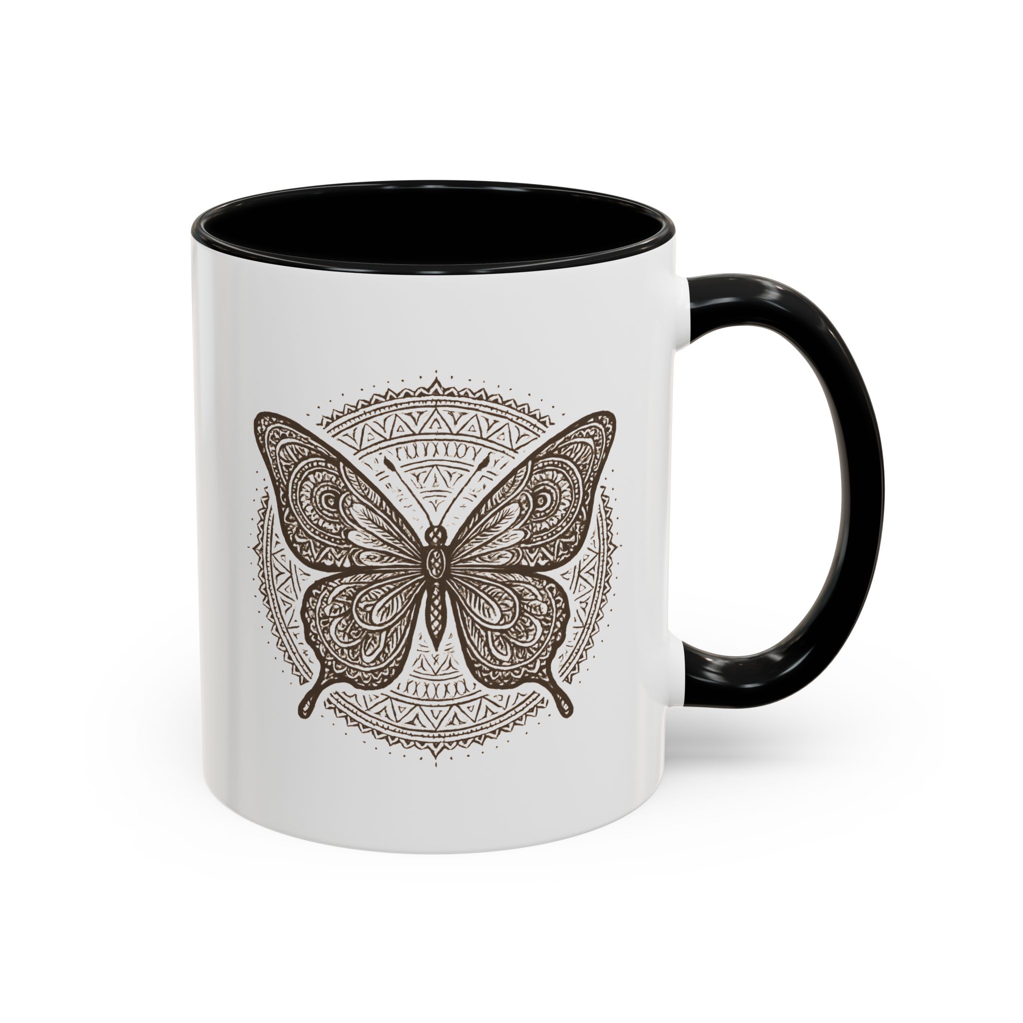 Bring balance and beauty to your coffee ritual with this mandala butterfly mug. Featuring an intricately detailed butterfly framed by a circular mandala pattern, this design symbolises transformation, peace, and mindful living — all while adding boho elegance to your mug collection.