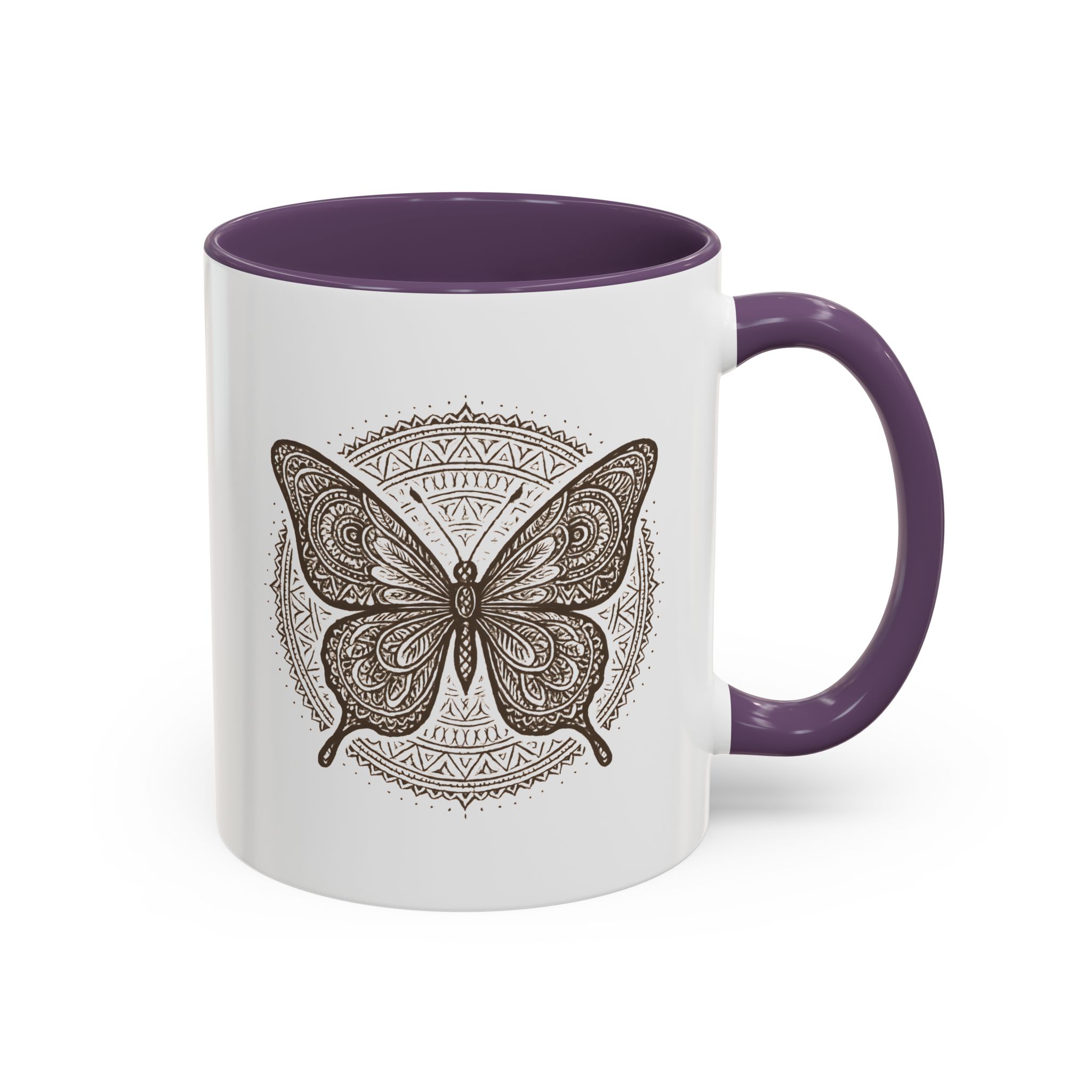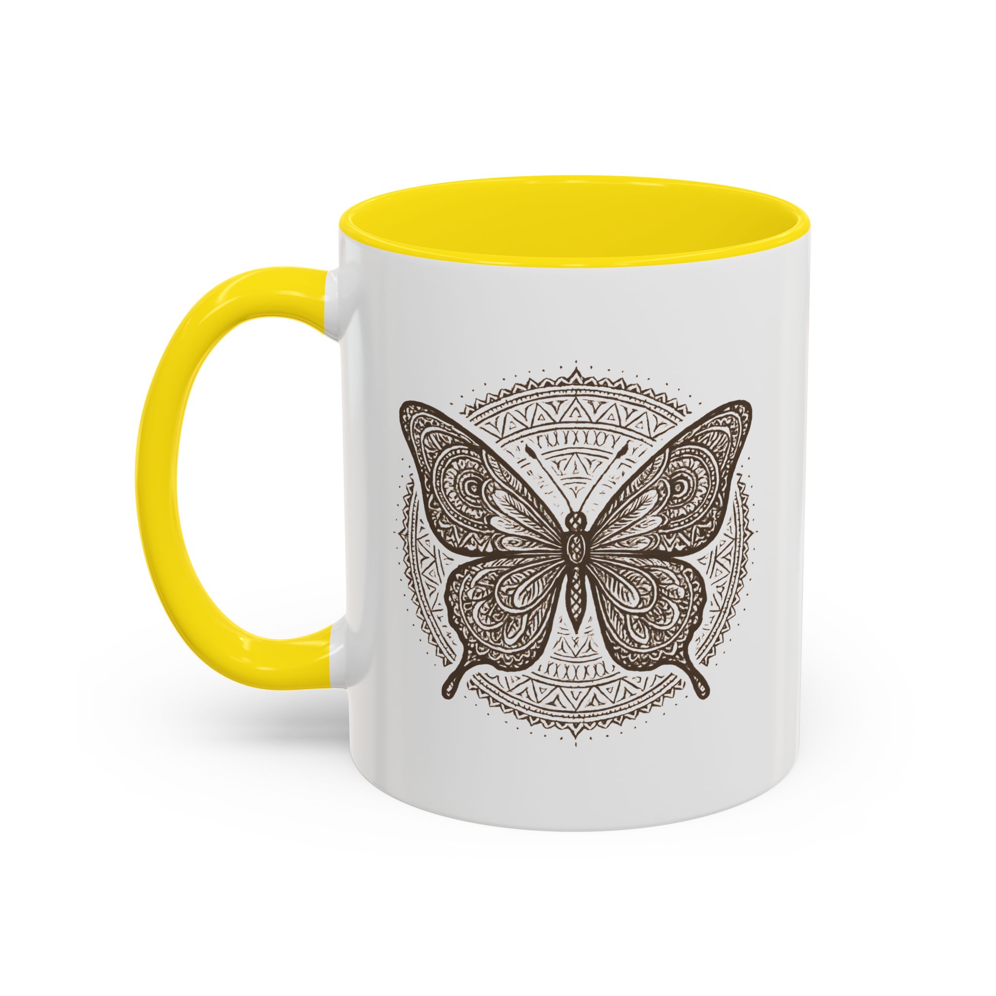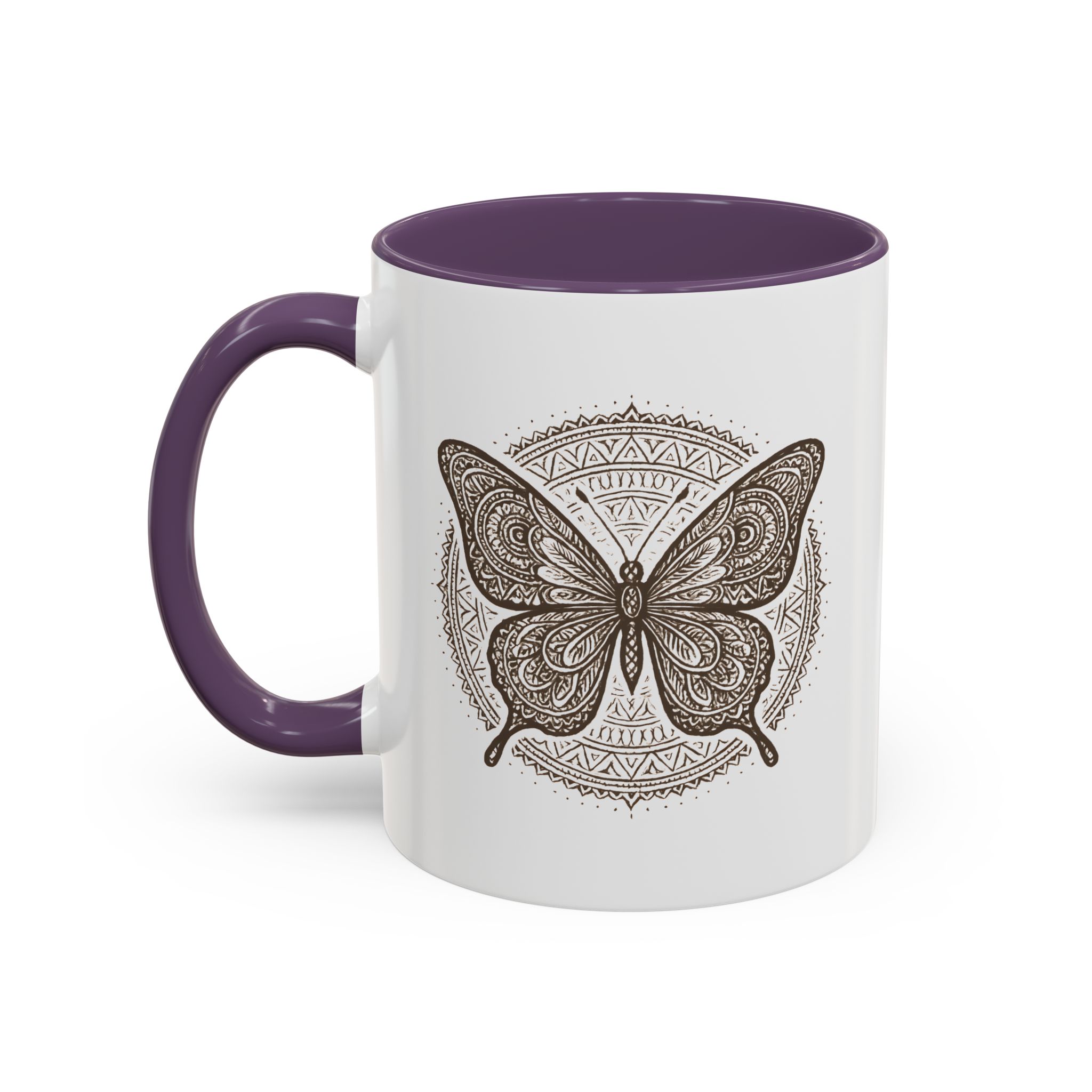 Bring balance and beauty to your coffee ritual with this mandala butterfly mug. Featuring an intricately detailed butterfly framed by a circular mandala pattern, this design symbolises transformation, peace, and mindful living — all while adding boho elegance to your mug collection.