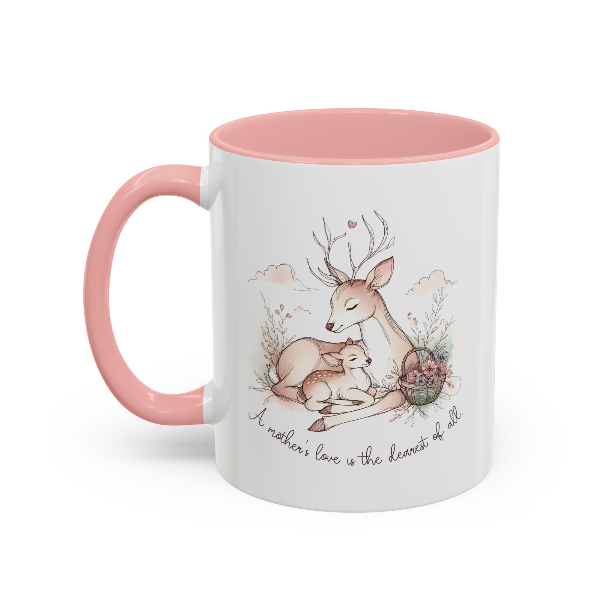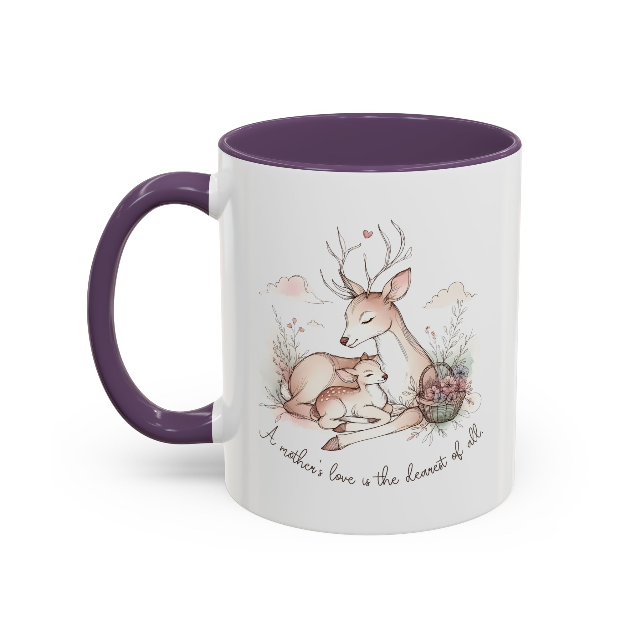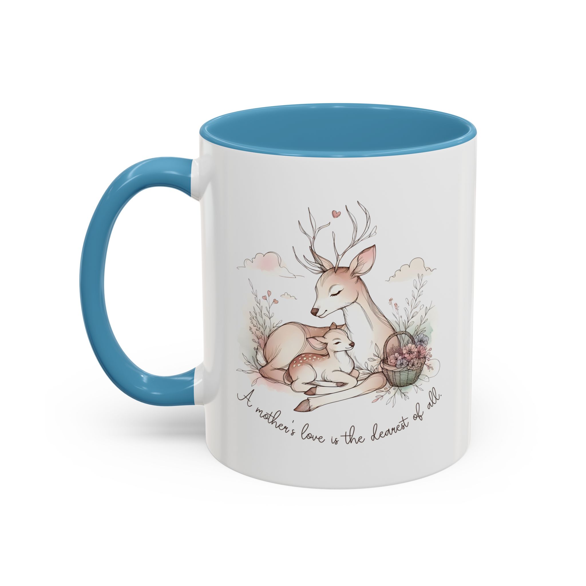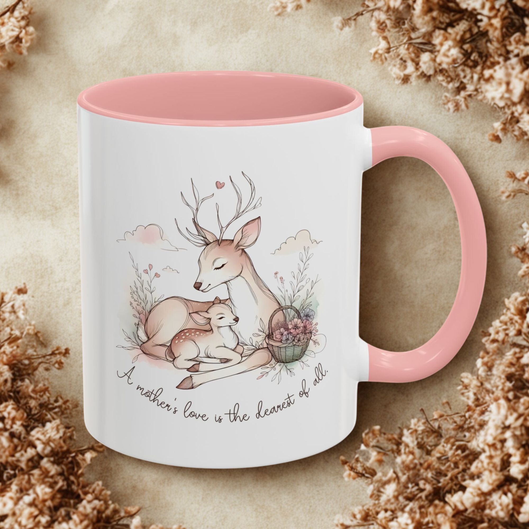 Show your love and appreciation for a mother’s devotion with the Mother and Baby Deer Mug. Adorned with a beautifully illustrated mother deer and her baby, this mug comes with the touching message, “A Mother’s Love is the Dearest of All”. It’s the perfect gift for a special mom or a beautiful addition to your own collection.