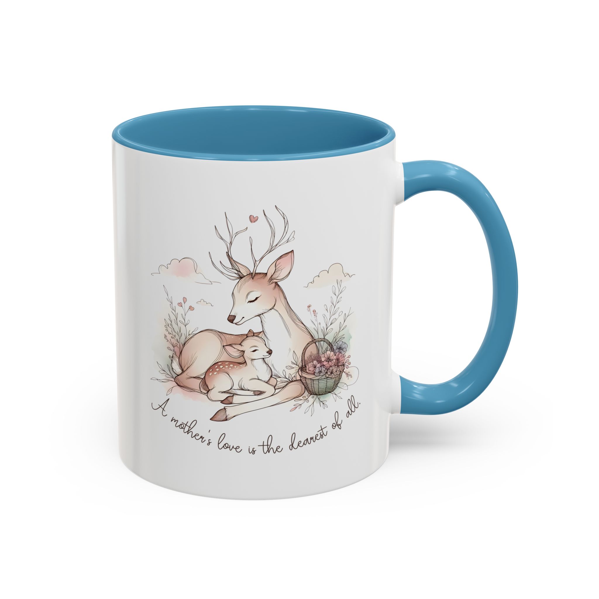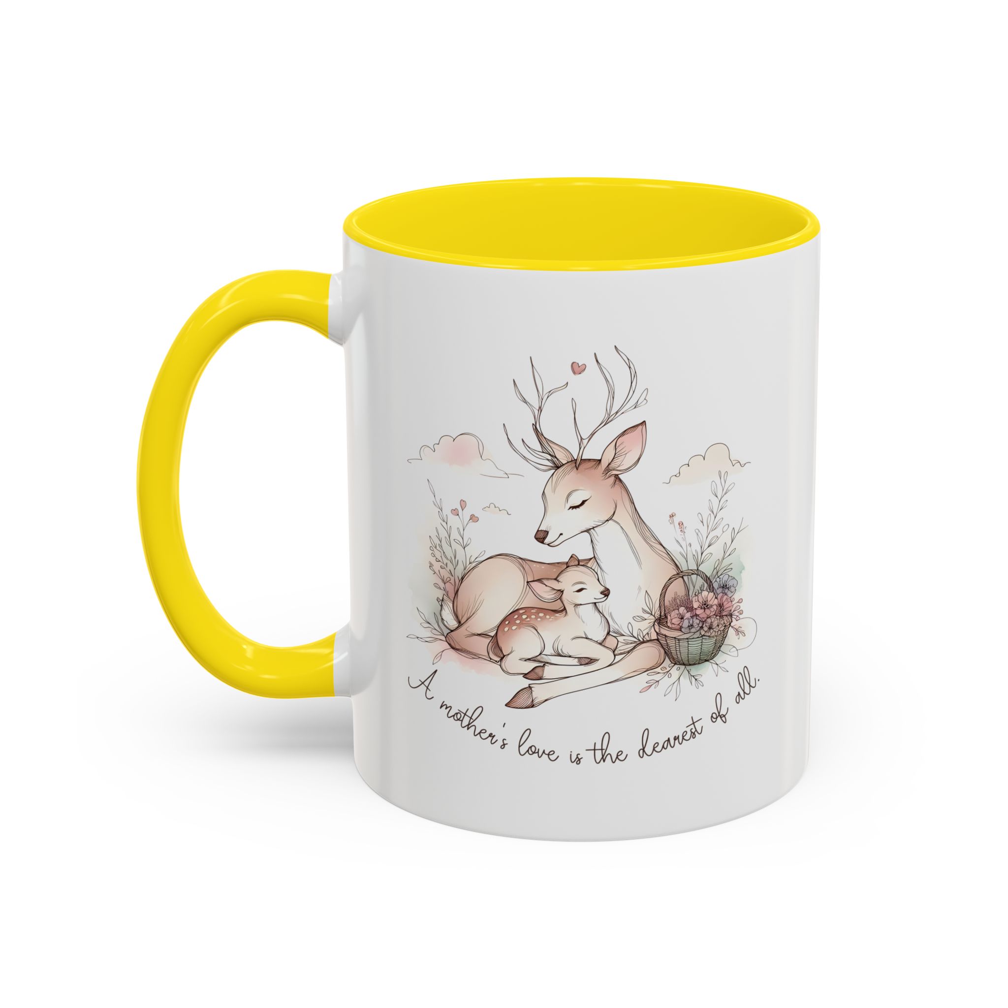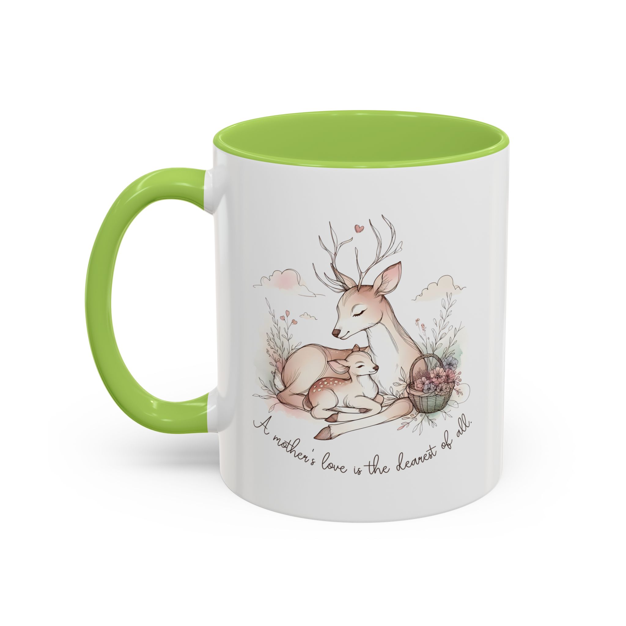 Show your love and appreciation for a mother’s devotion with the Mother and Baby Deer Mug. Adorned with a beautifully illustrated mother deer and her baby, this mug comes with the touching message, “A Mother’s Love is the Dearest of All”. It’s the perfect gift for a special mom or a beautiful addition to your own collection.