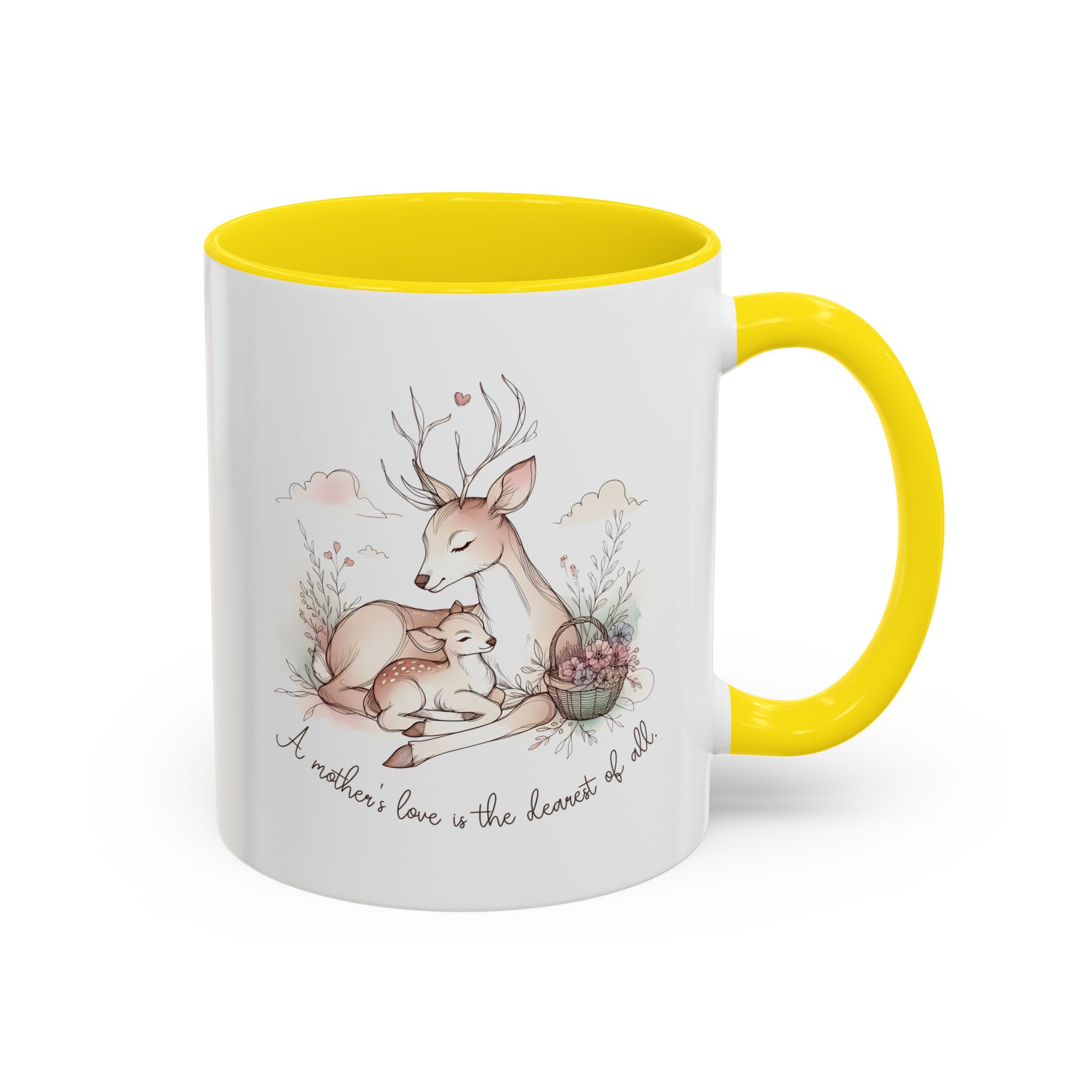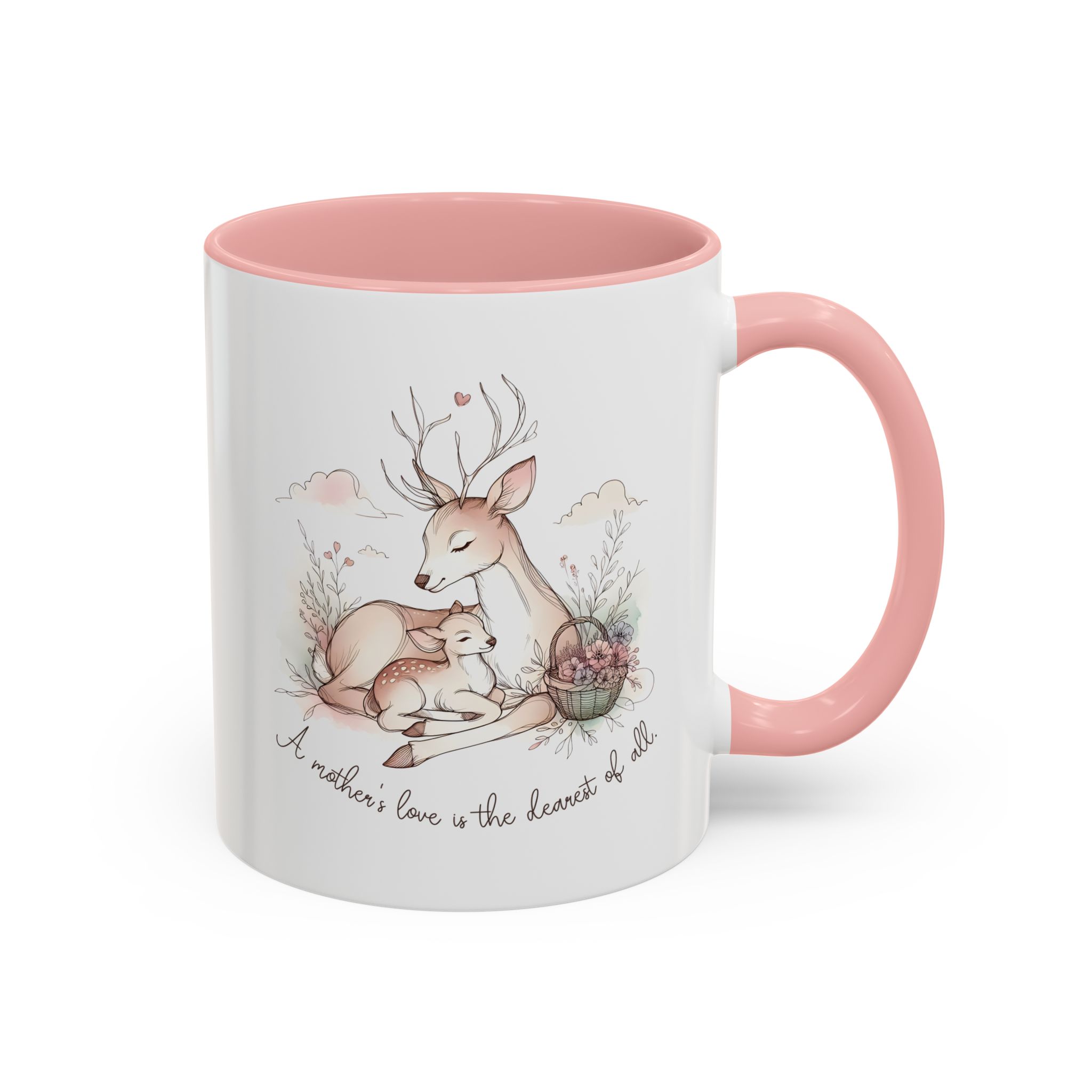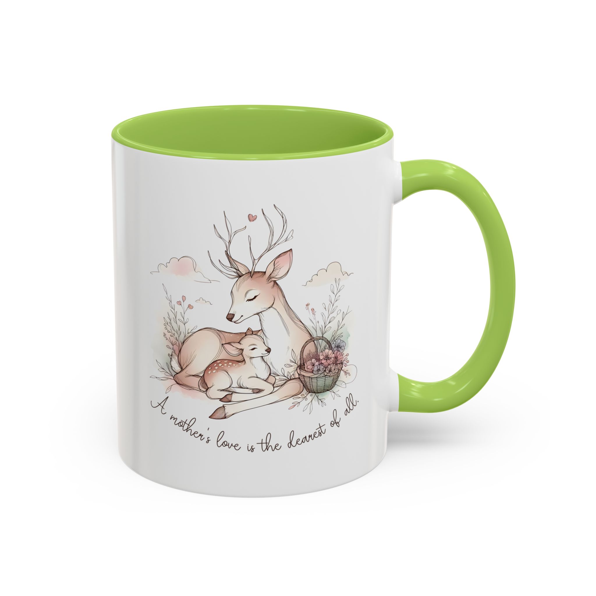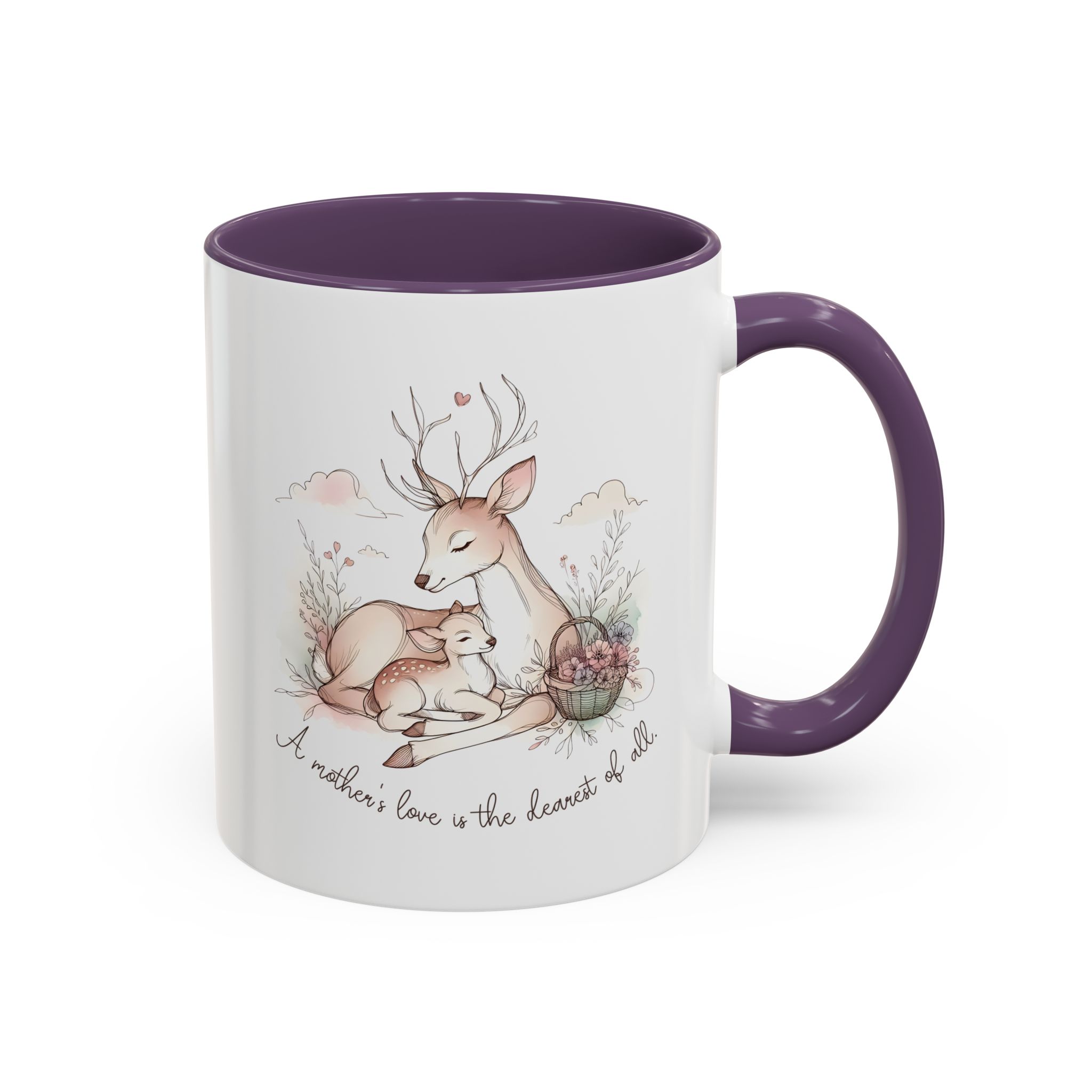 Show your love and appreciation for a mother’s devotion with the Mother and Baby Deer Mug. Adorned with a beautifully illustrated mother deer and her baby, this mug comes with the touching message, “A Mother’s Love is the Dearest of All”. It’s the perfect gift for a special mom or a beautiful addition to your own collection.