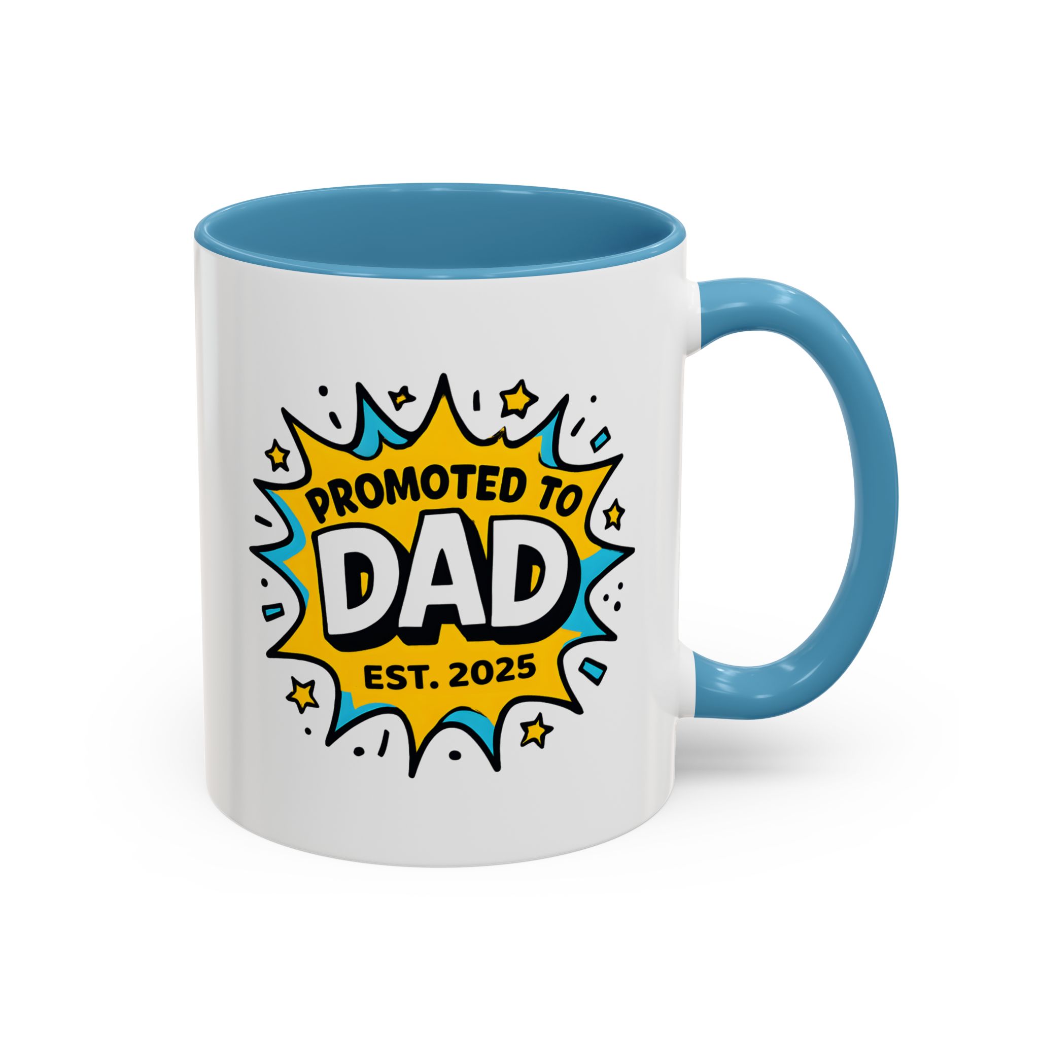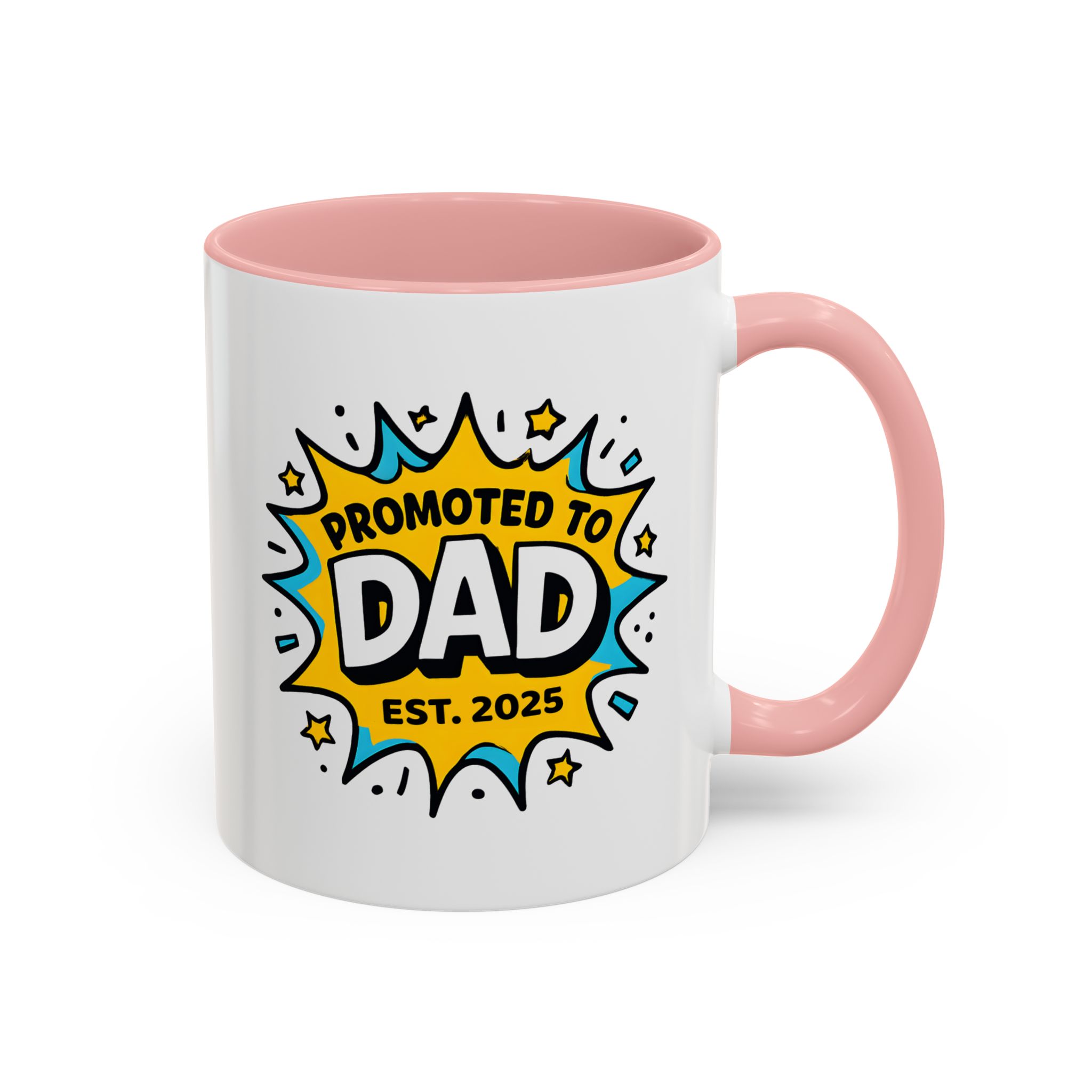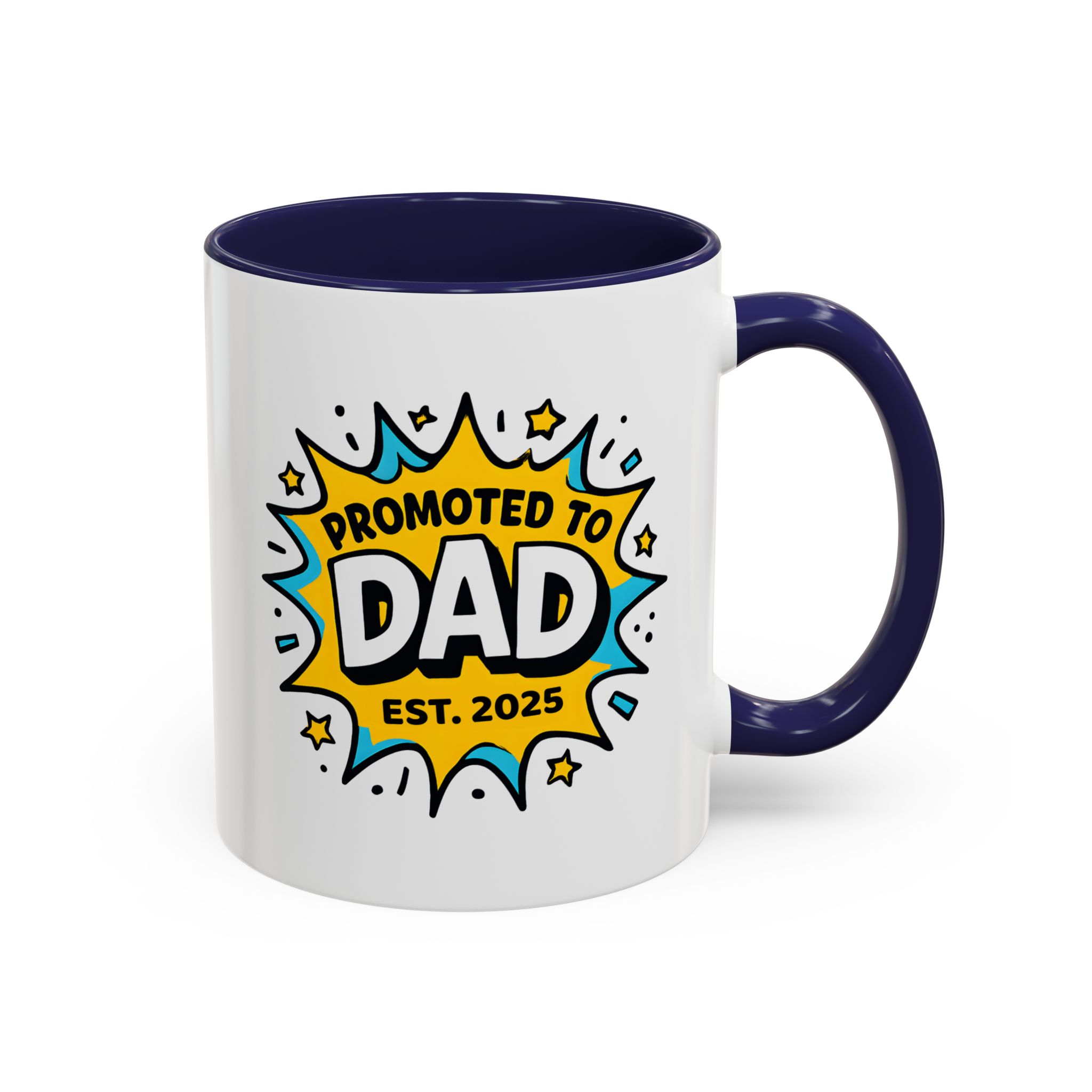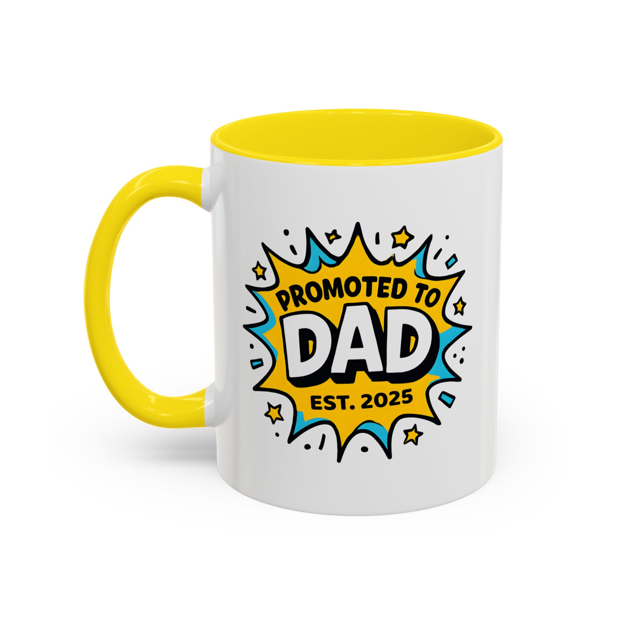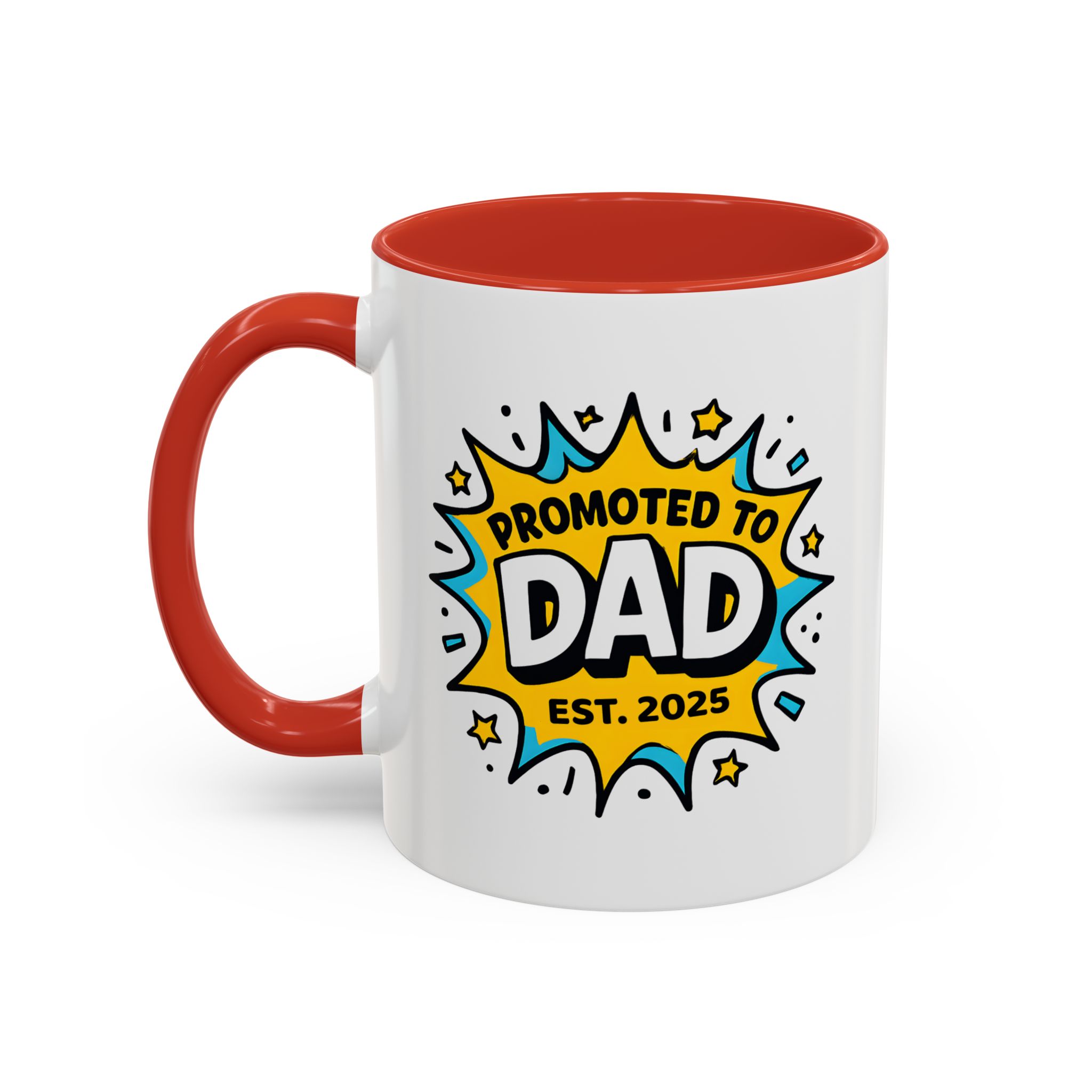Welcome fatherhood with this New Dad Promoted to Dad Mug! Featuring a bold comic-style design with Promoted to Dad – Est. [Year], this customisable mug is a fun and meaningful keepsake for new and expecting dads. The year can be personalised to match the baby’s arrival, making it a thoughtful gift for baby showers, pregnancy reveals, or Father’s Day.