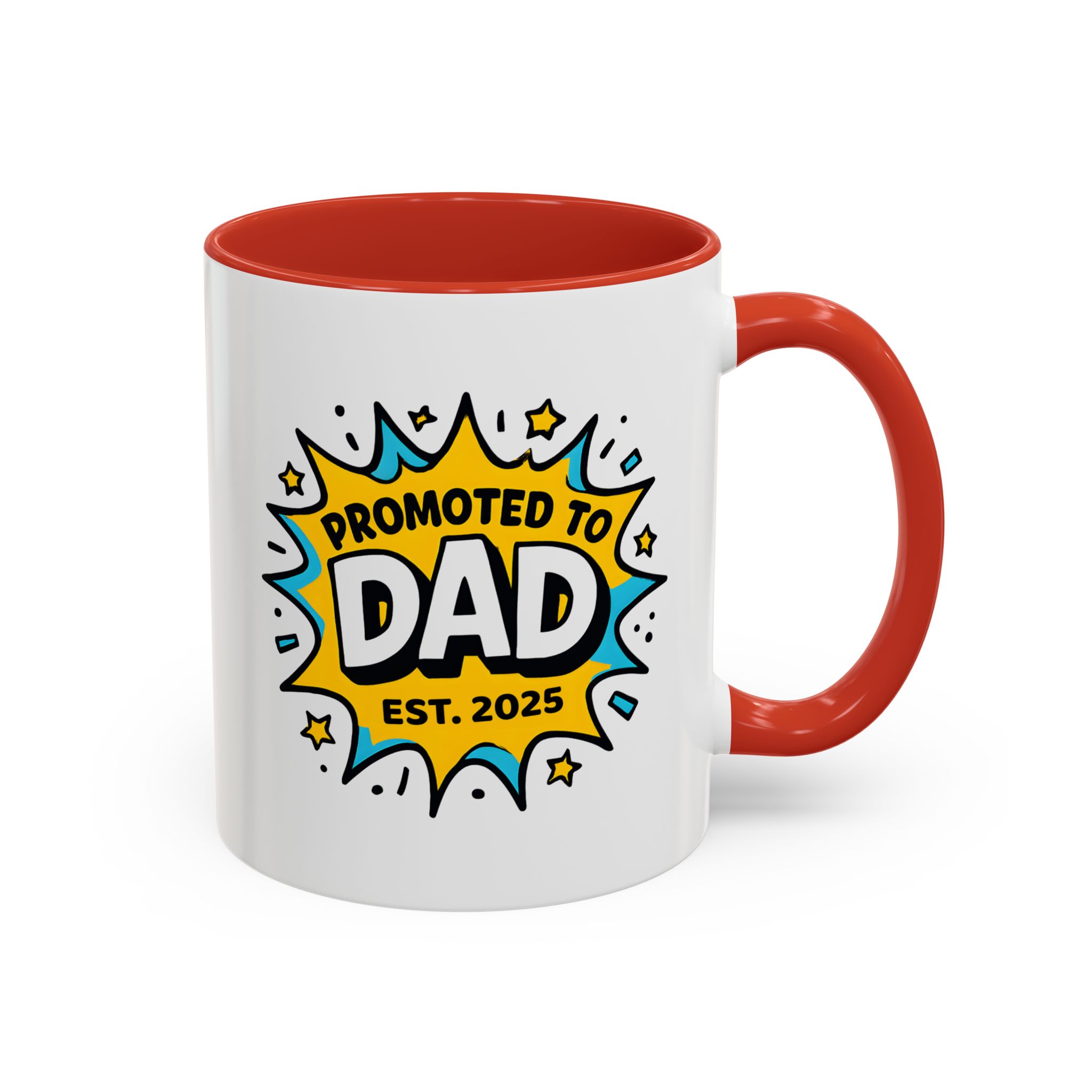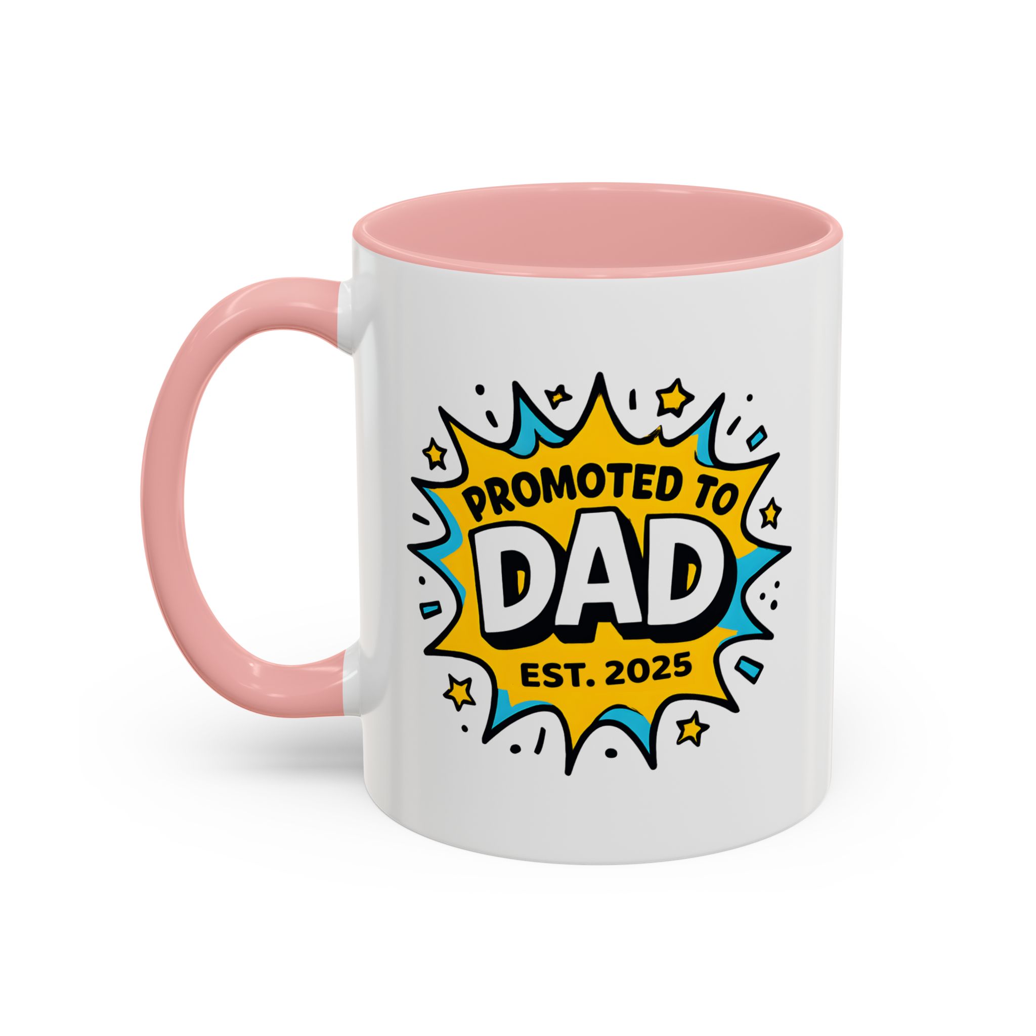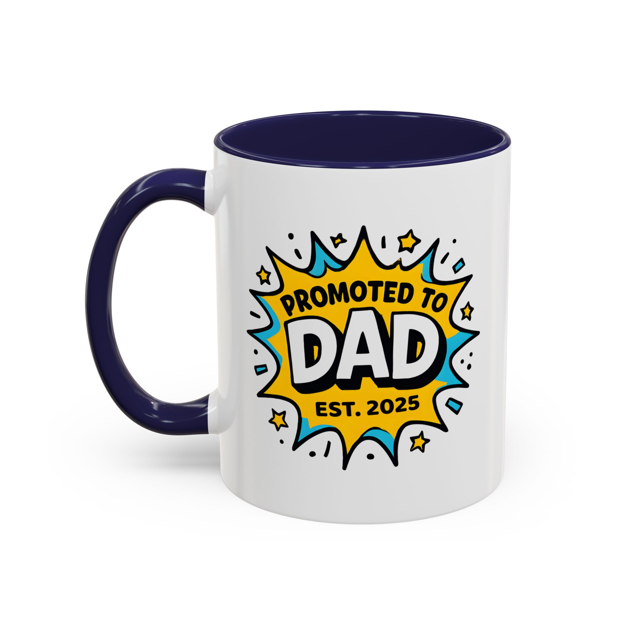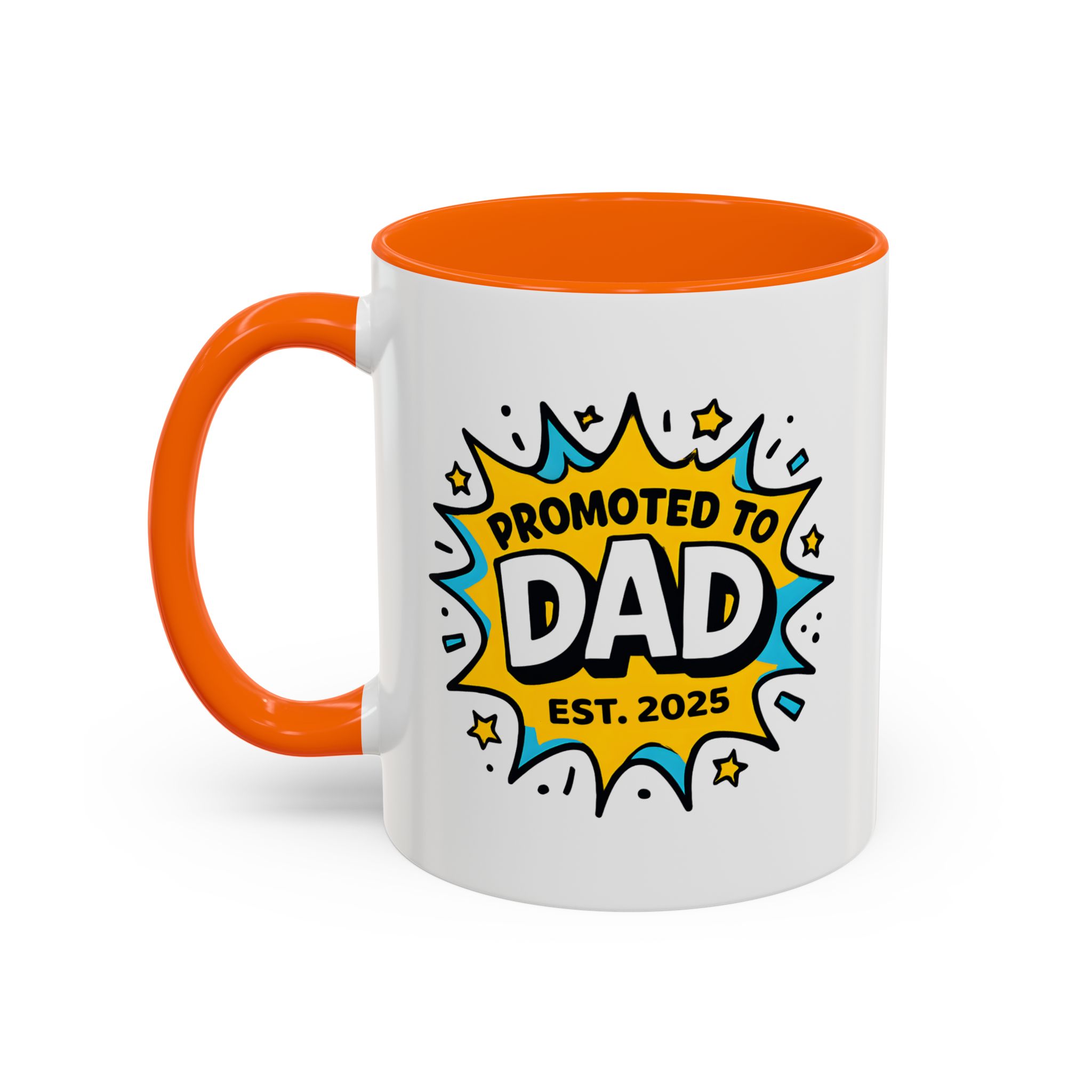 Welcome fatherhood with this New Dad Promoted to Dad Mug! Featuring a bold comic-style design with Promoted to Dad – Est. [Year], this customisable mug is a fun and meaningful keepsake for new and expecting dads. The year can be personalised to match the baby’s arrival, making it a thoughtful gift for baby showers, pregnancy reveals, or Father’s Day.