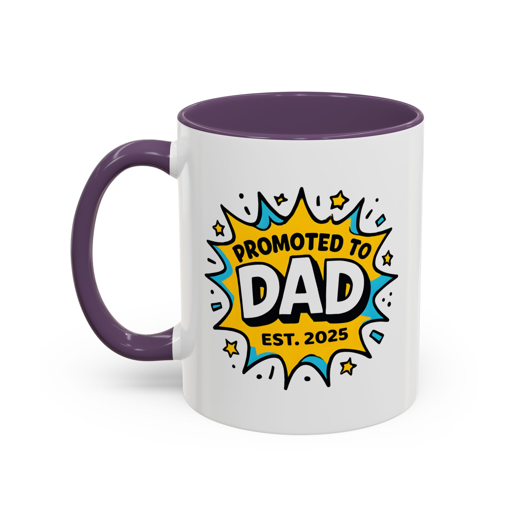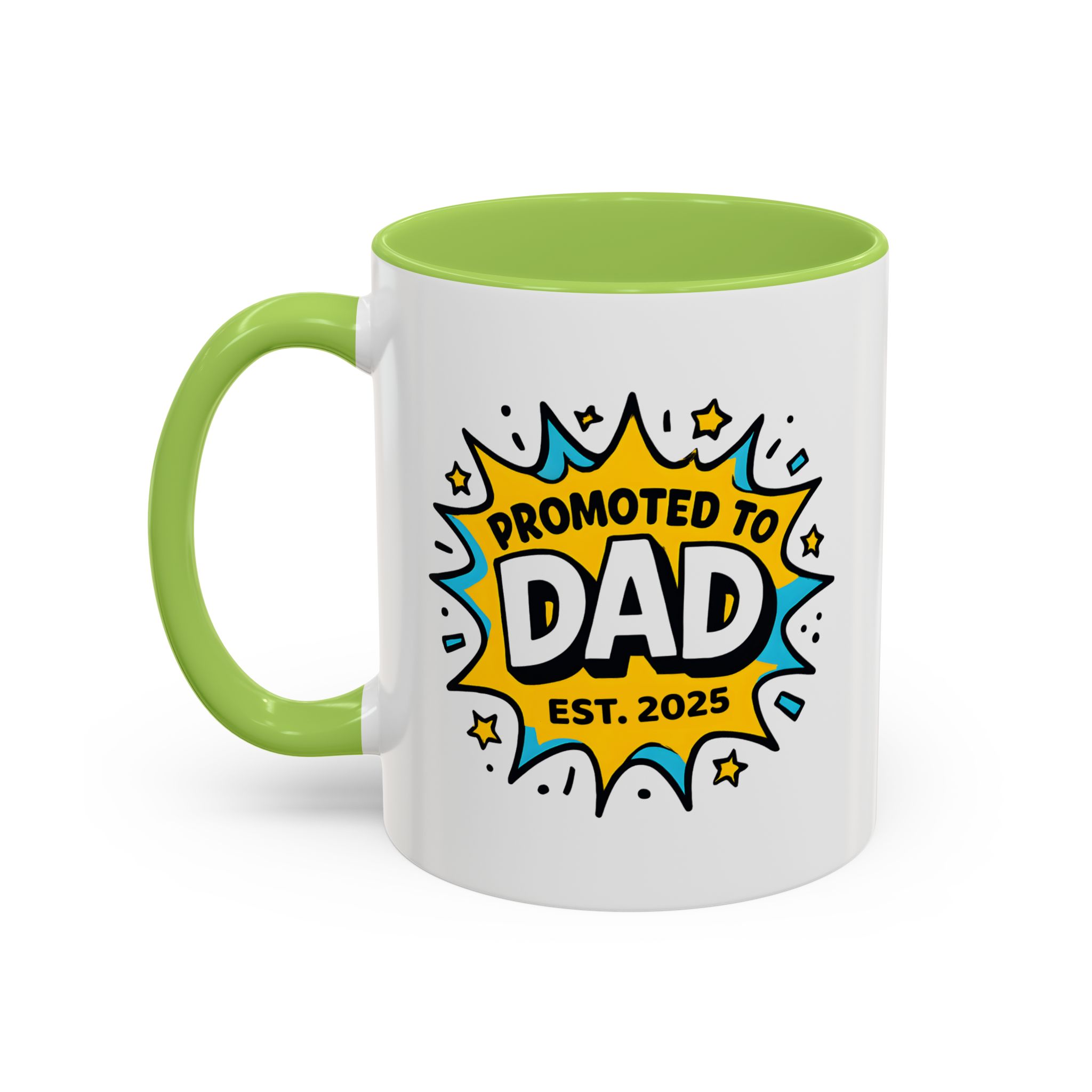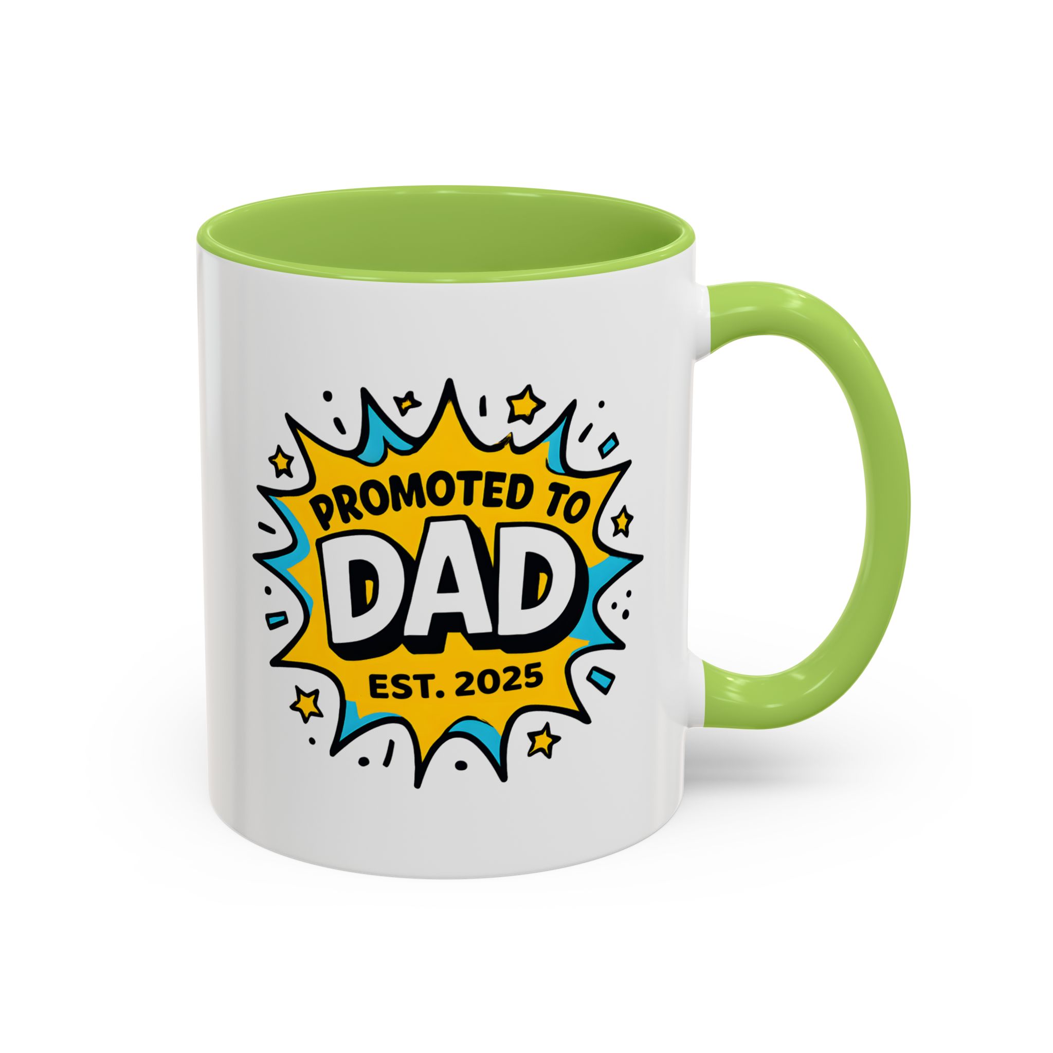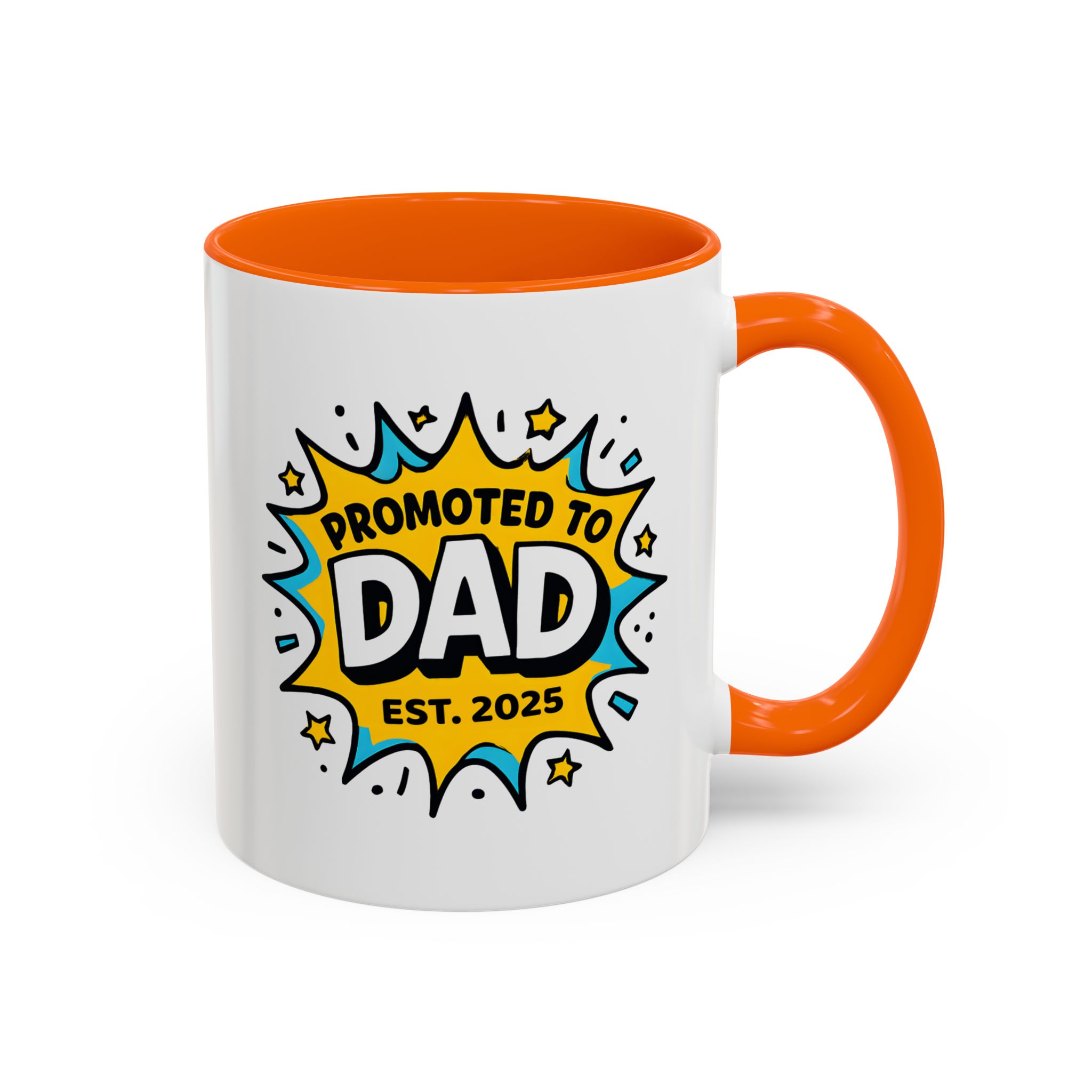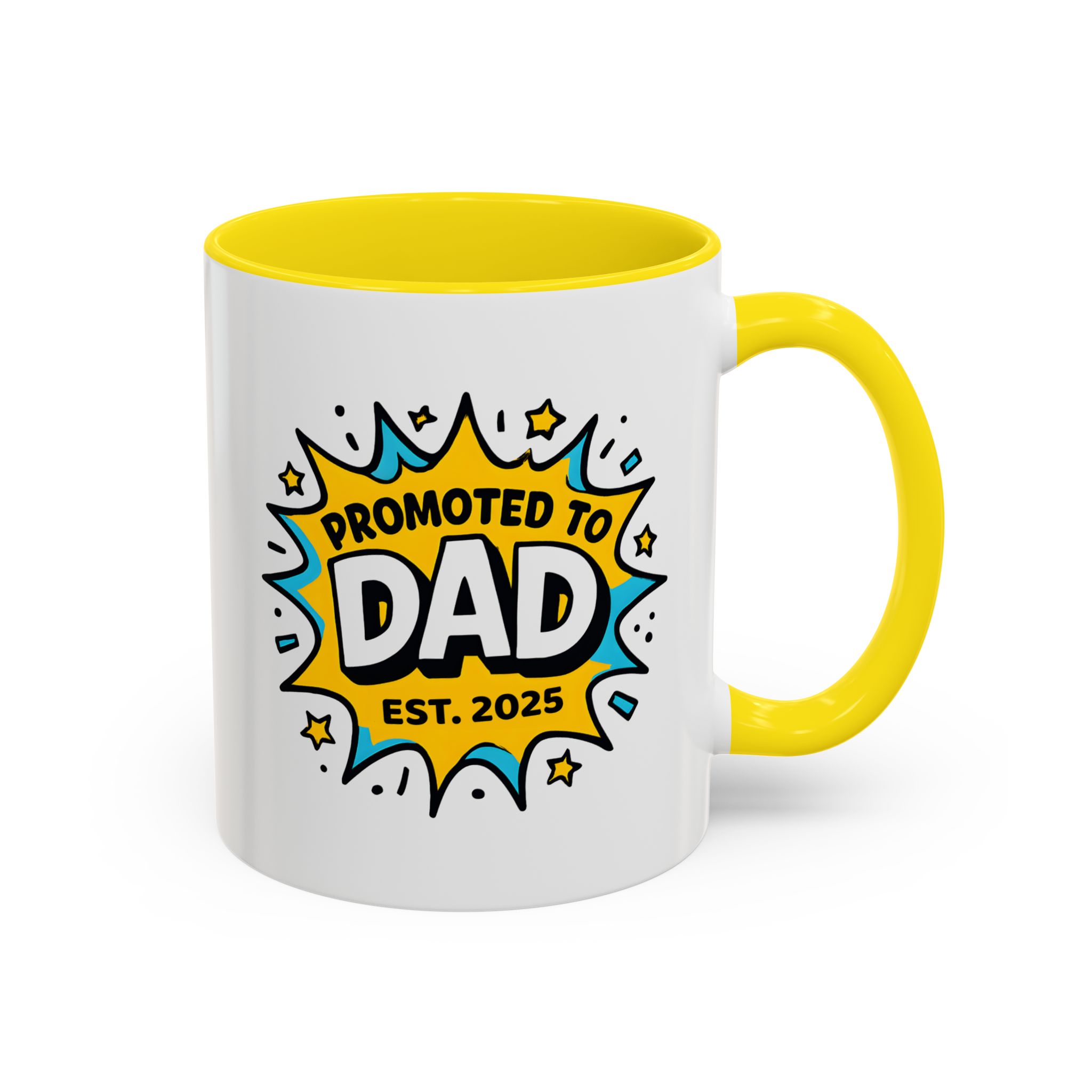 Welcome fatherhood with this New Dad Promoted to Dad Mug! Featuring a bold comic-style design with Promoted to Dad – Est. [Year], this customisable mug is a fun and meaningful keepsake for new and expecting dads. The year can be personalised to match the baby’s arrival, making it a thoughtful gift for baby showers, pregnancy reveals, or Father’s Day.