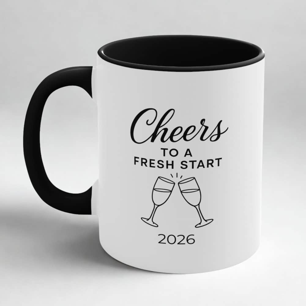 Celebrate new beginnings with this new year mug 2026, featuring elegant typography and champagne glasses. A stylish 11oz ceramic mug perfect for New Year gifting, office coffee, and daily motivation.