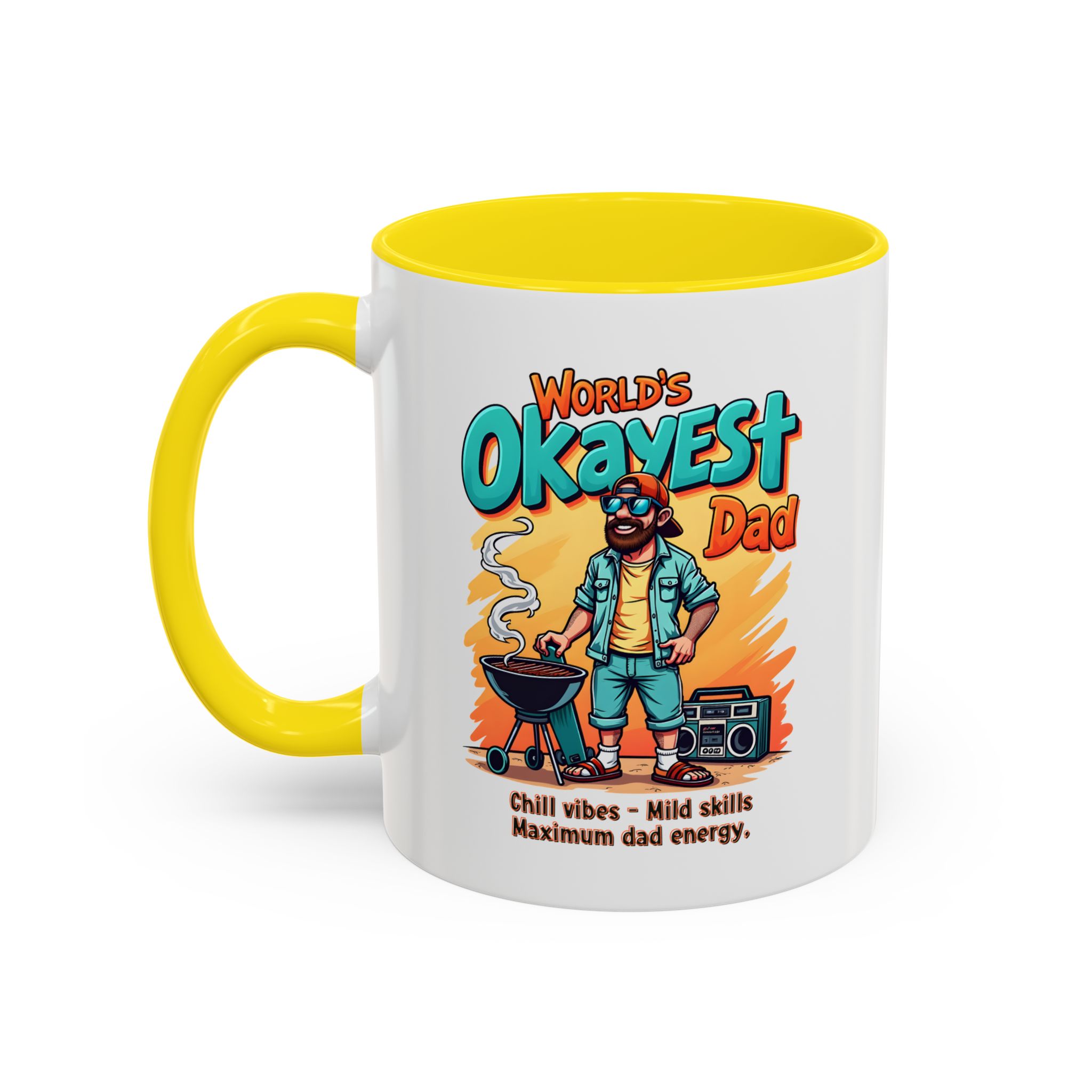Gift this “World’s Okayest Dad” chill vibes mug. This 11oz ceramic mug is microwave- and dishwasher-safe — perfect for UK gifting.