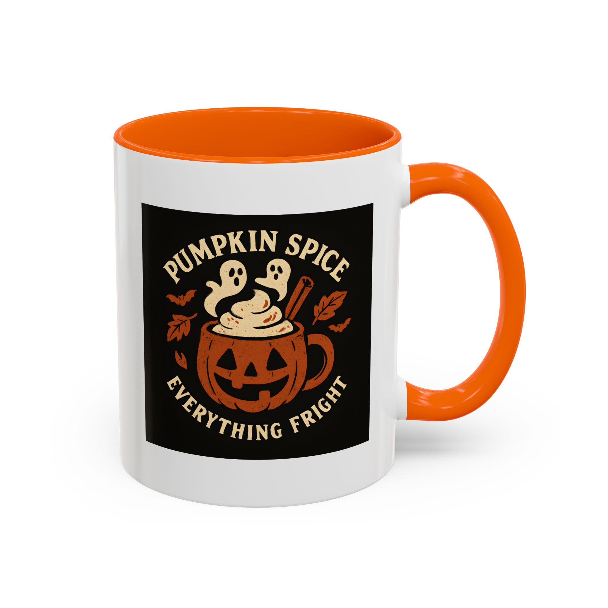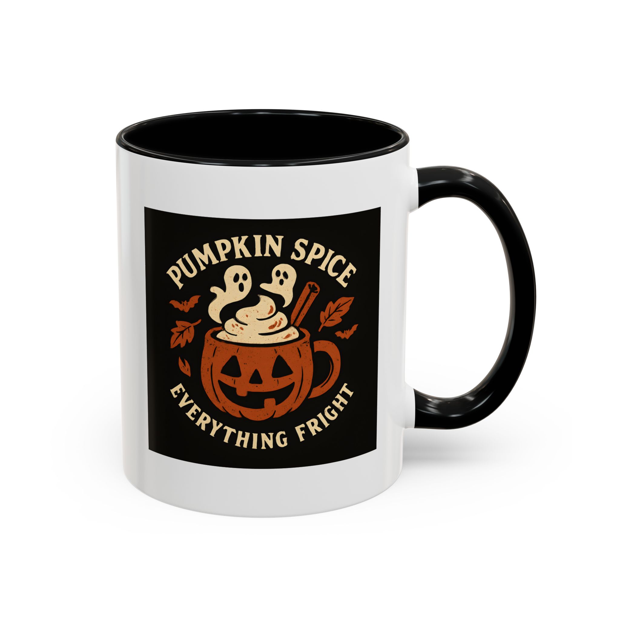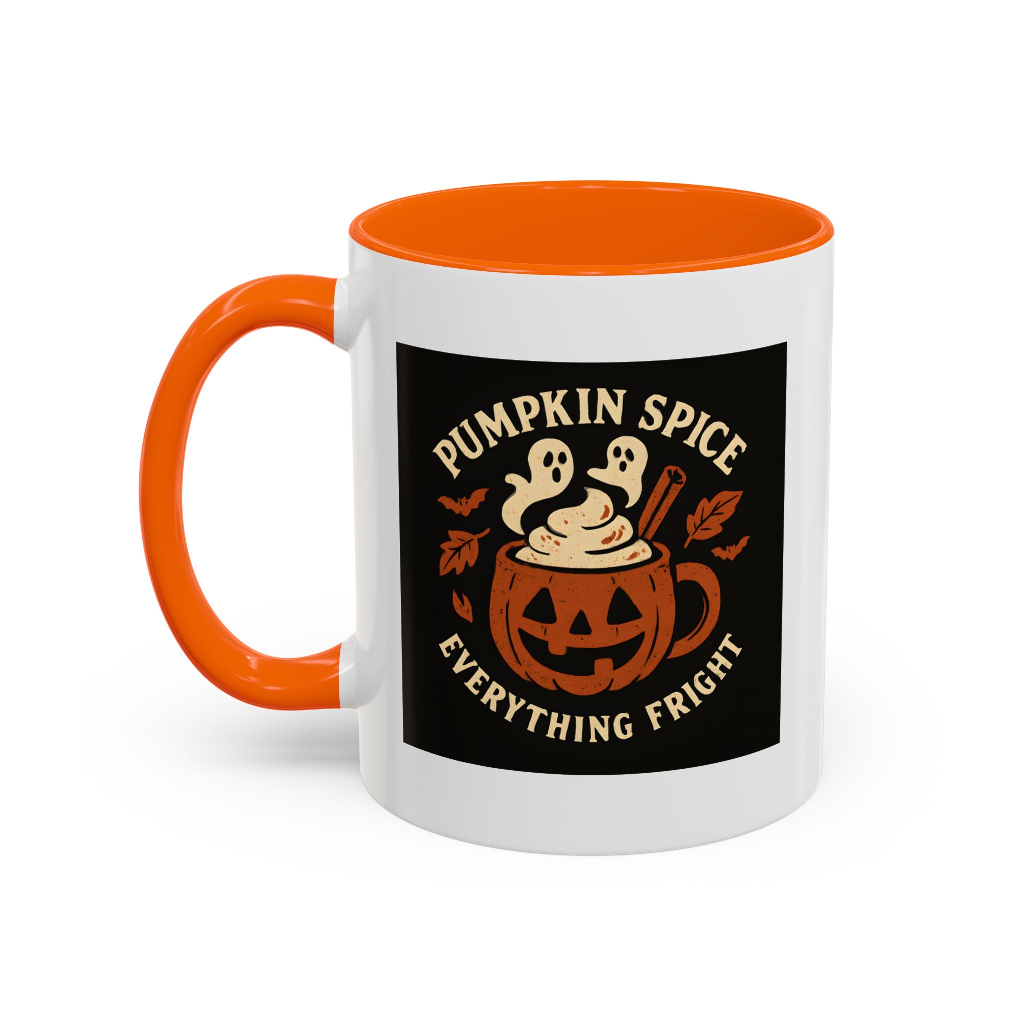 Celebrate spooky season with a twist of flavor using this Pumpkin Spice Halloween Mug. Featuring a jack-o’-lantern mug filled with pumpkin spice latte topped with ghostly whipped cream, cinnamon, bats, and fall leaves, this design captures everything fright and delightful about autumn. Perfect for Halloween parties, cozy nights in, or as a fun seasonal gift.