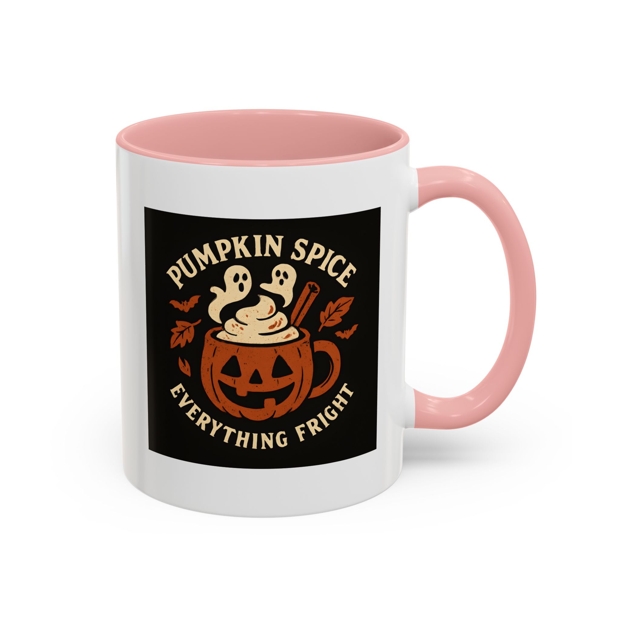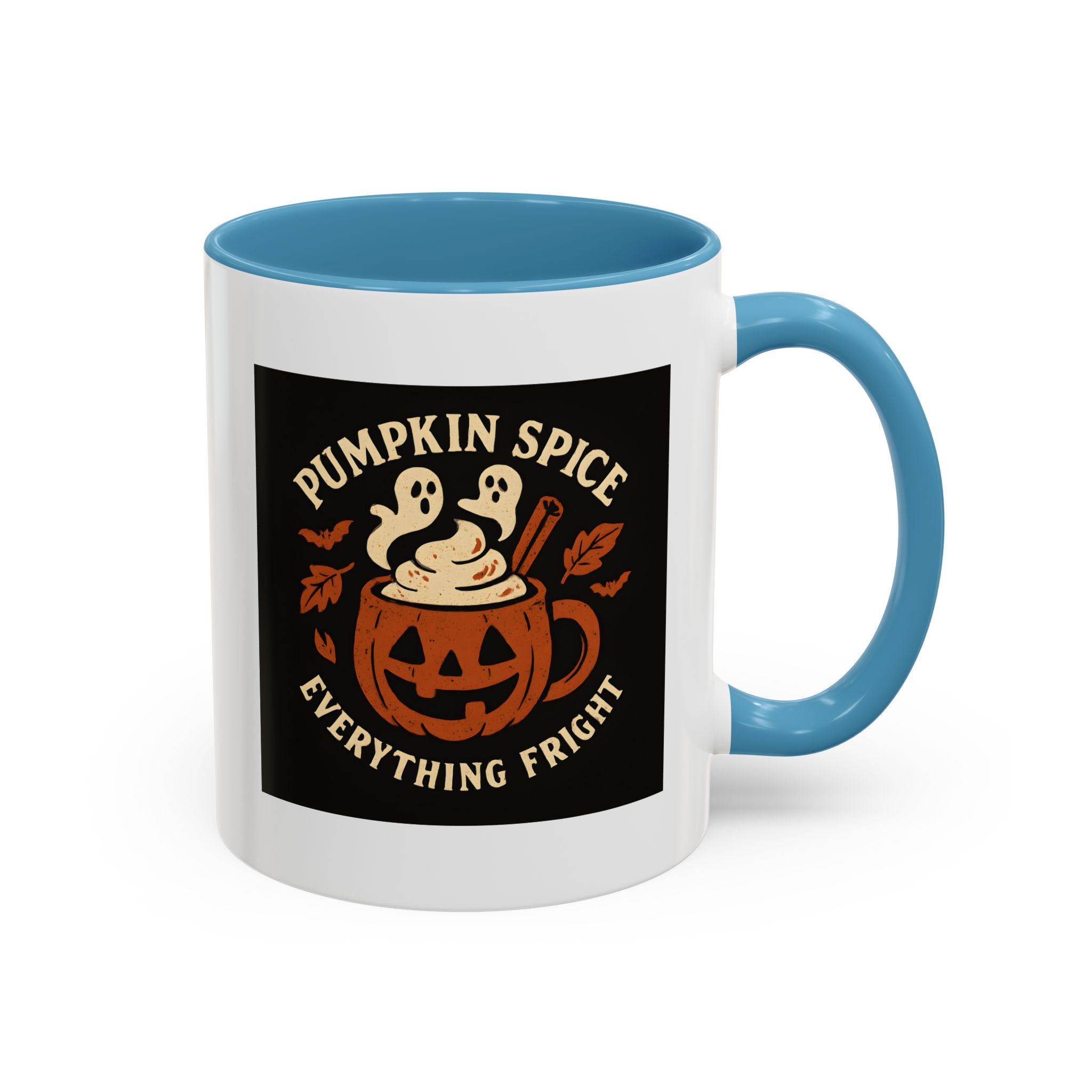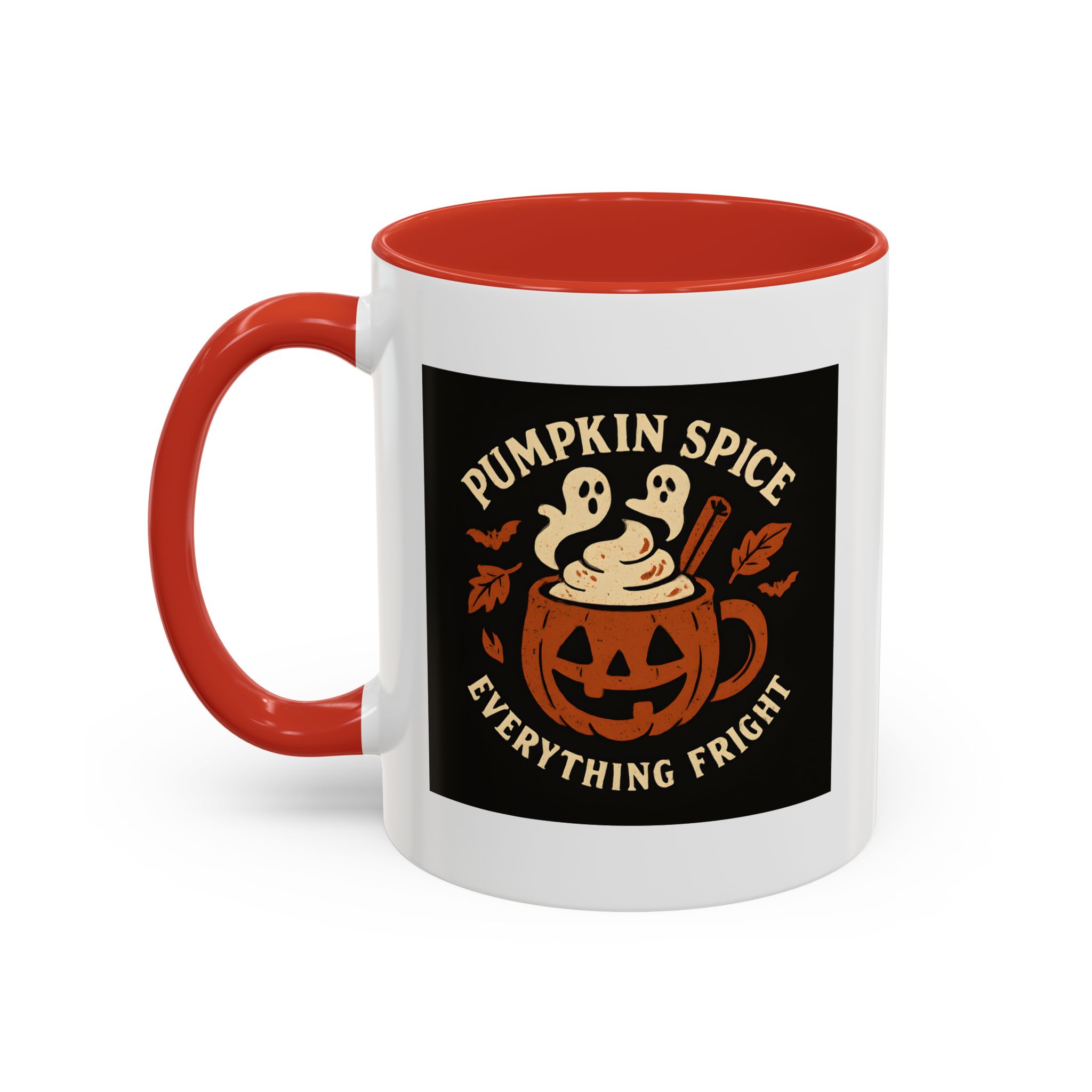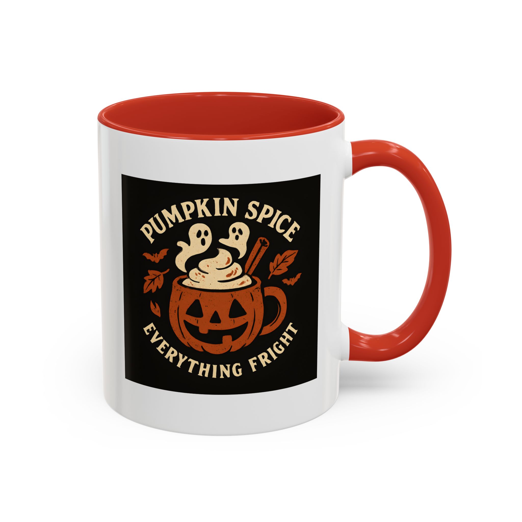 Celebrate spooky season with a twist of flavor using this Pumpkin Spice Halloween Mug. Featuring a jack-o’-lantern mug filled with pumpkin spice latte topped with ghostly whipped cream, cinnamon, bats, and fall leaves, this design captures everything fright and delightful about autumn. Perfect for Halloween parties, cozy nights in, or as a fun seasonal gift.