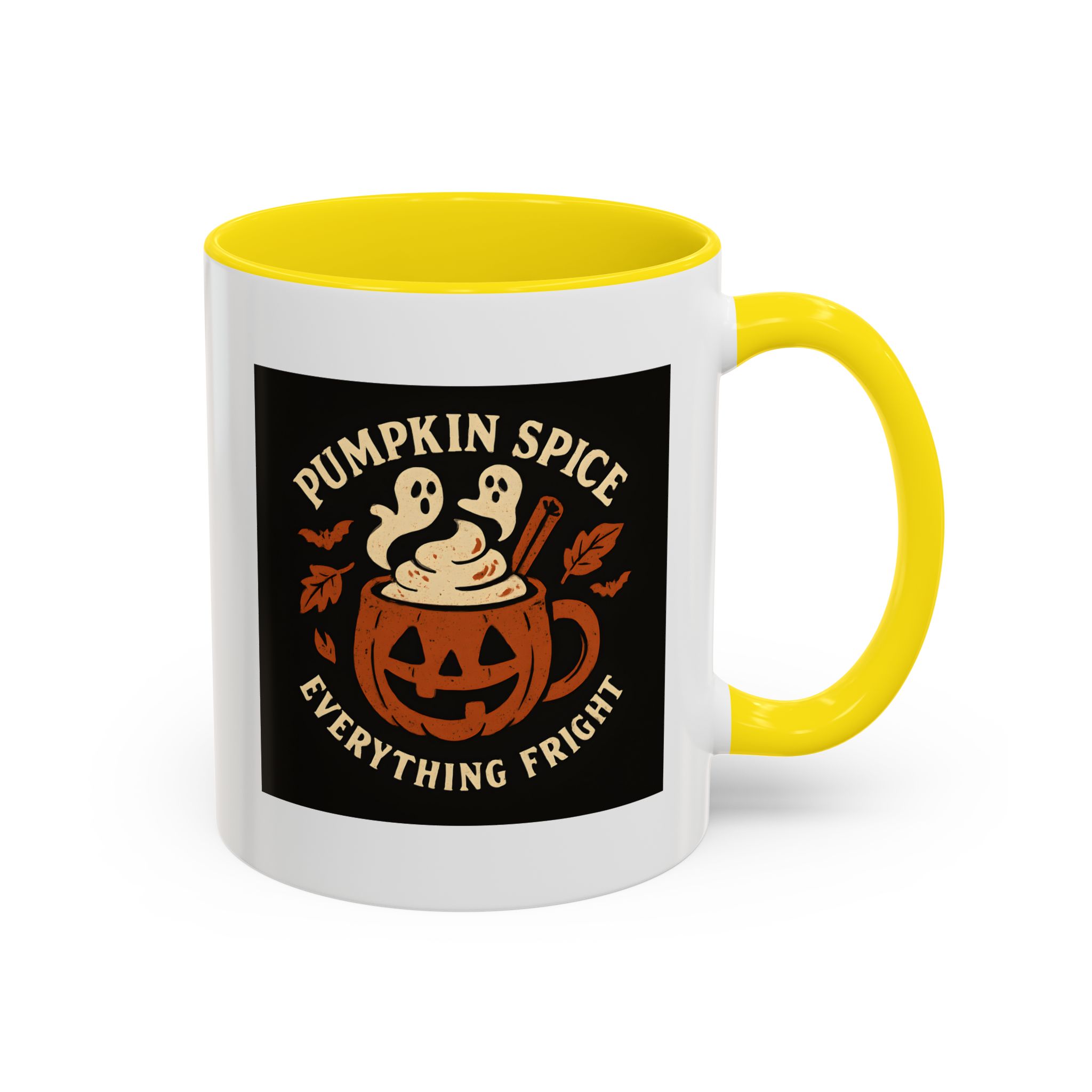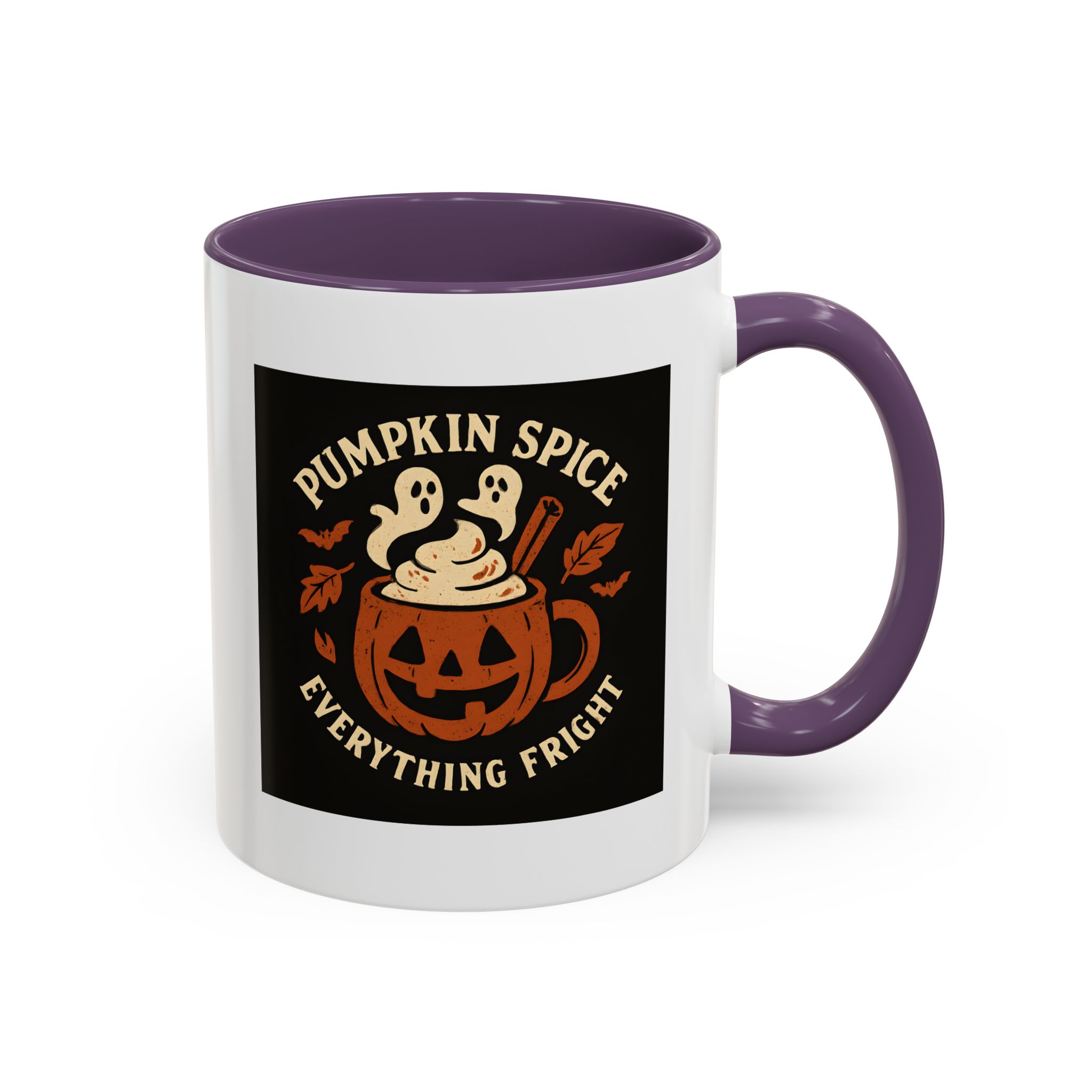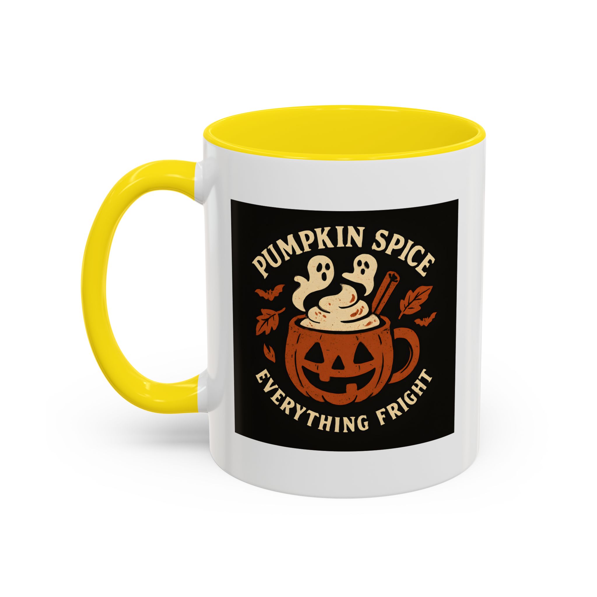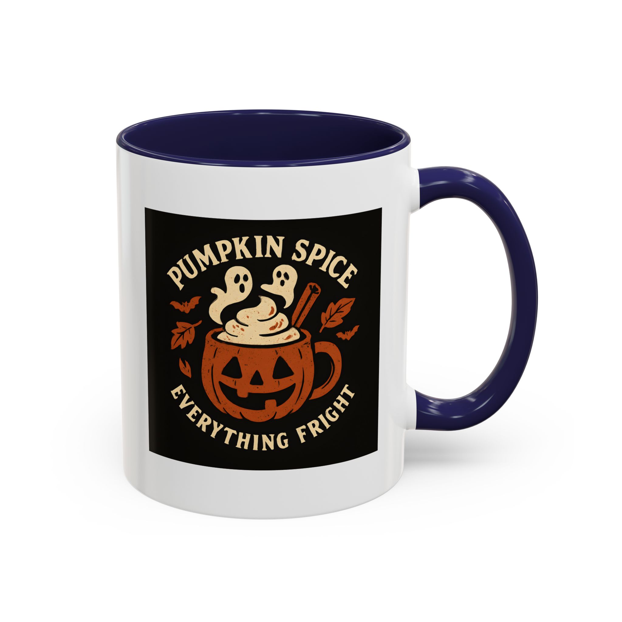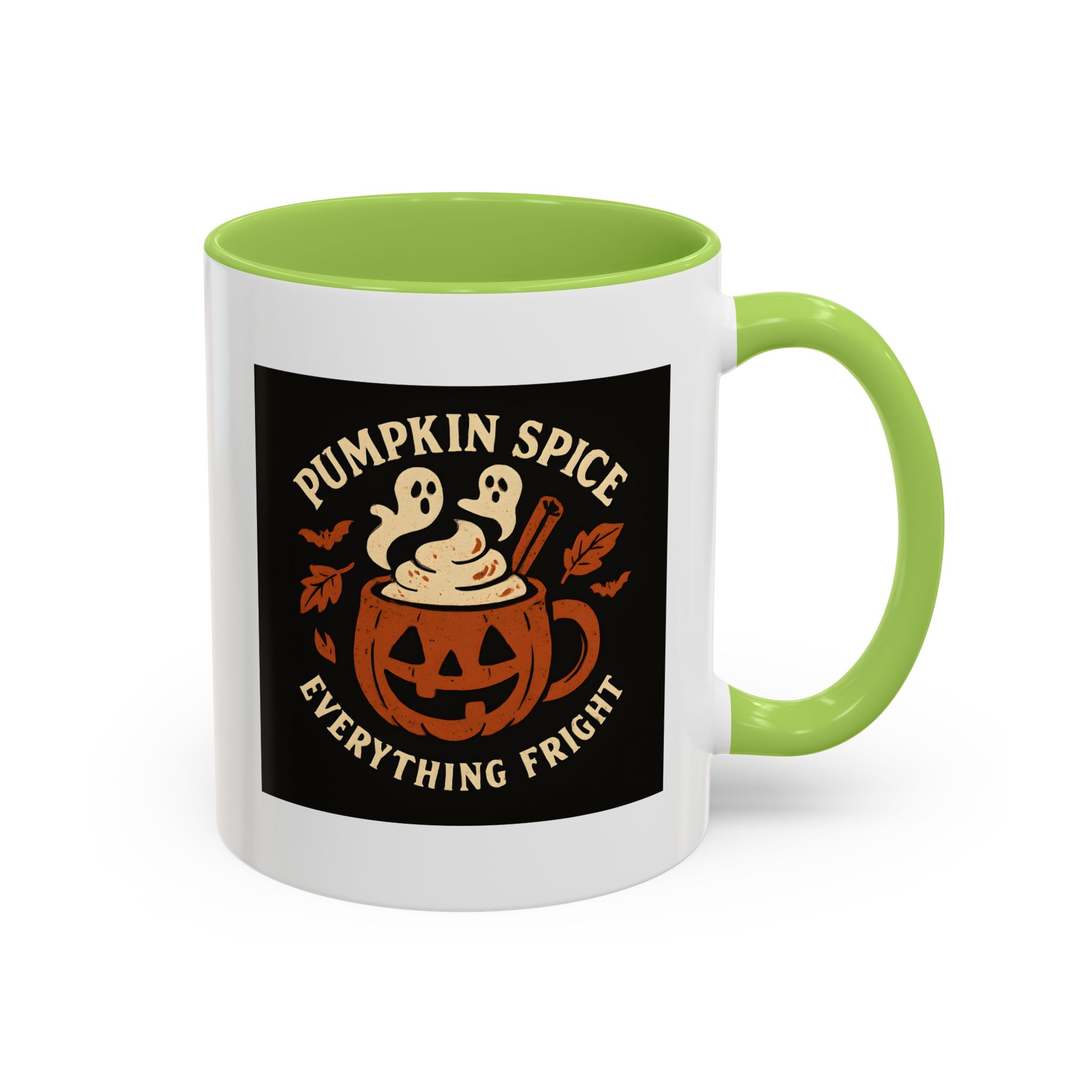Pumpkin Spice Halloween Mug with ghostly latte art and jack-o’-lantern design. A funny, spooky coffee cup perfect for Halloween and pumpkin spice lovers.