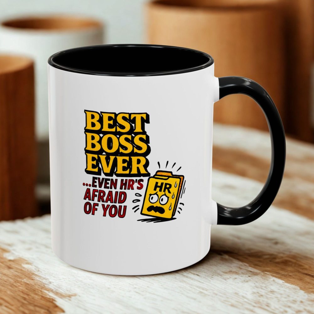 This scary boss mug says “Best Boss Ever… Even HR’s Afraid of You” with a funny cartoon graphic. A bold and hilarious gift for powerful office leaders.