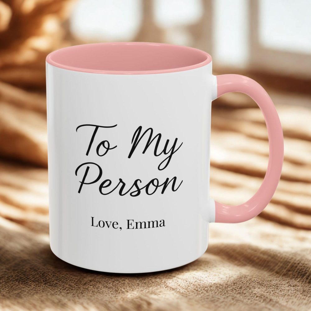 Send a heartfelt message with this personalised to my person personalised mug. A romantic 11oz ceramic coffee mug with custom sign-off, dishwasher and microwave safe — perfect for meaningful gifting.