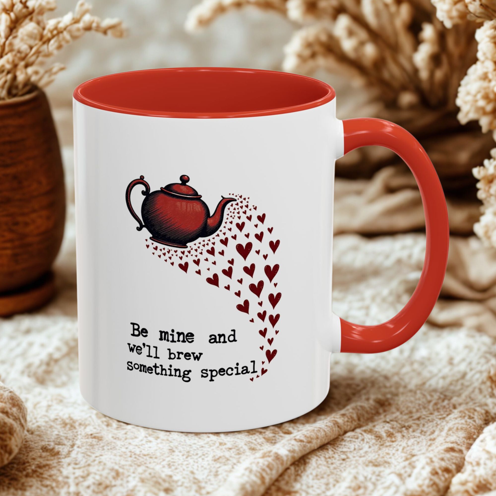 Start your love story over a fresh brew! The “Be Mine and We’ll Brew Something Special” mug features a charming kettle pouring hearts design, making it the perfect Valentine’s Day or anniversary gift for coffee and tea lovers. Crafted from high-quality ceramic, this 11oz mug is microwave- and dishwasher-safe for everyday convenience.