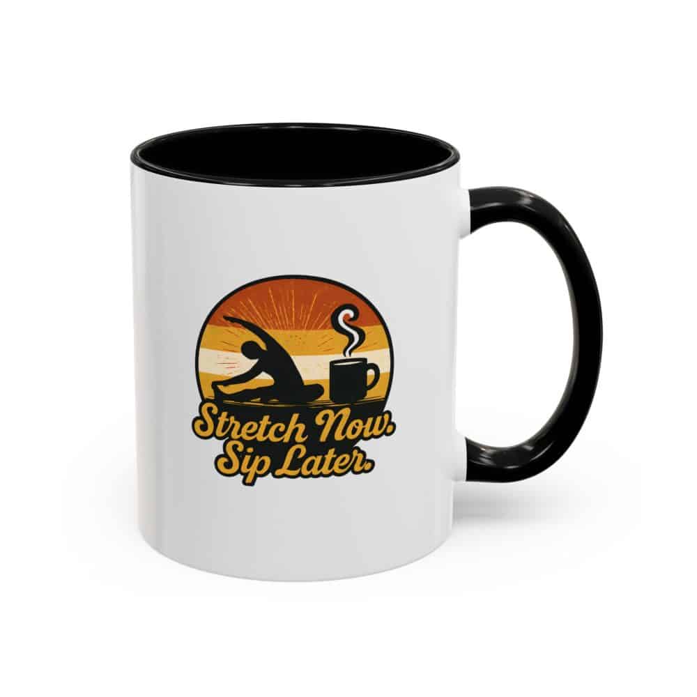 Start strong with this yoga coffee mug featuring the quote “Stretch Now. Sip Later.” – the perfect pick-me-up for mindful mornings and movement lovers.